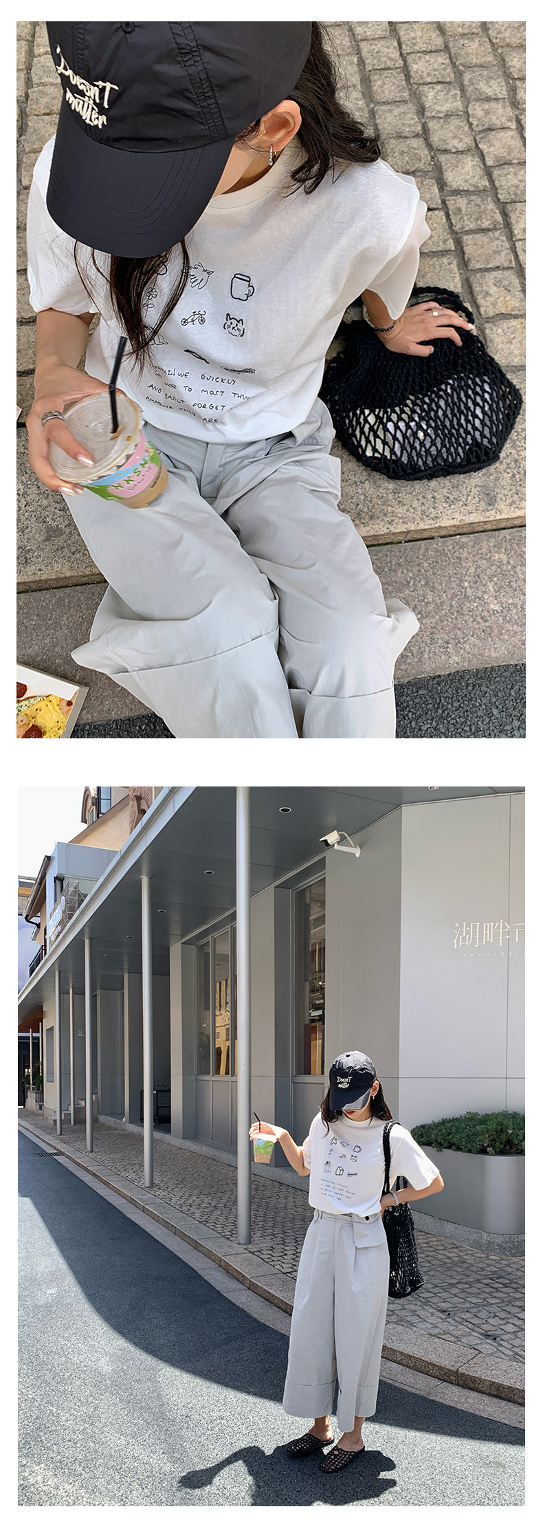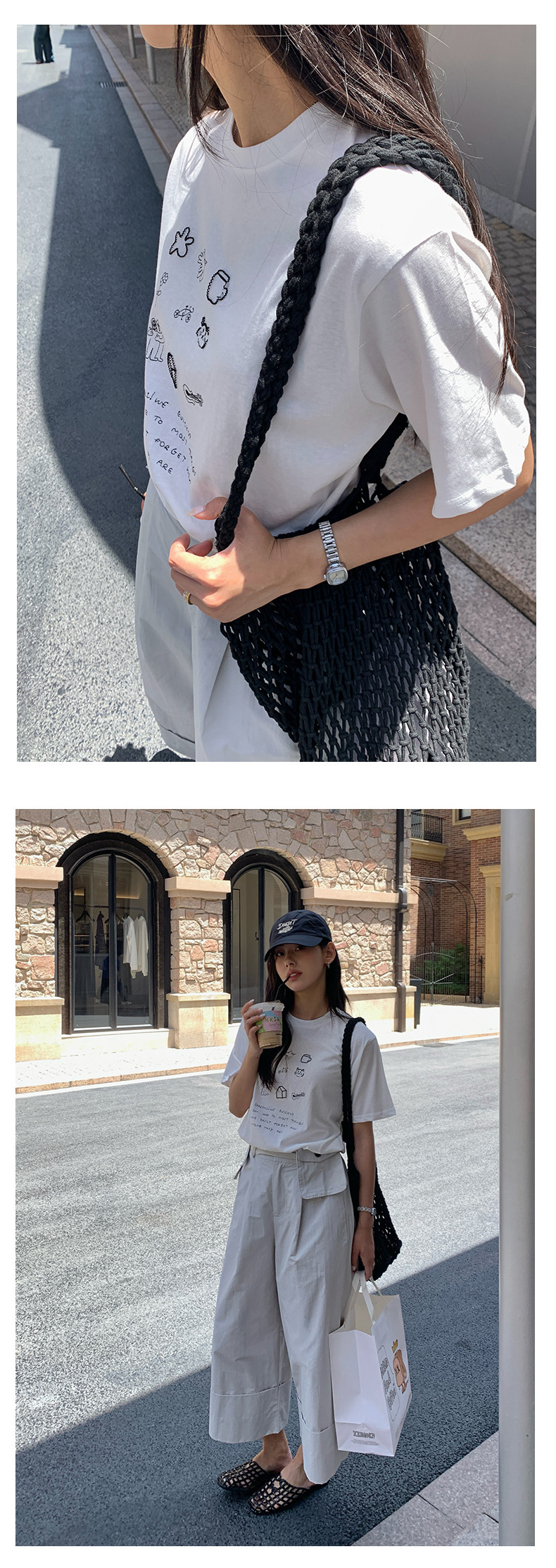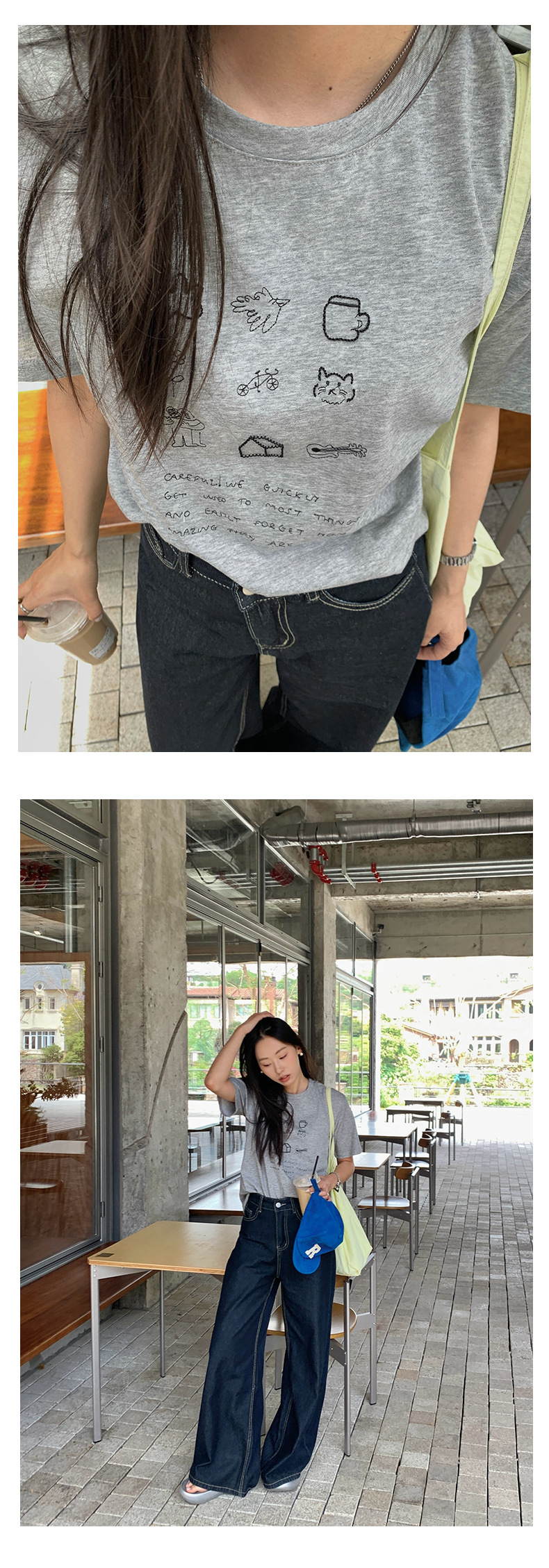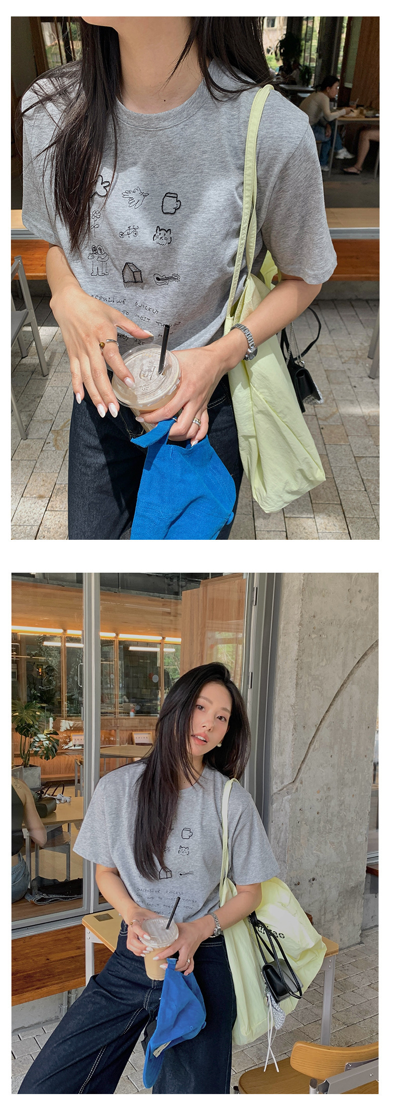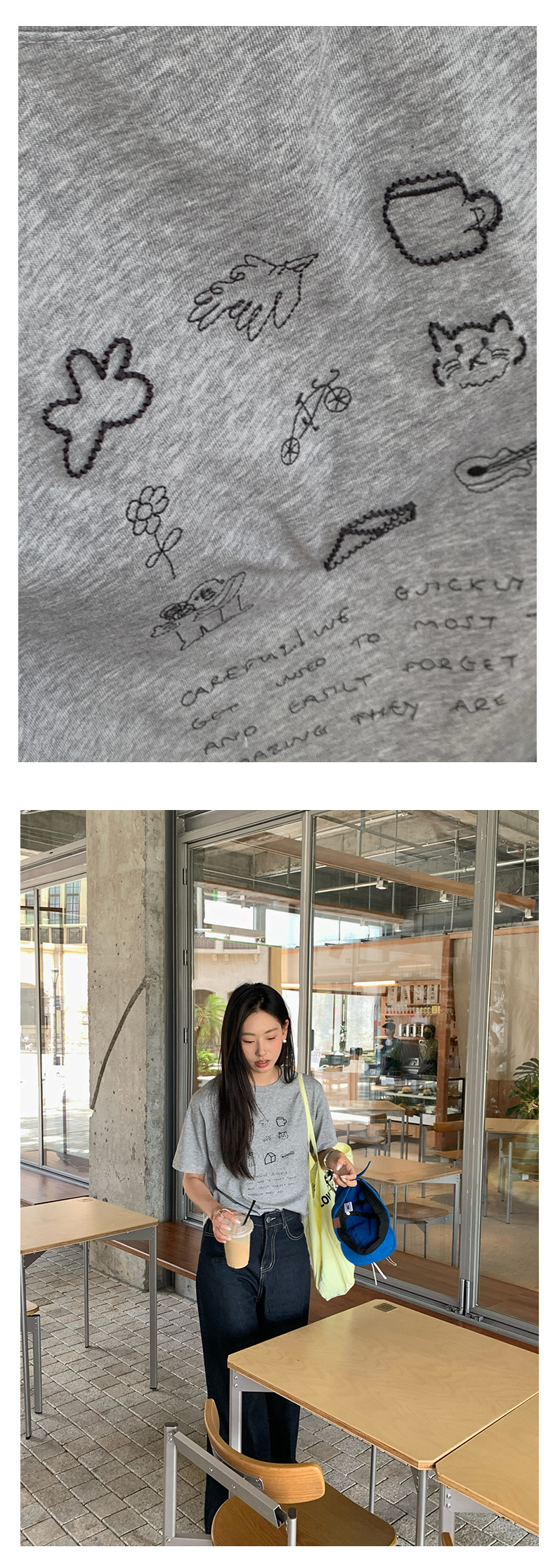 *o-ha-you*【FHZH1DA5020386】簡約手繪圖案棉質寬鬆圓領短袖T恤2025夏款文藝清新-3色