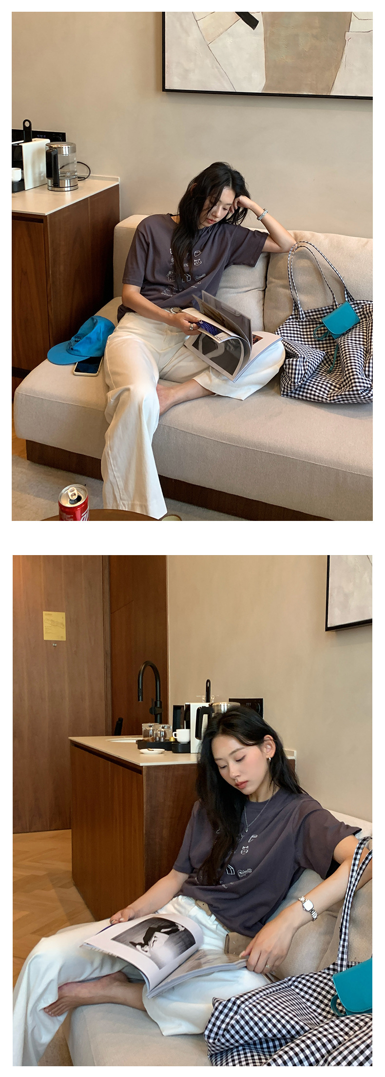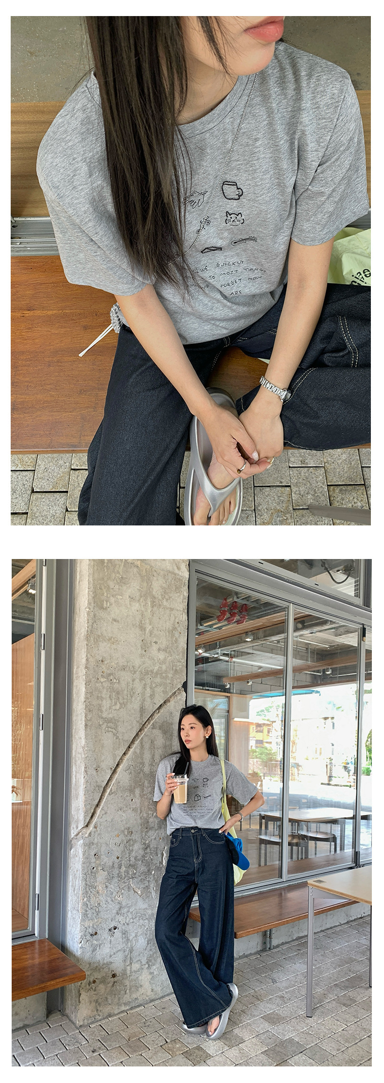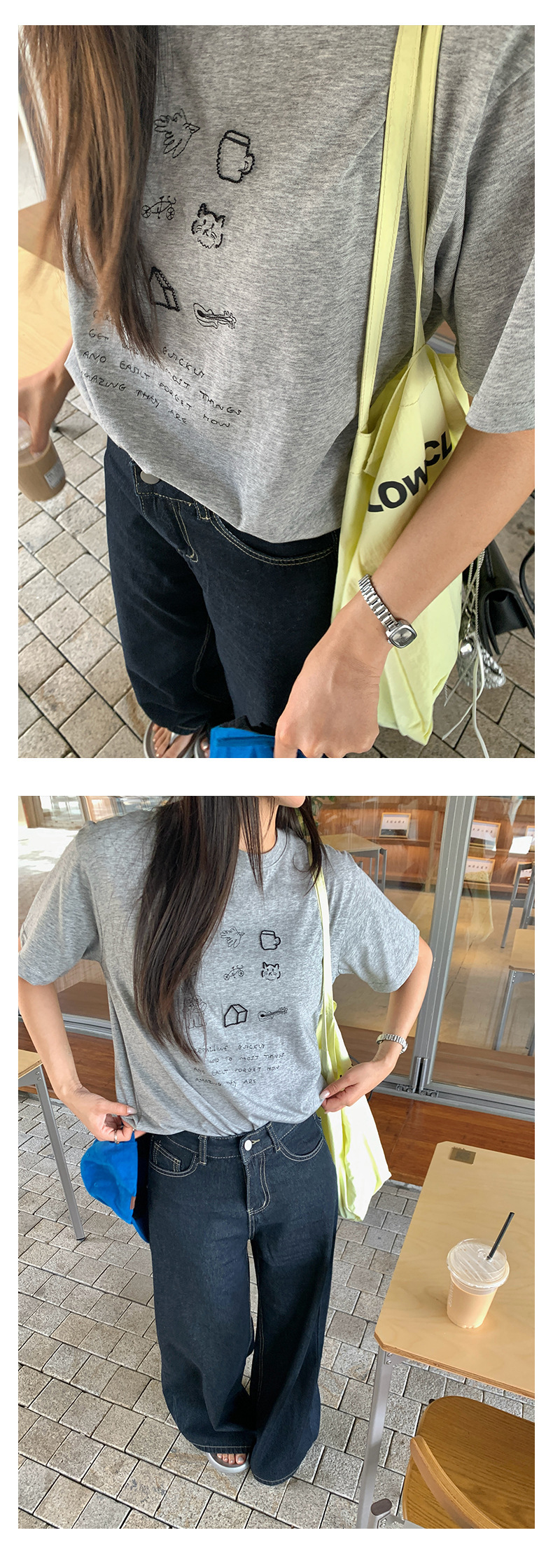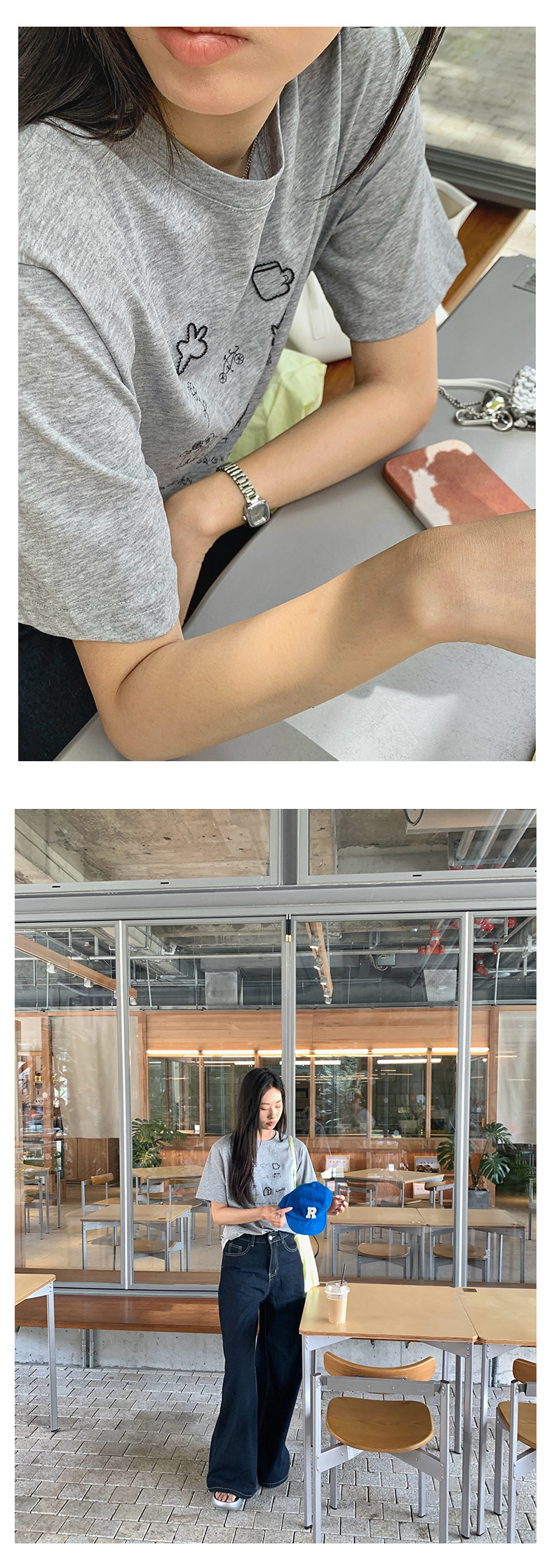 *o-ha-you*【FHZH1DA5020386】簡約手繪圖案棉質寬鬆圓領短袖T恤2025夏款文藝清新-3色