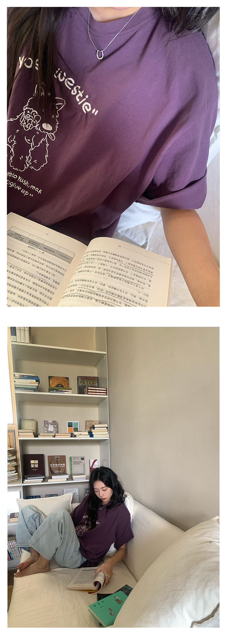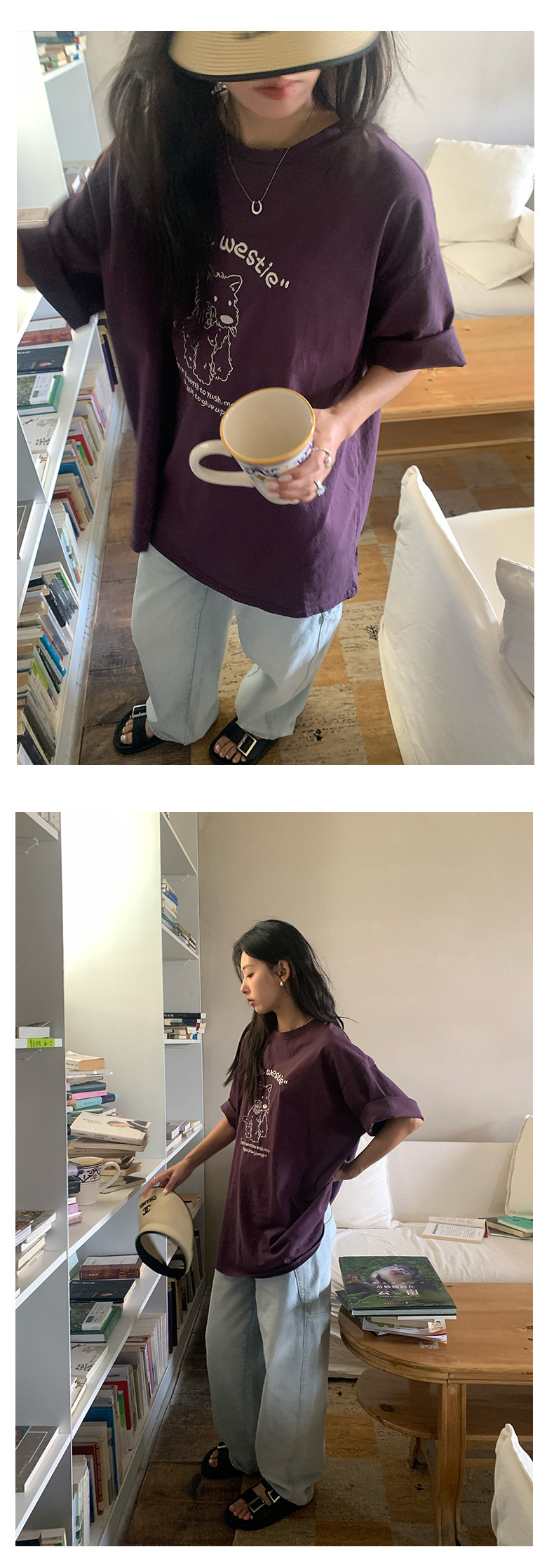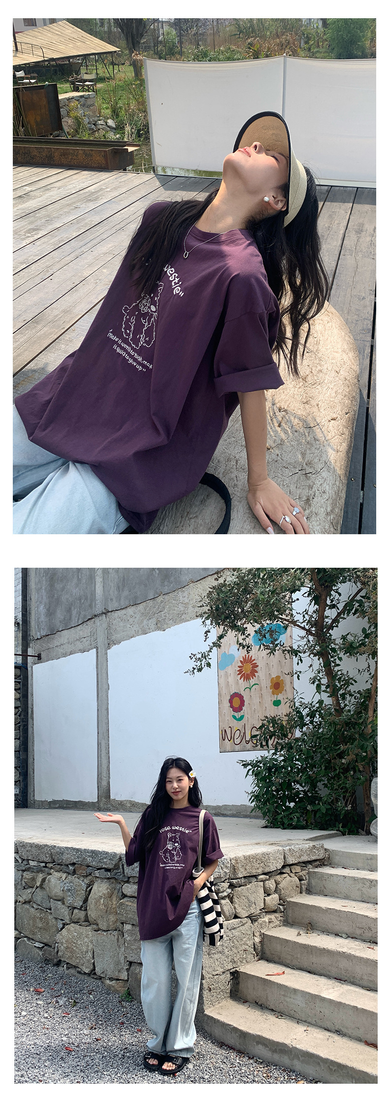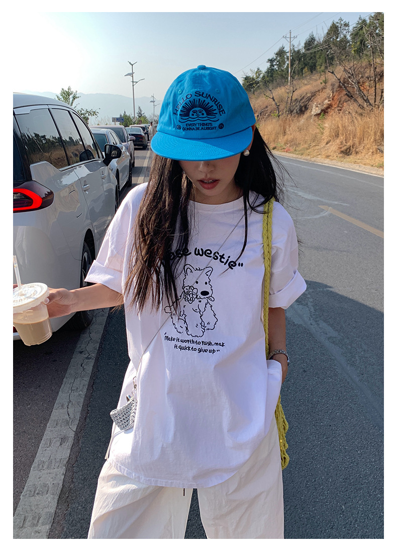 *o-ha-you*【FHZH1DA5020390】寬鬆圓領狗狗圖案搭配字繡花短袖2025夏款潮流休閒T恤-2色-如有需要請先諮詢
