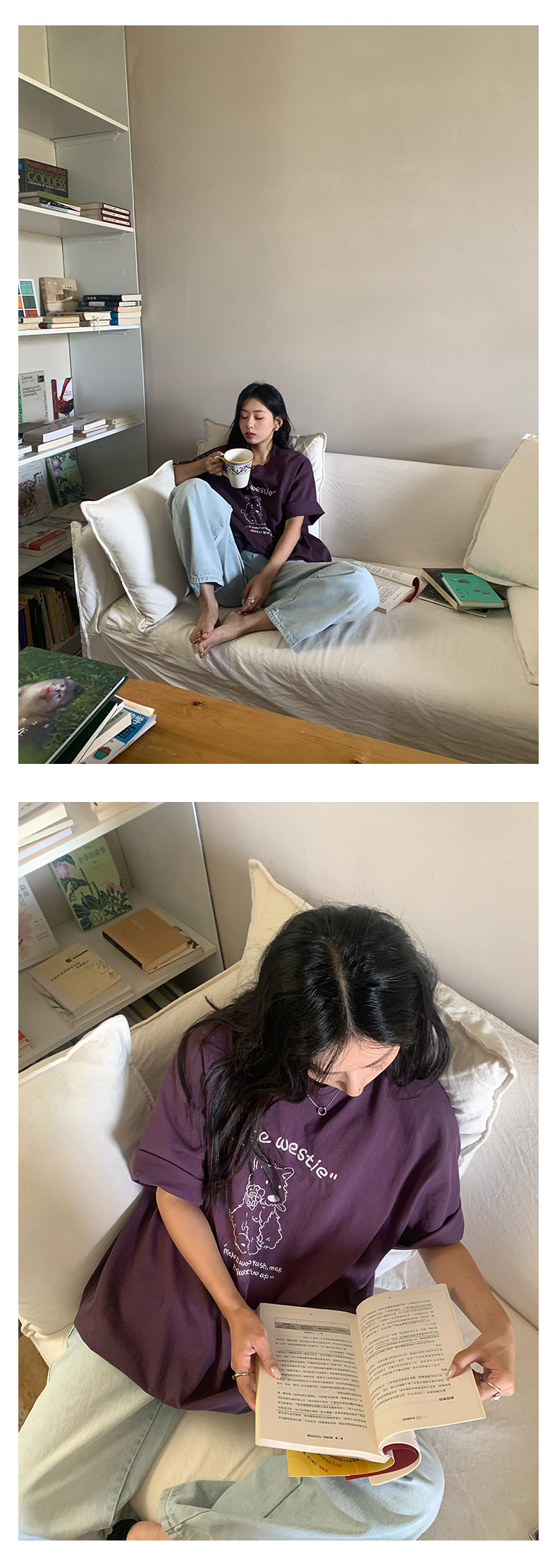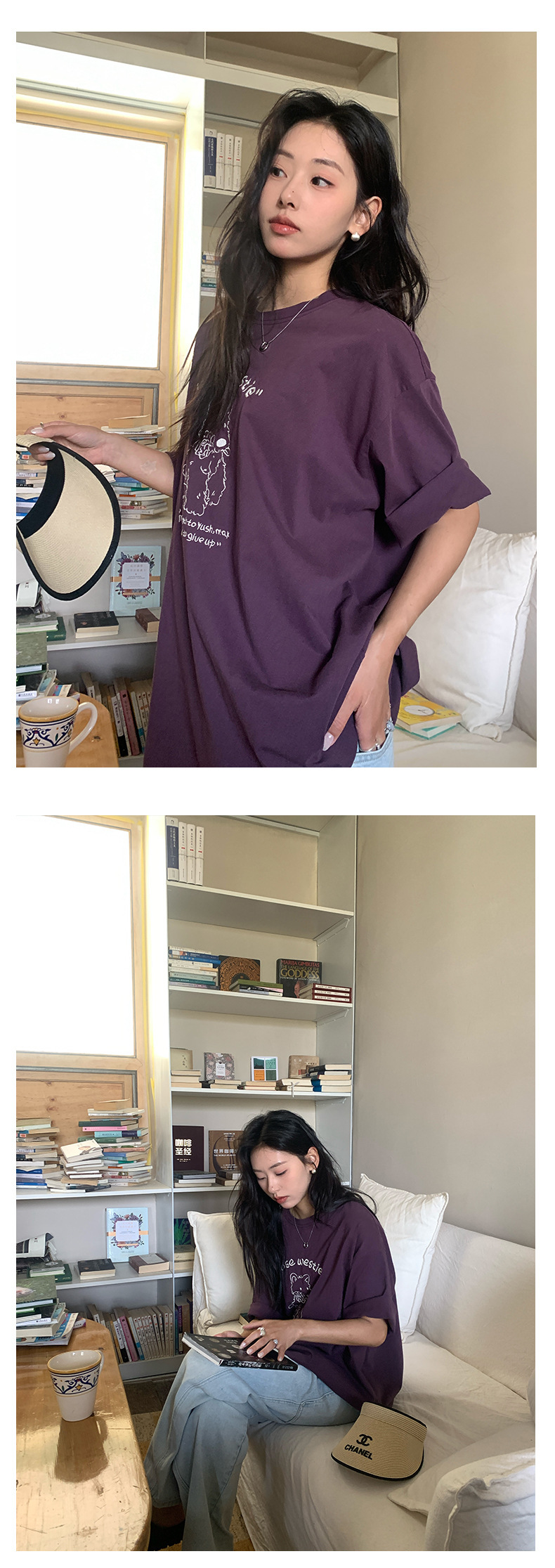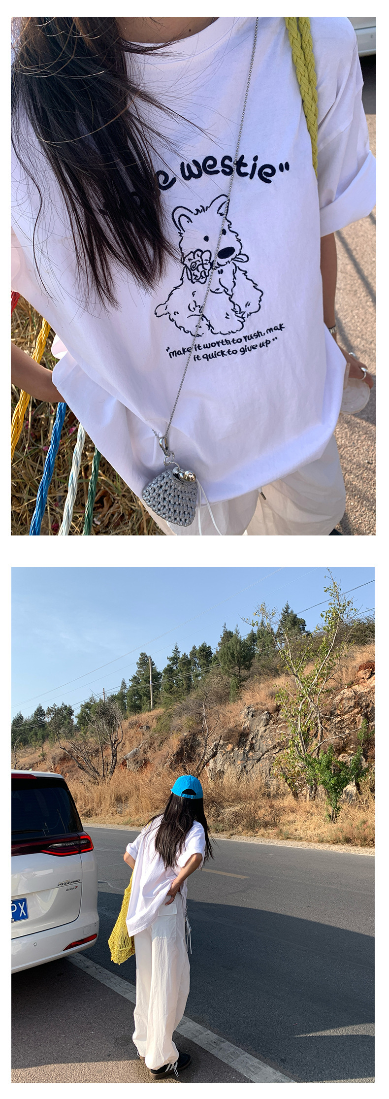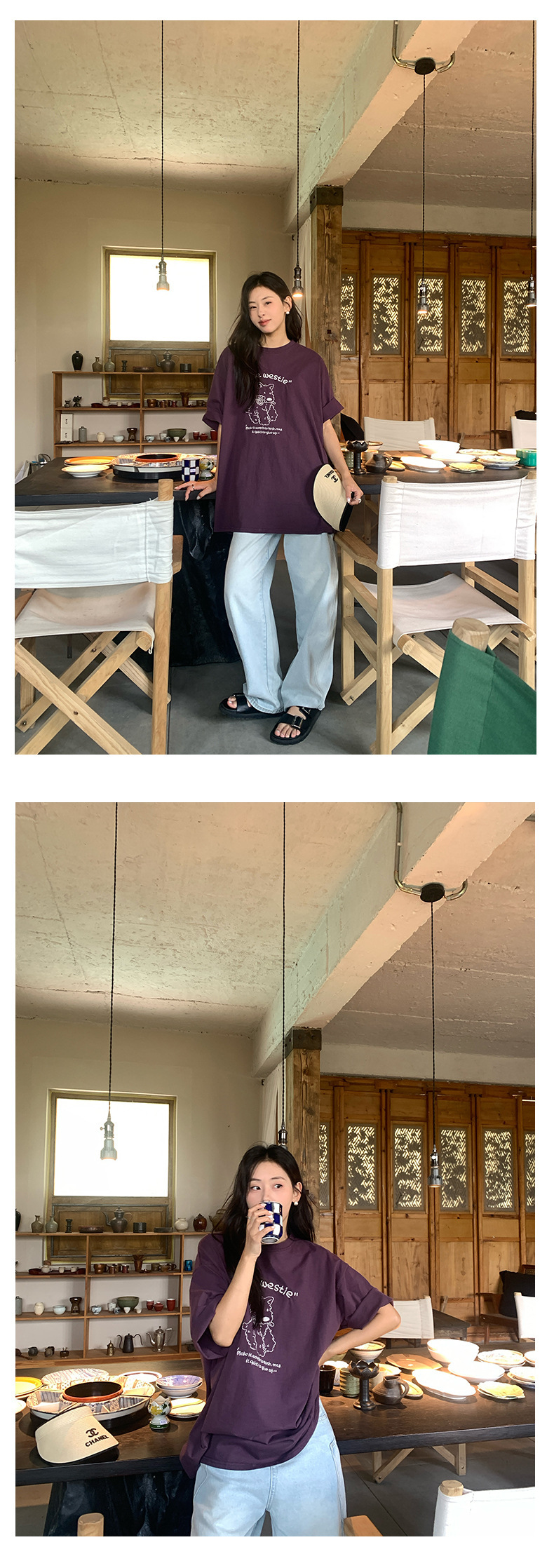 *o-ha-you*【FHZH1DA5020390】寬鬆圓領狗狗圖案搭配字繡花短袖2025夏款潮流休閒T恤-2色-如有需要請先諮詢