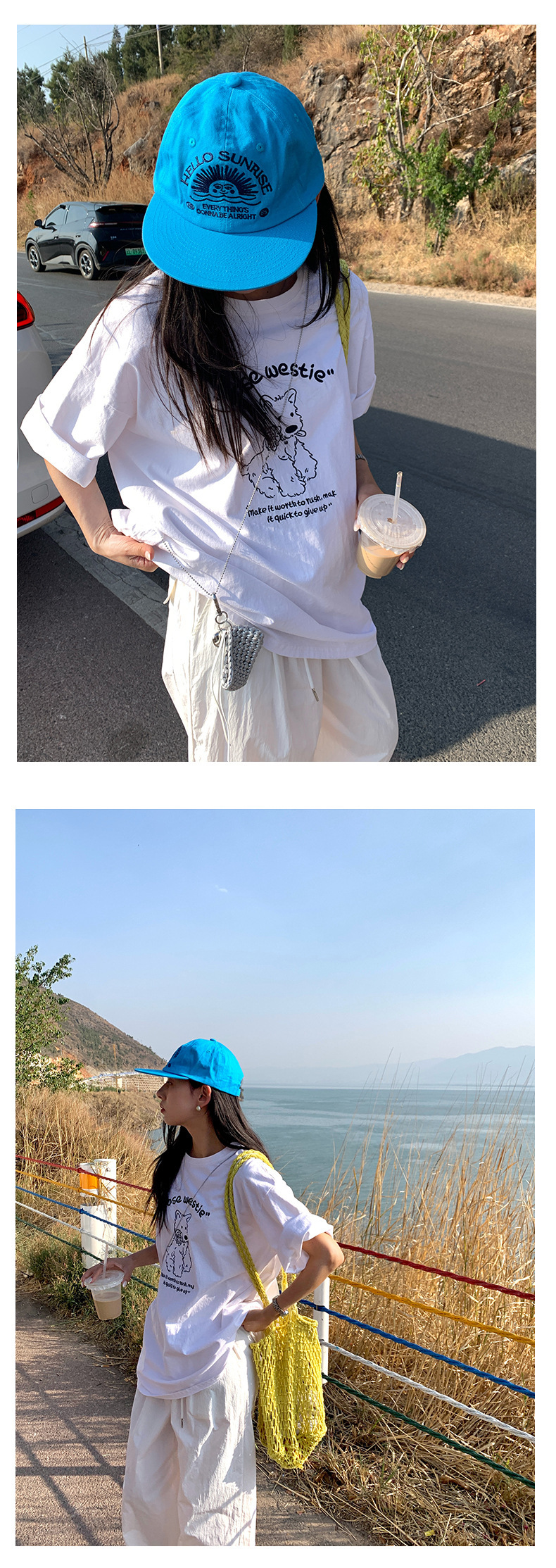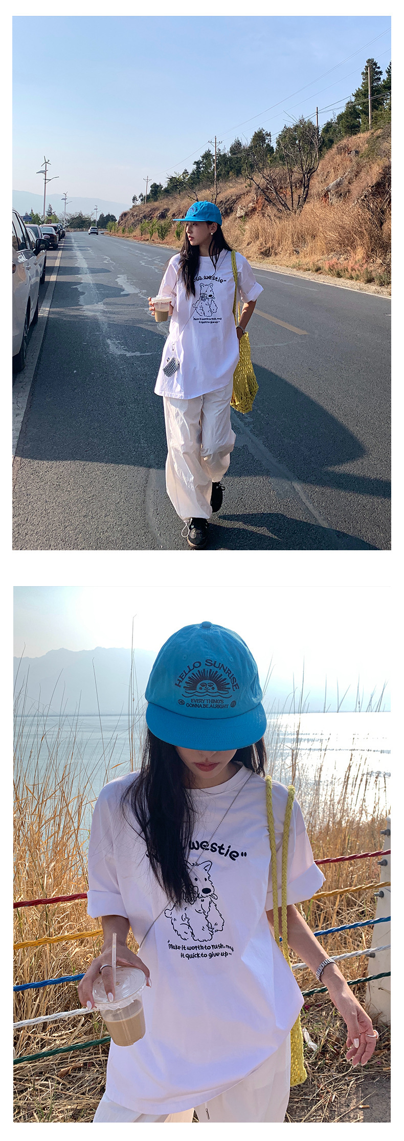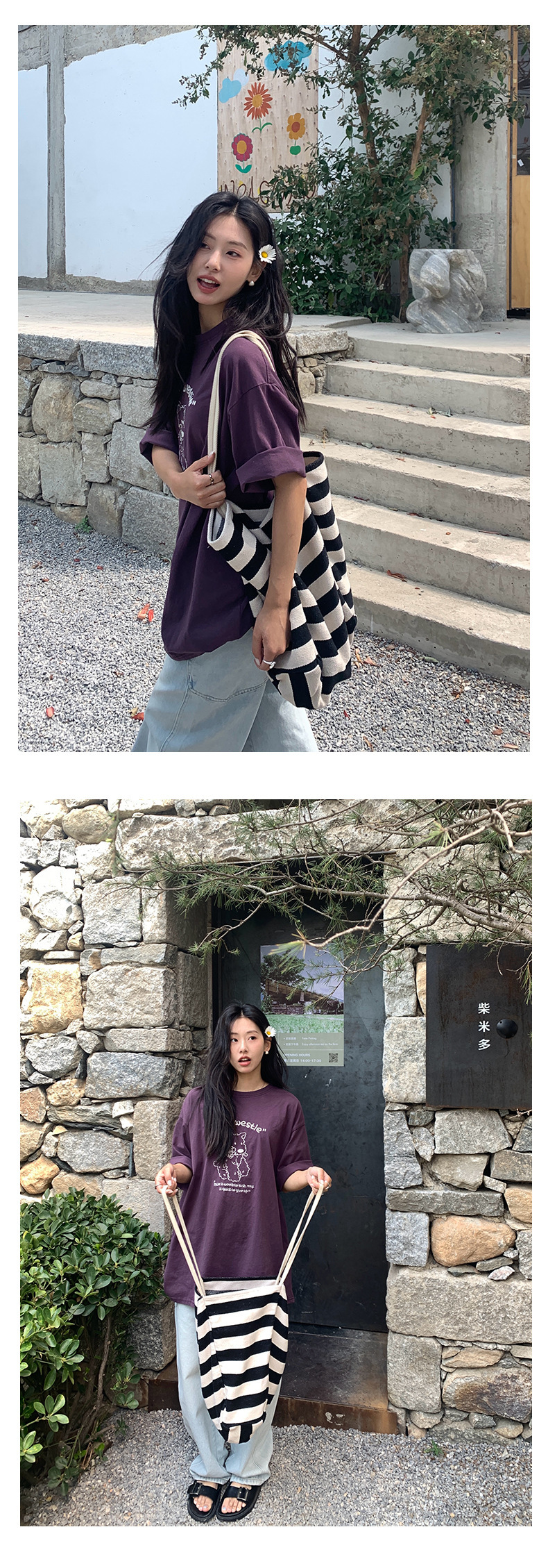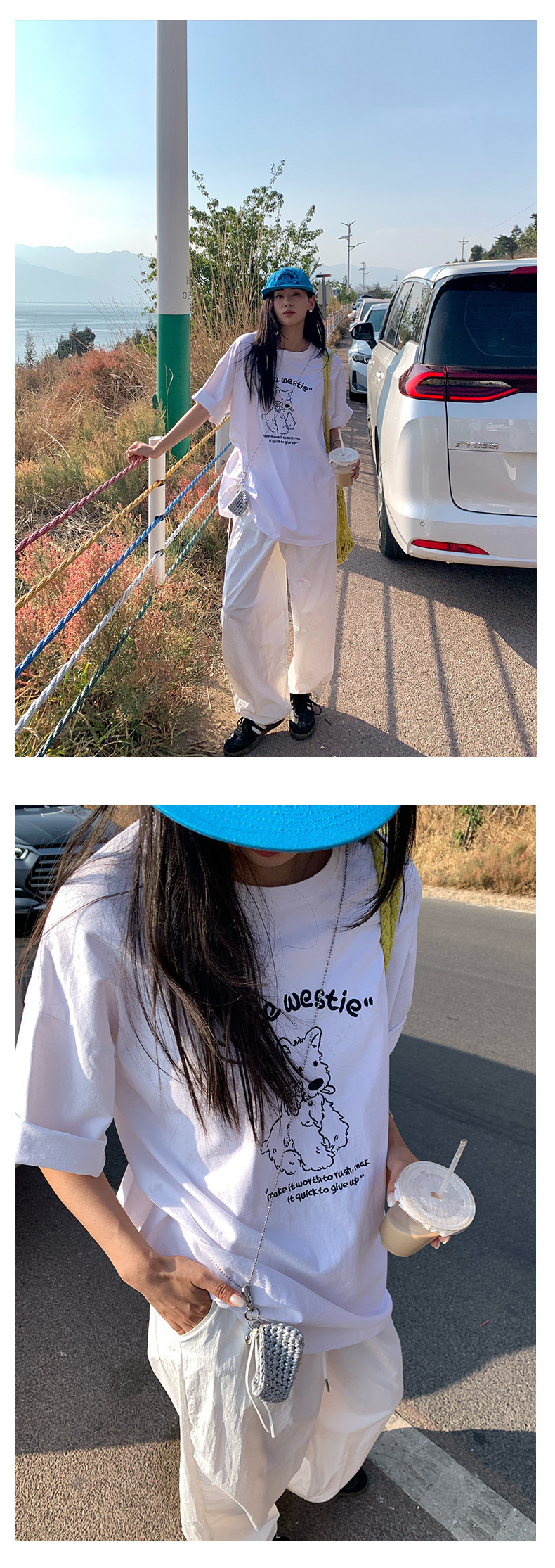 *o-ha-you*【FHZH1DA5020390】寬鬆圓領狗狗圖案搭配字繡花短袖2025夏款潮流休閒T恤-2色-如有需要請先諮詢