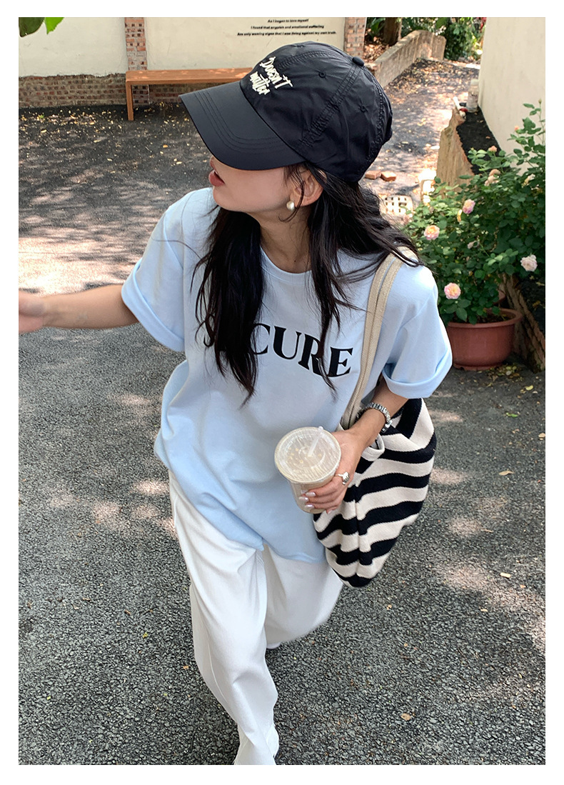 *o-ha-you*【FHZH1DA5020399】圓領字母印花寬鬆休閒短袖T恤2025夏款簡約時尚上衣-3色-如有需要請先諮詢