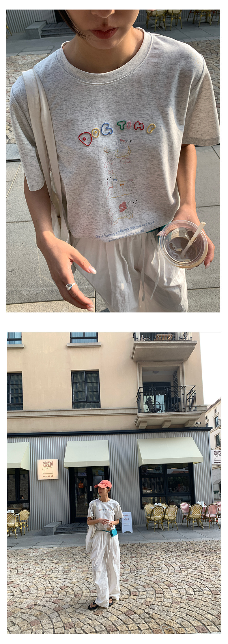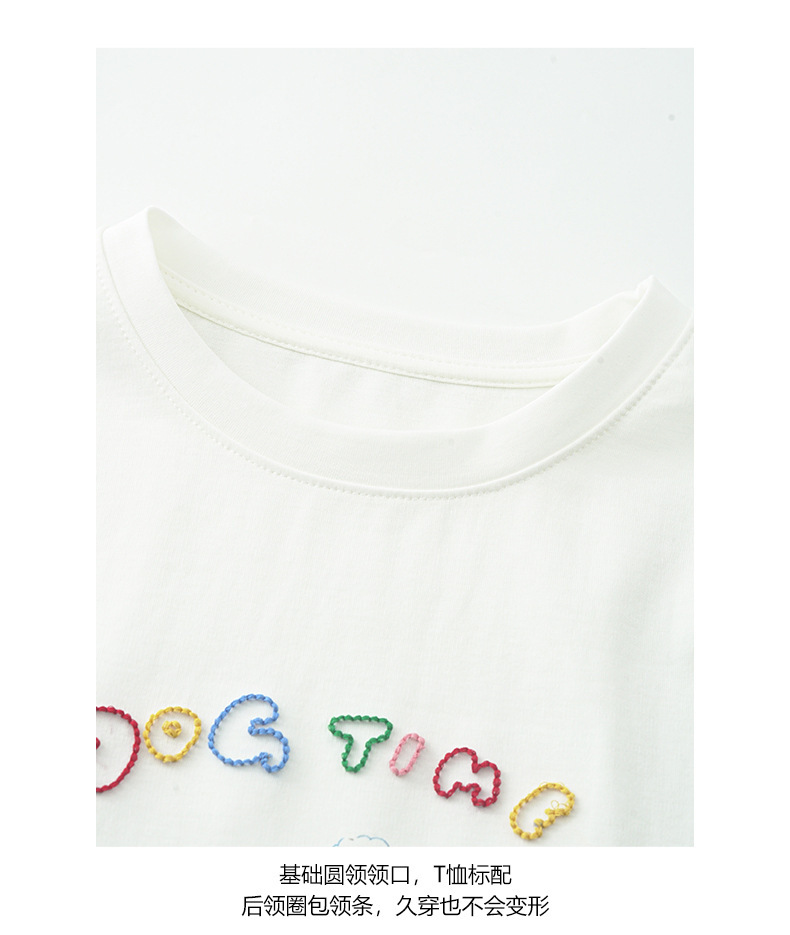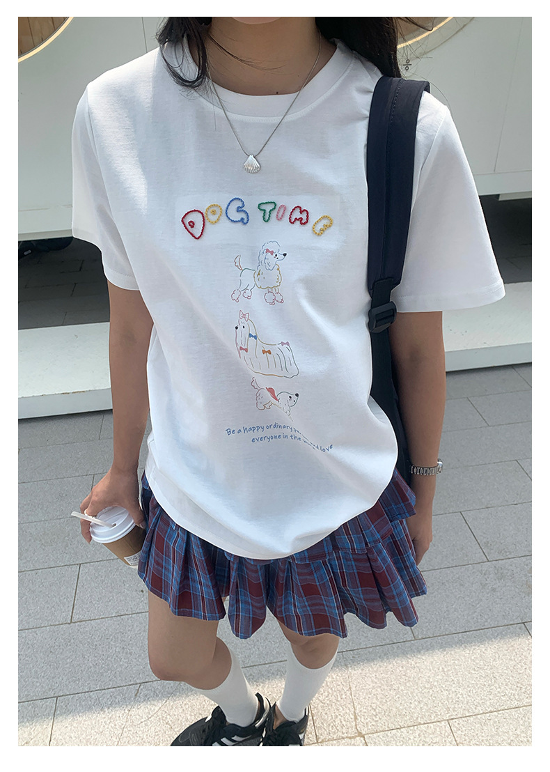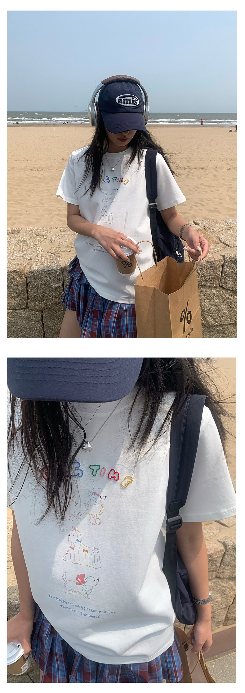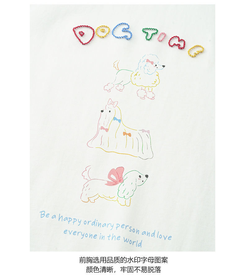 *o-ha-you*【FHZH1DA5020436】韓版夏季新學院風刺繡塗鴉印花小狗短袖T恤減齡上衣-2色-如有需要請先諮詢