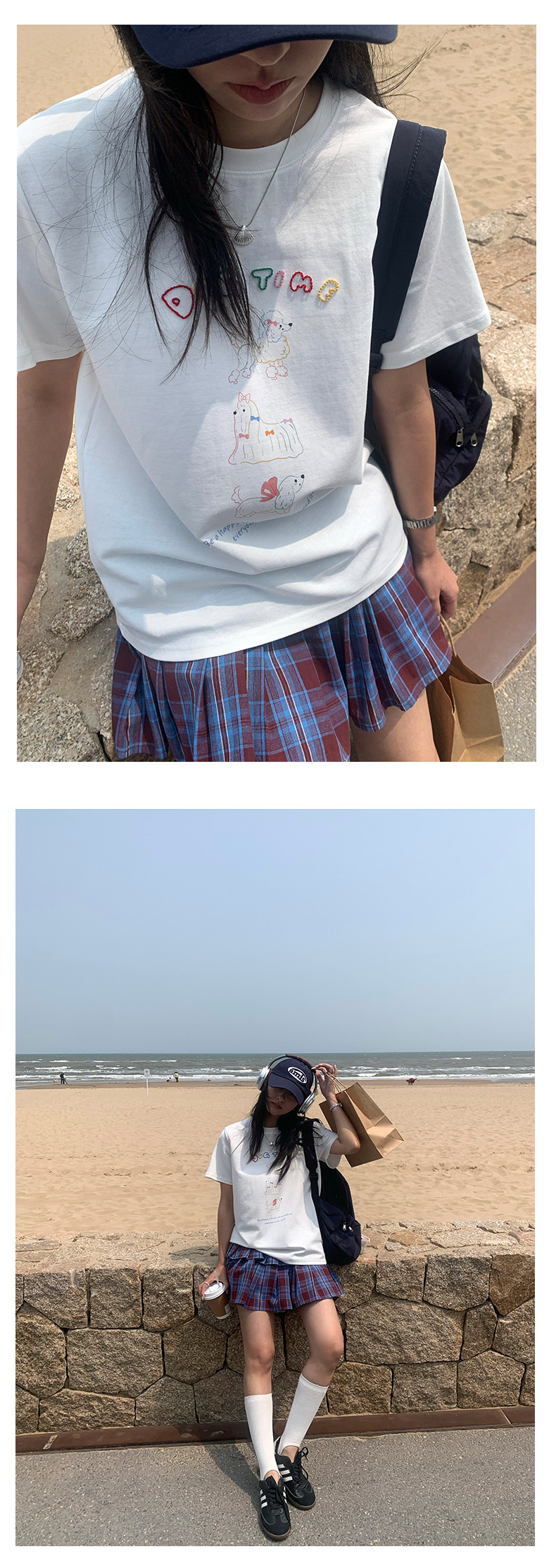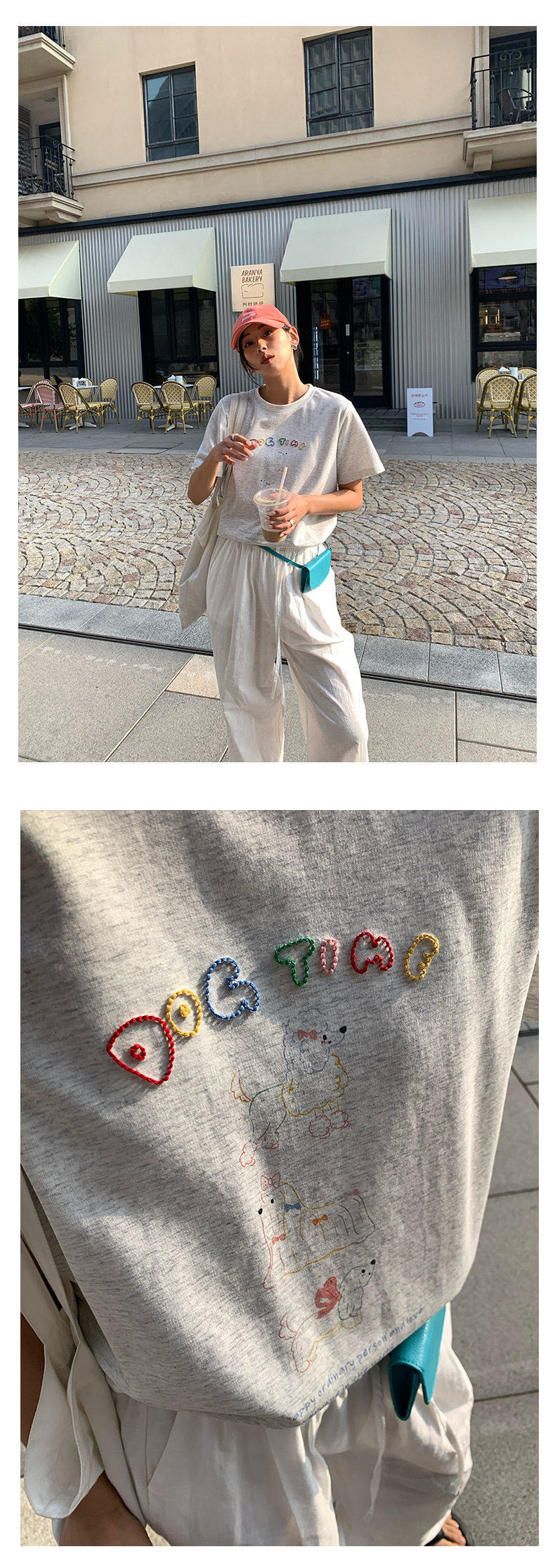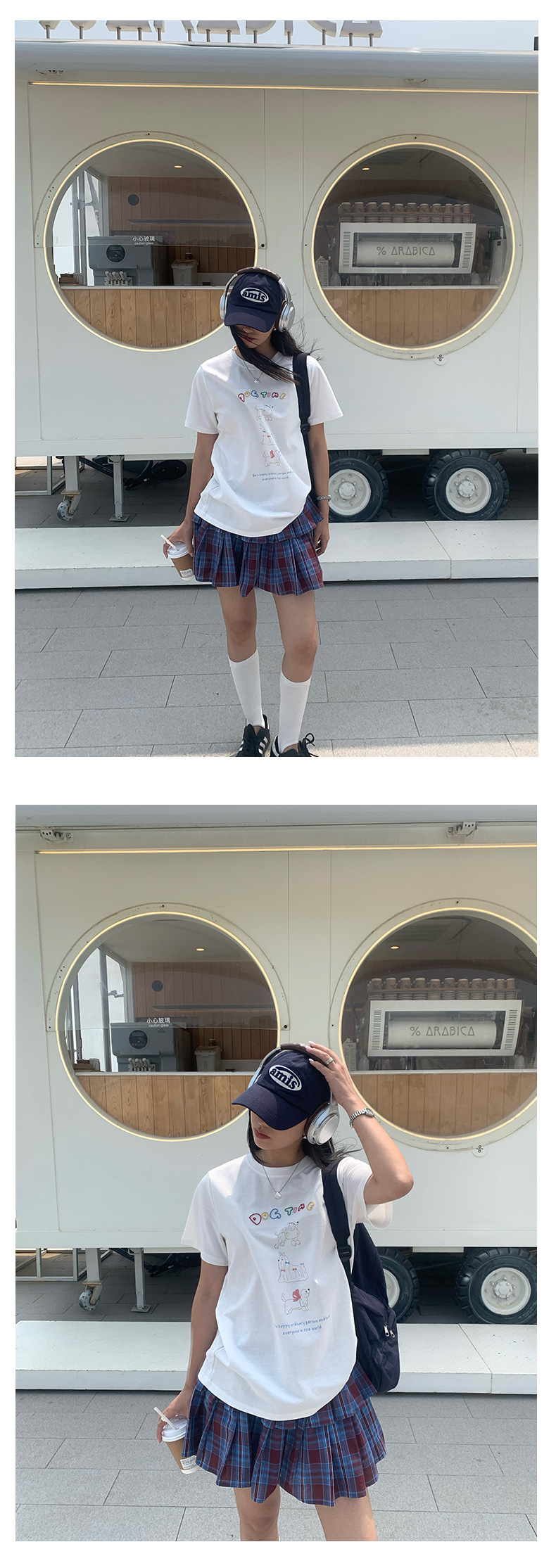 *o-ha-you*【FHZH1DA5020436】韓版夏季新學院風刺繡塗鴉印花小狗短袖T恤減齡上衣-2色-如有需要請先諮詢
