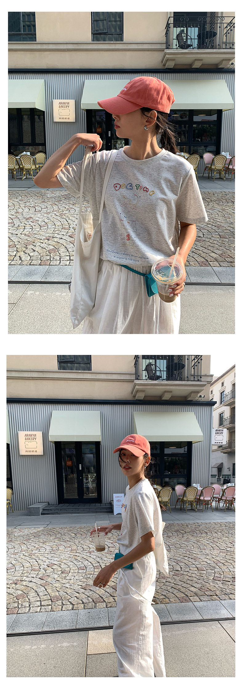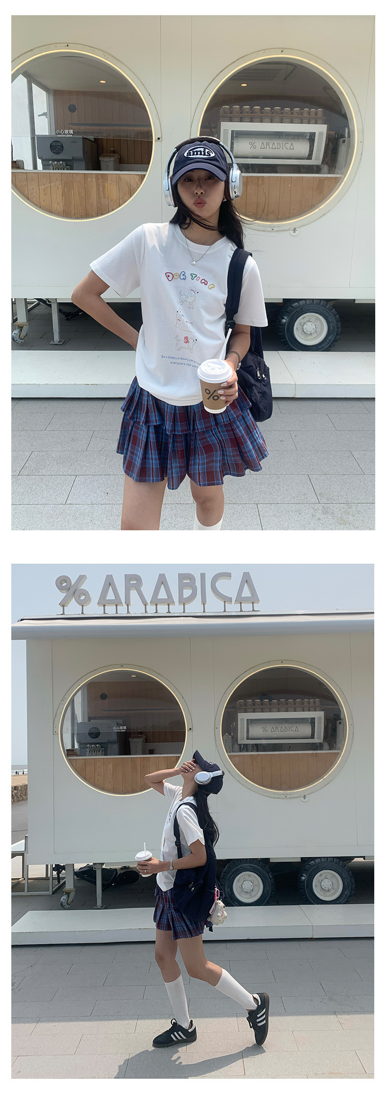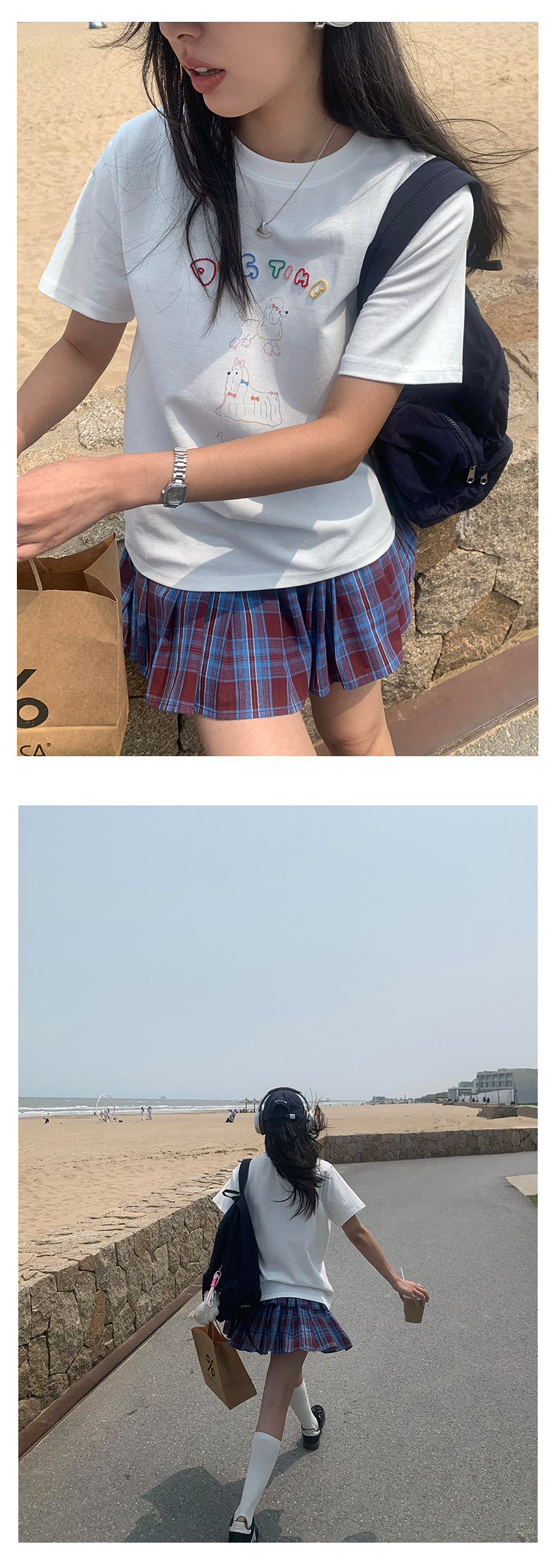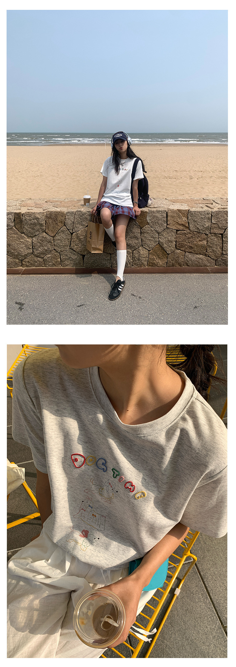 *o-ha-you*【FHZH1DA5020436】韓版夏季新學院風刺繡塗鴉印花小狗短袖T恤減齡上衣-2色-如有需要請先諮詢