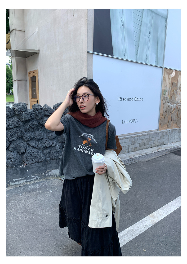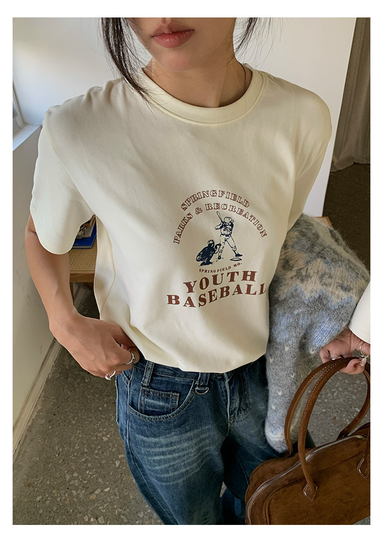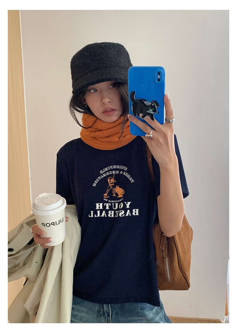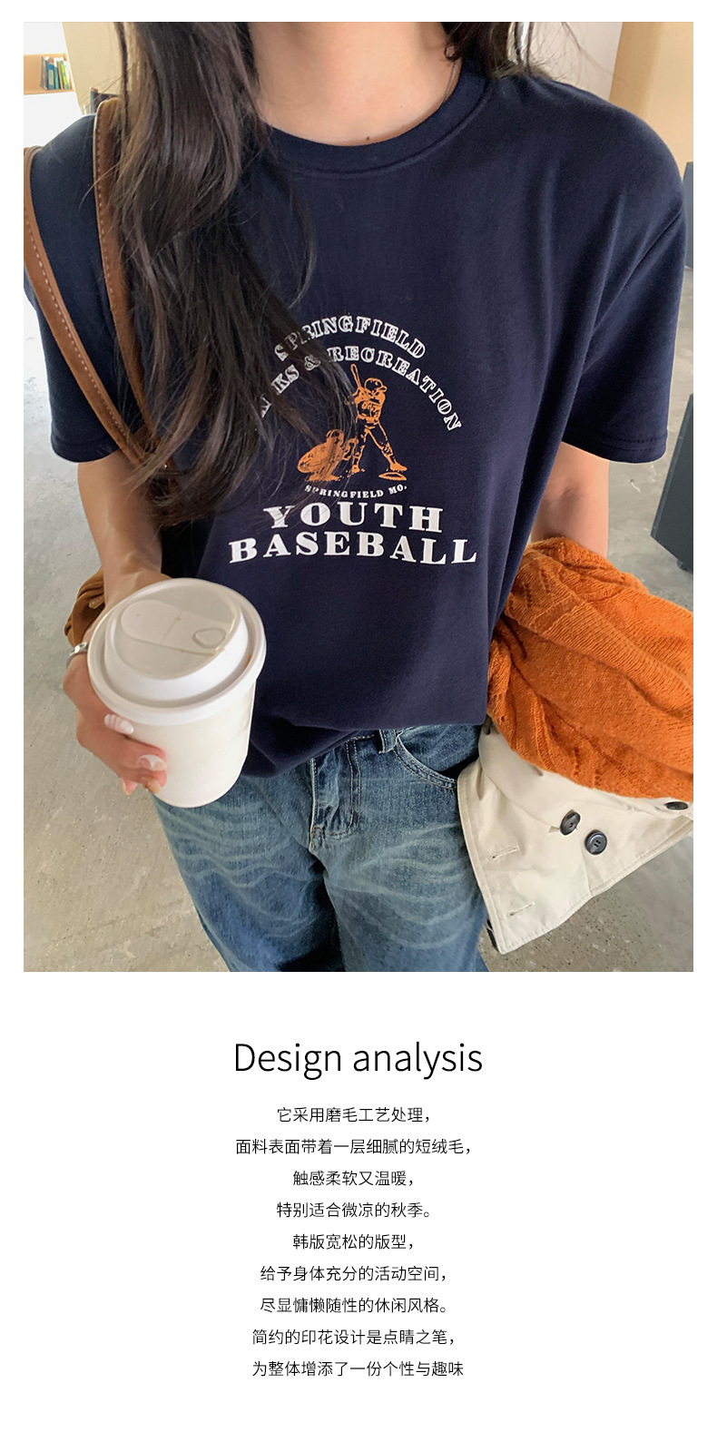 *o-ha-you*【FHZH1DA5030078】磨毛印花短袖T恤女2025秋季新款韓版寬鬆簡約休閒上衣-3色