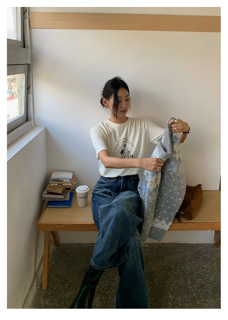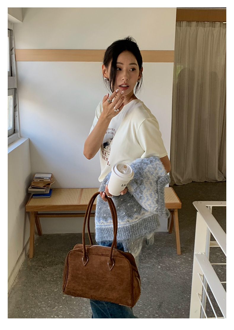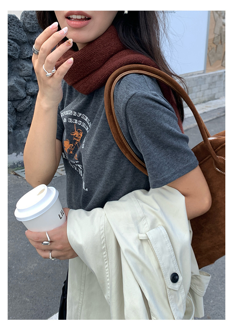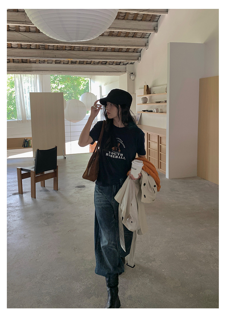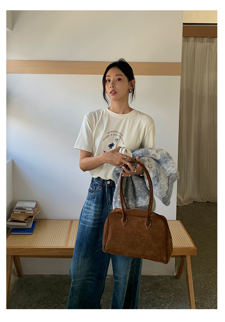 *o-ha-you*【FHZH1DA5030078】磨毛印花短袖T恤女2025秋季新款韓版寬鬆簡約休閒上衣-3色