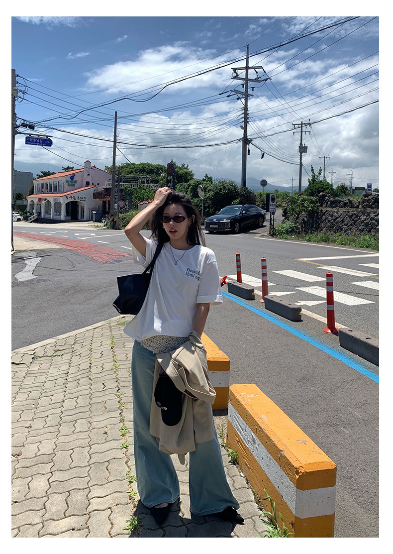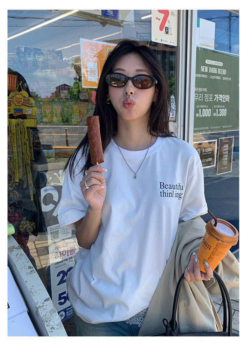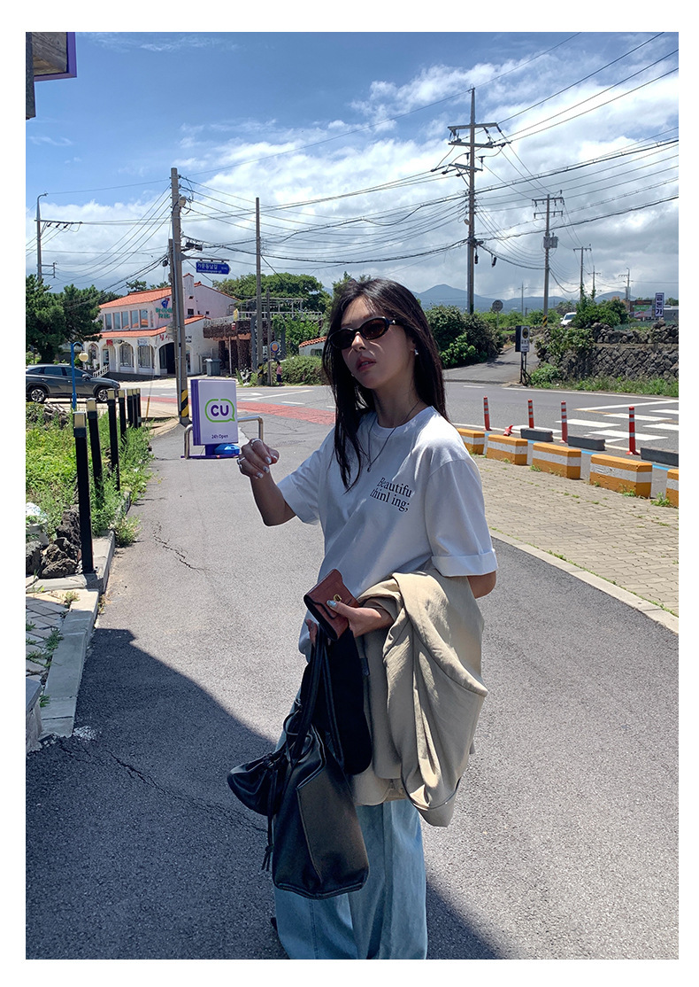 *o-ha-you*【FHZH1DA5030802】韓版磨毛印花短袖T恤秋季顯瘦氣質百搭寬鬆上衣