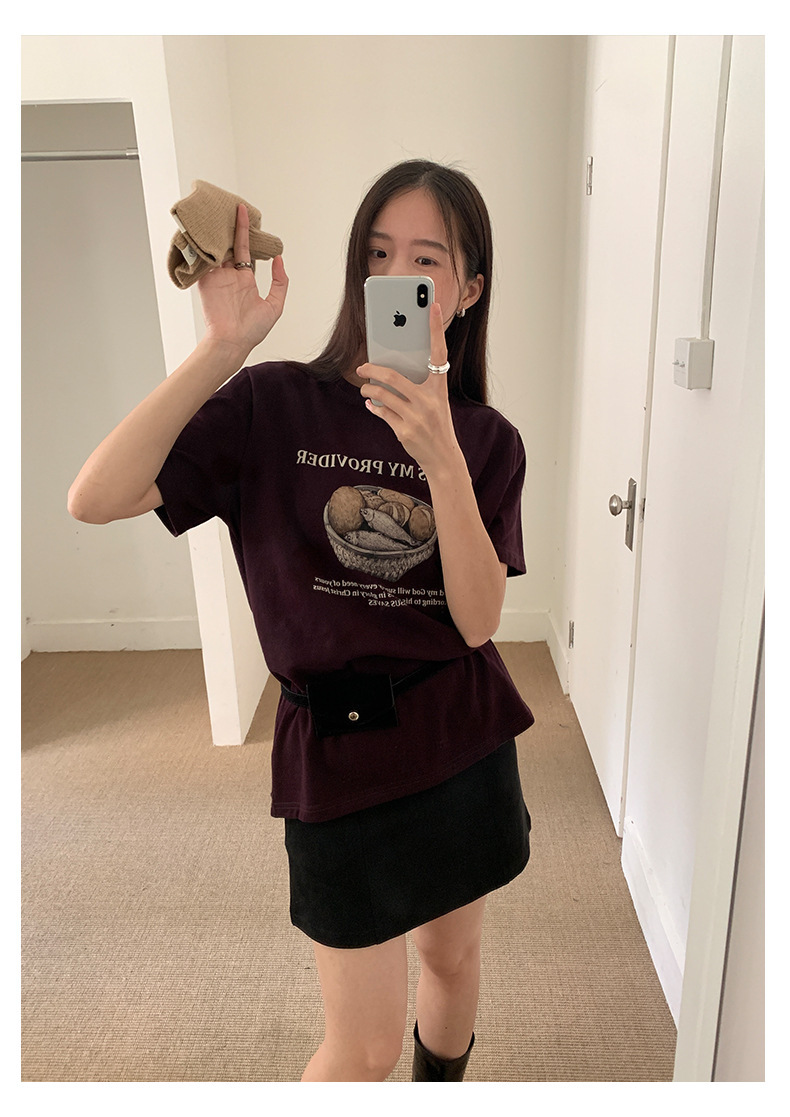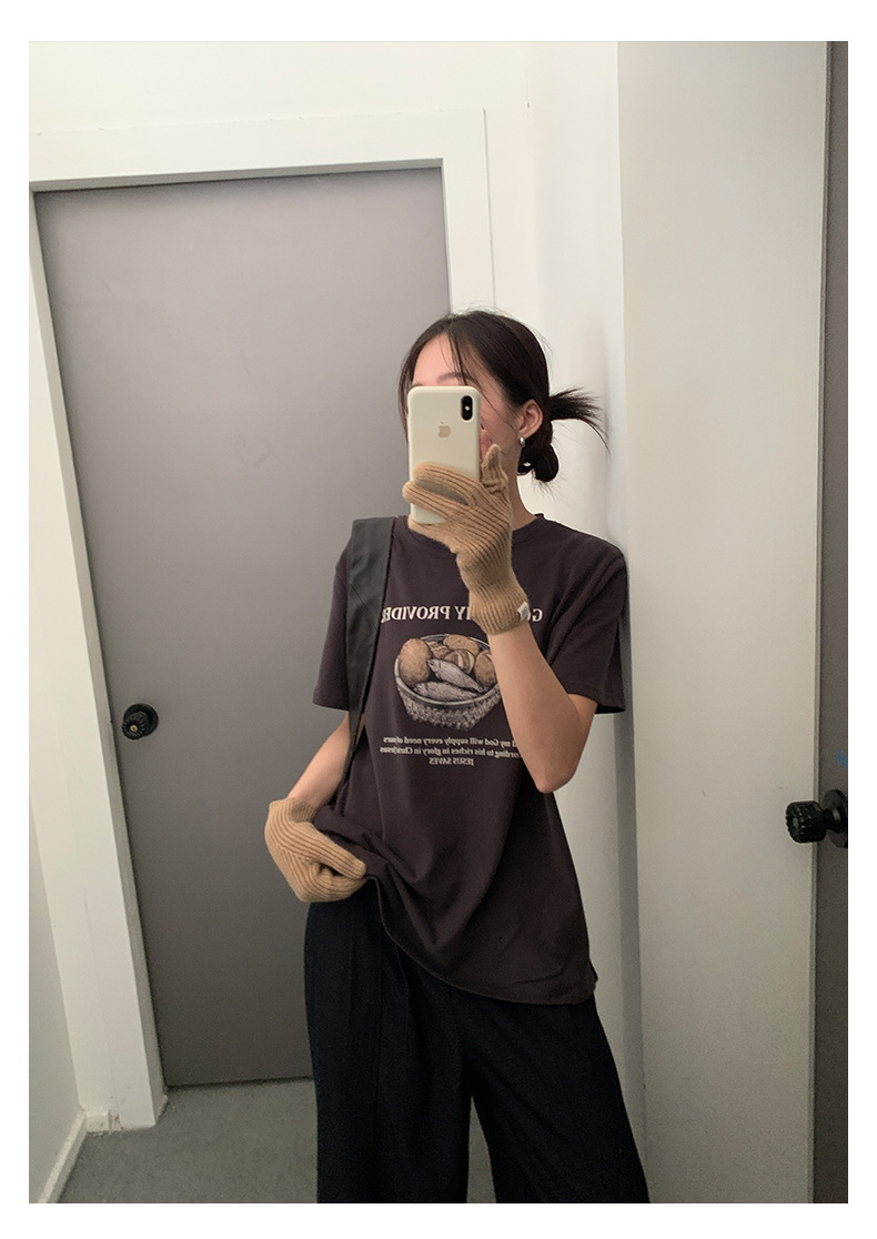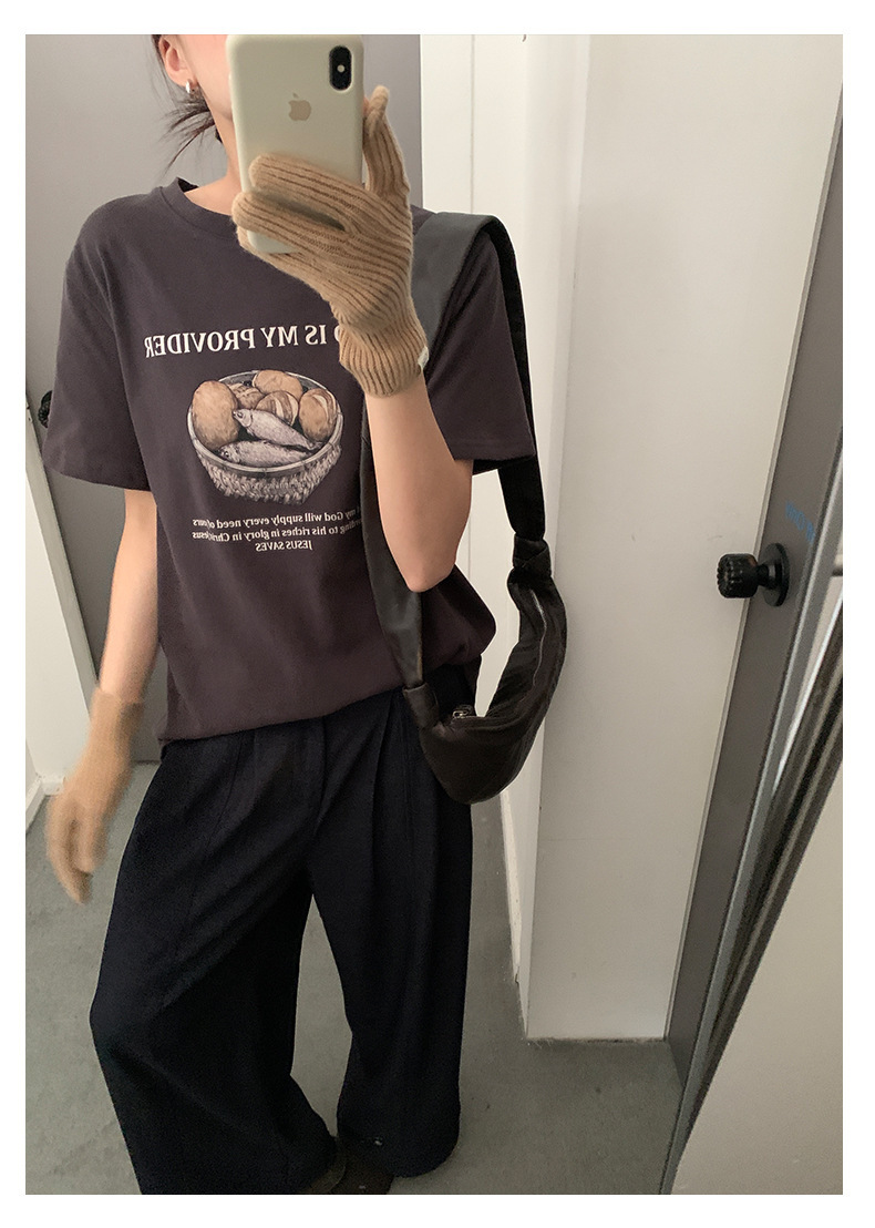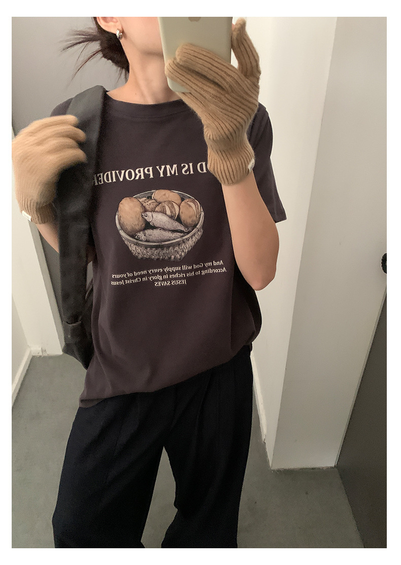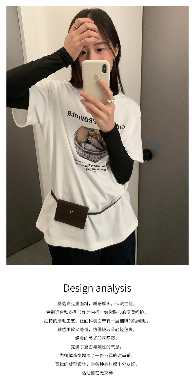 *o-ha-you*【FHZH1DA5041001】磨毛高克重美式印花圓領T恤2025秋冬寬鬆休閒內搭上衣-3色