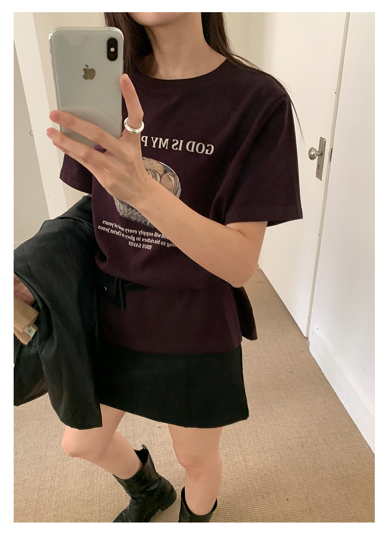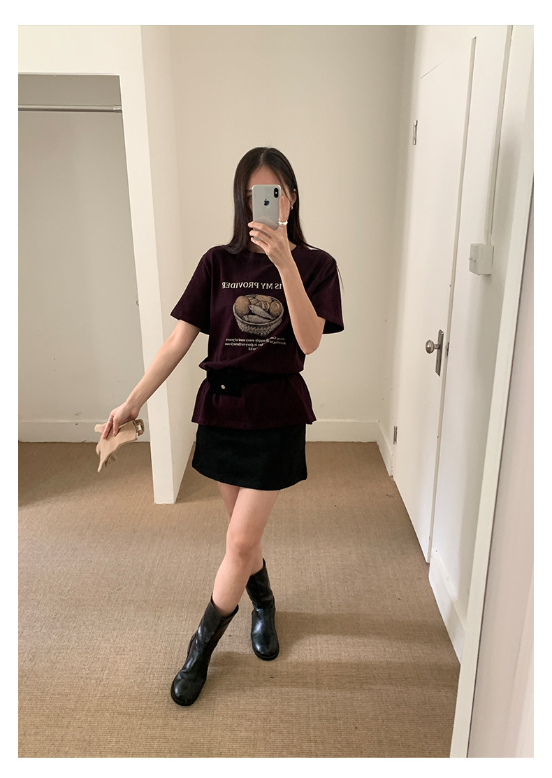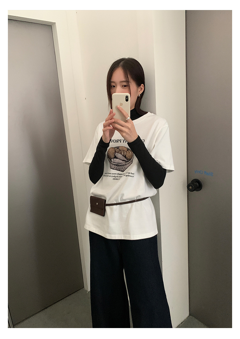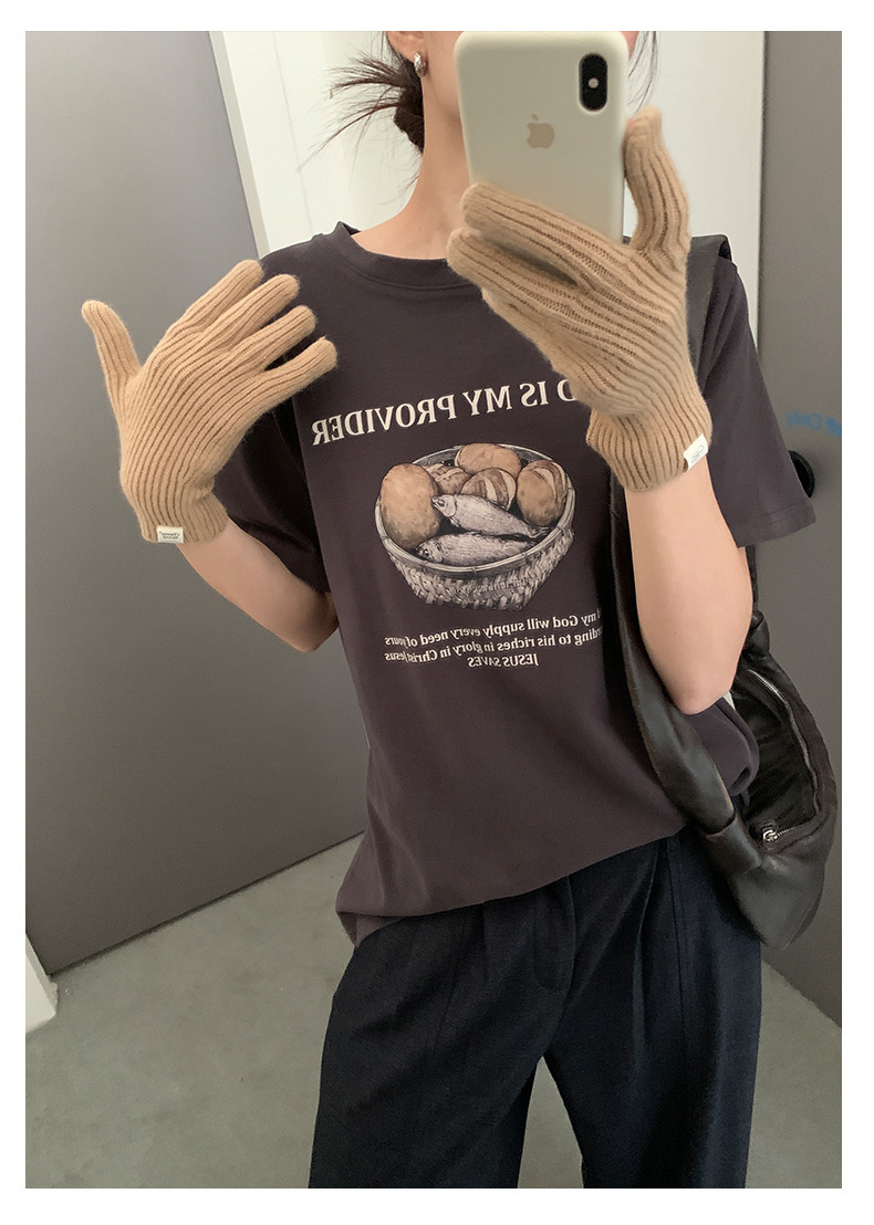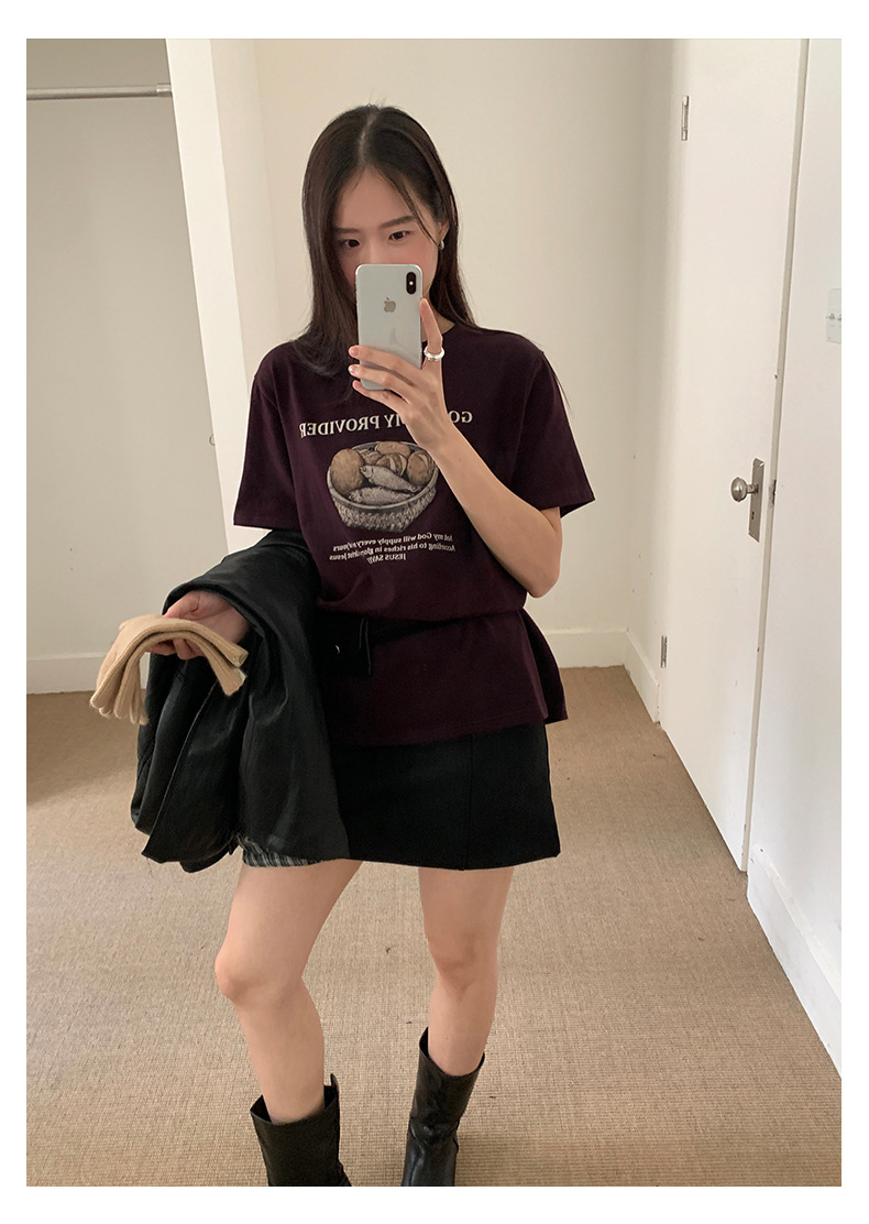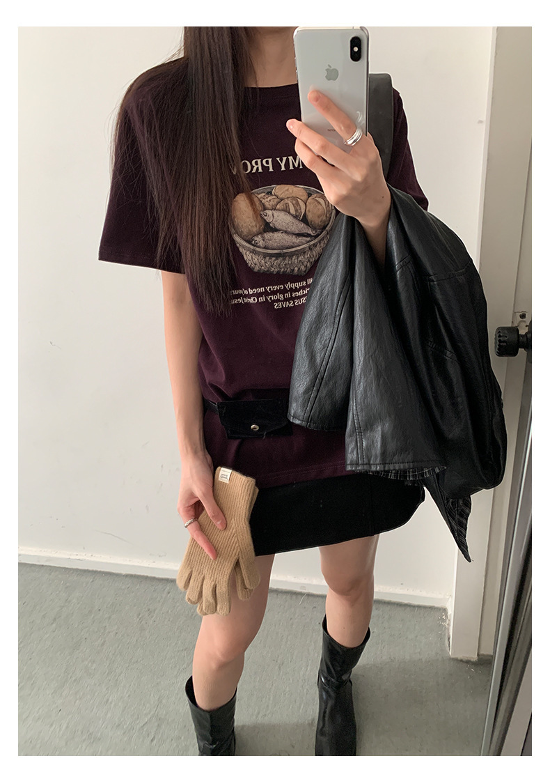 *o-ha-you*【FHZH1DA5041001】磨毛高克重美式印花圓領T恤2025秋冬寬鬆休閒內搭上衣-3色
