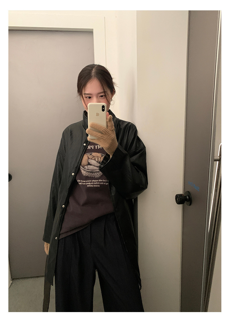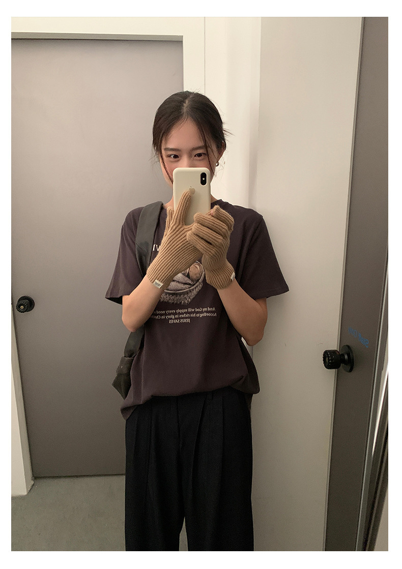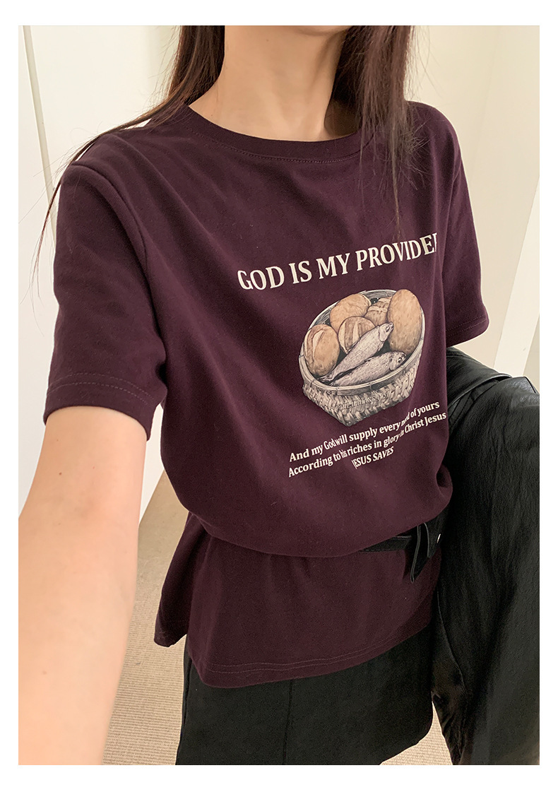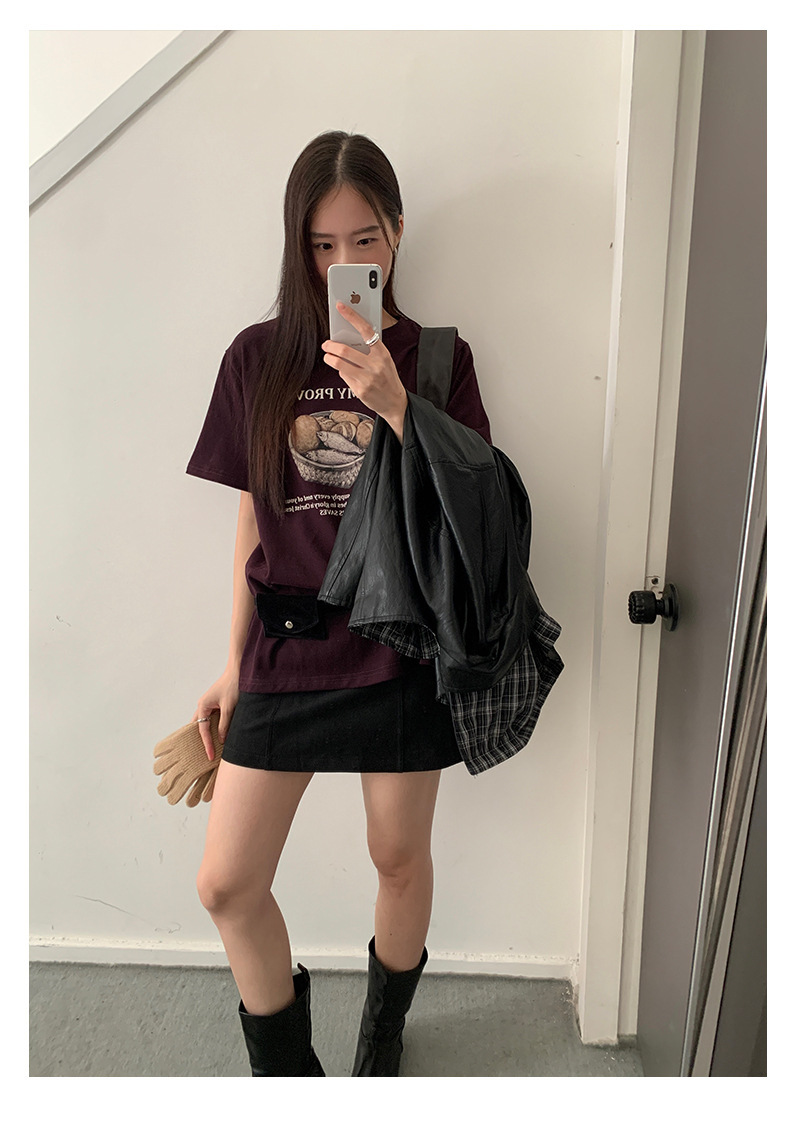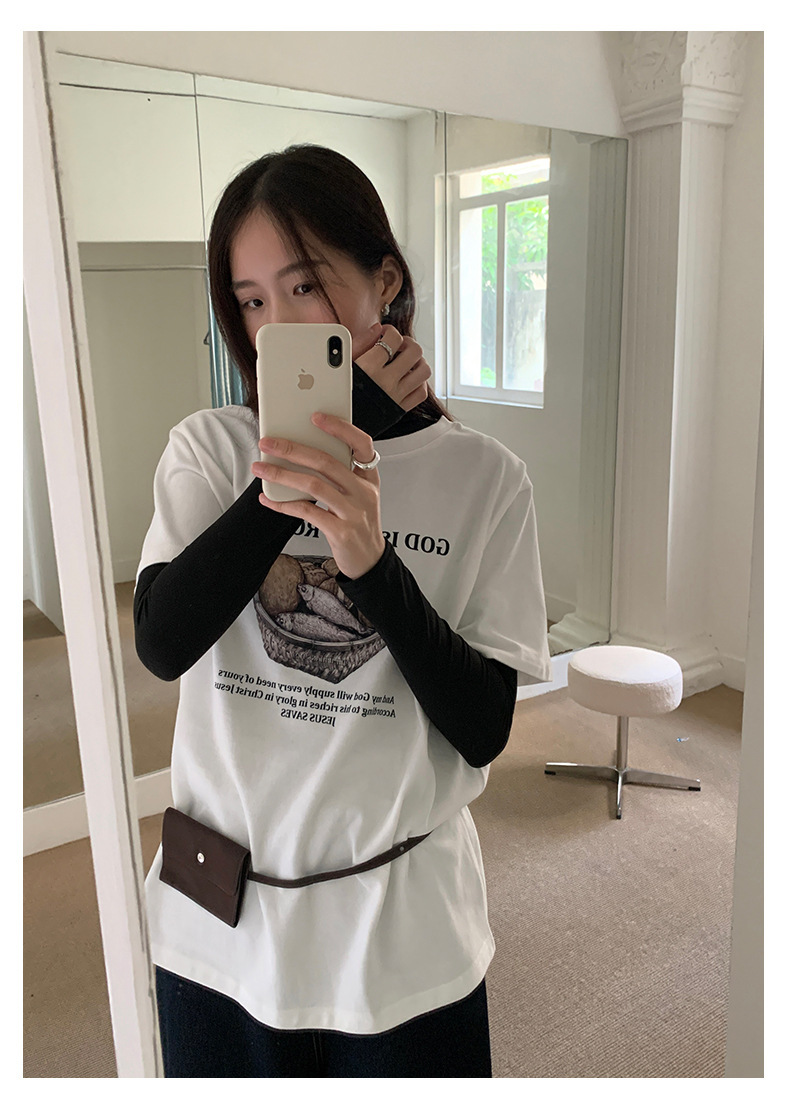 *o-ha-you*【FHZH1DA5041001】磨毛高克重美式印花圓領T恤2025秋冬寬鬆休閒內搭上衣-3色