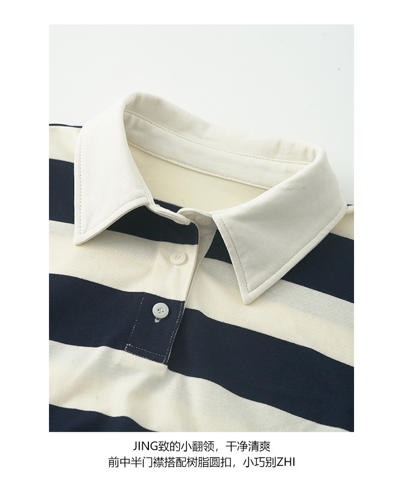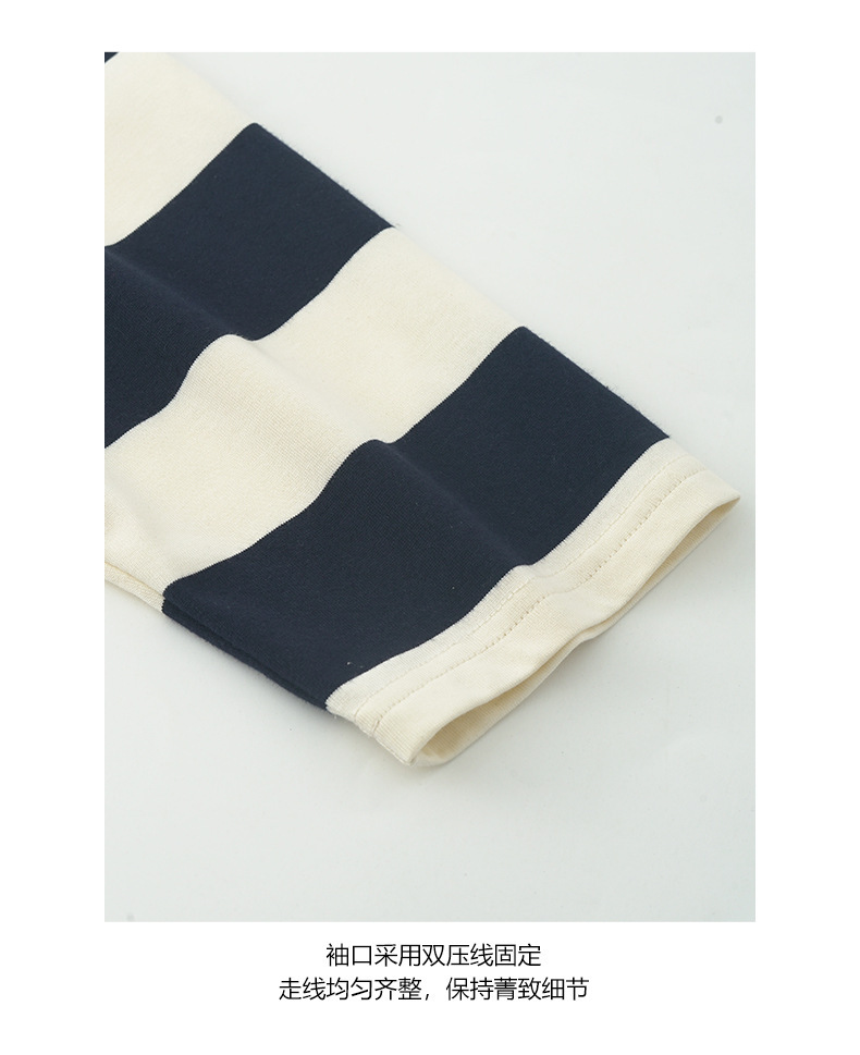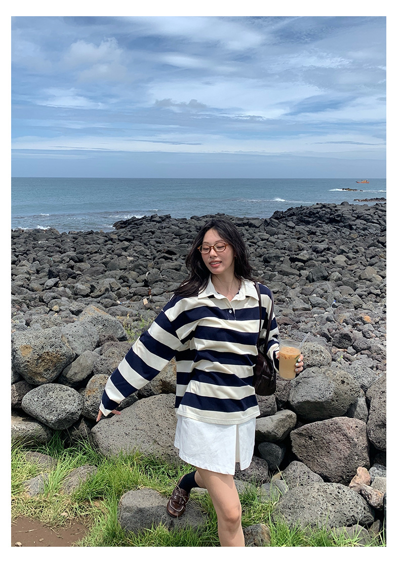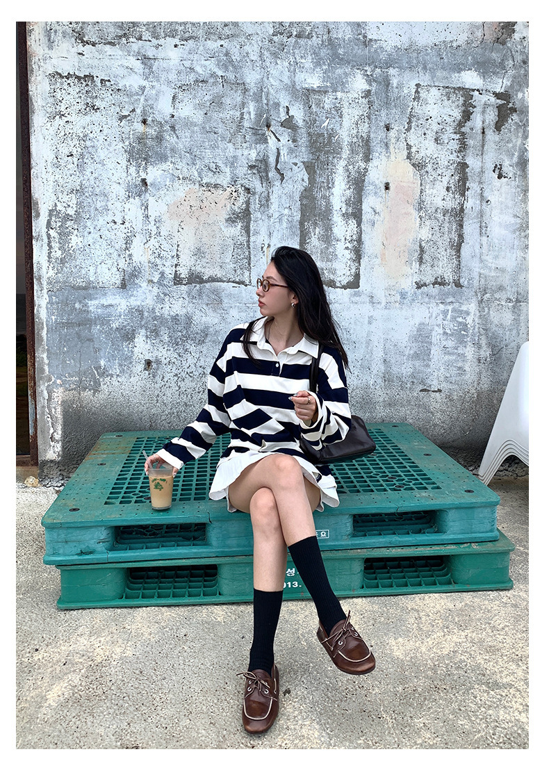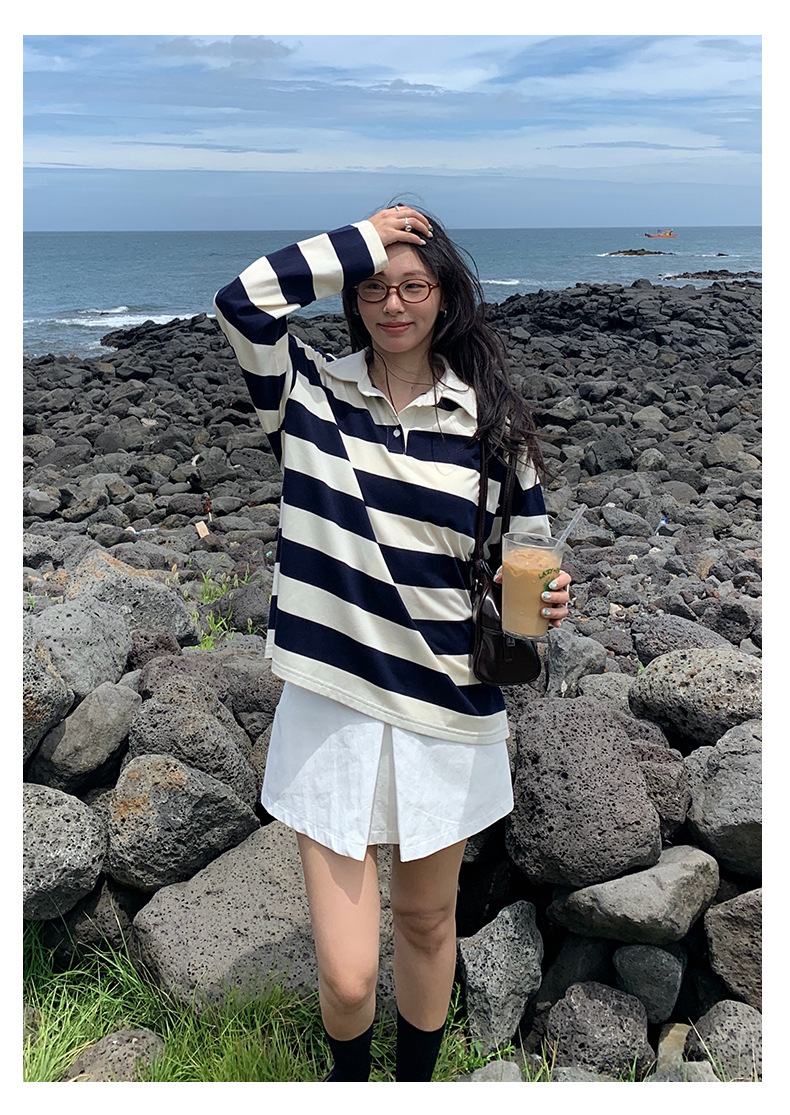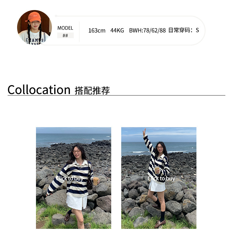 *o-ha-you*【FHZH1DB5030743】學院風翻領百搭條紋polo衛衣秋季寬鬆軟糯減齡上衣