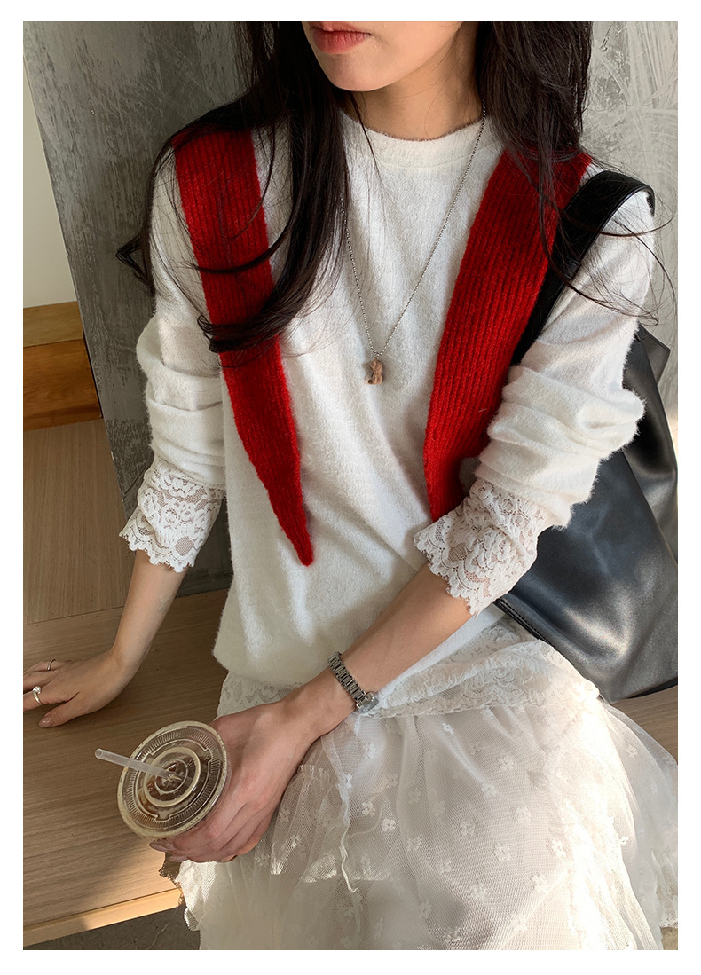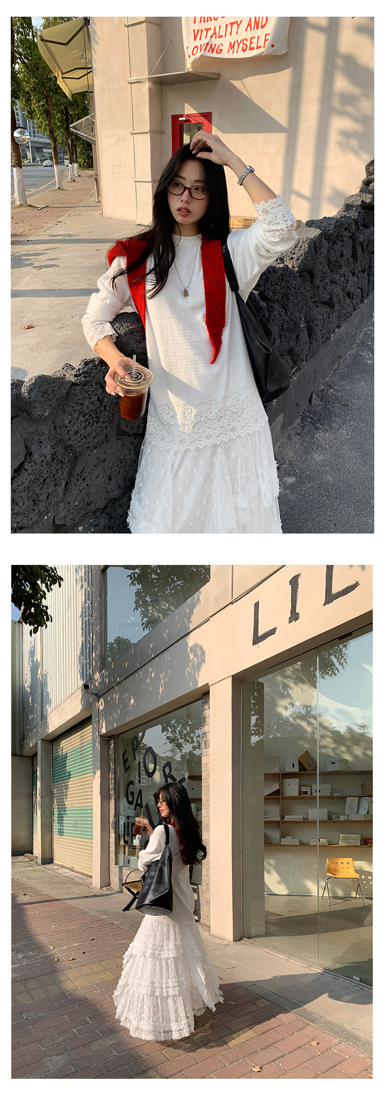 *o-ha-you*【FHZH1DC5010020】蕾絲花邊拼接長袖T恤2025早春韓系寬鬆休閒上衣-如有需要請先諮詢