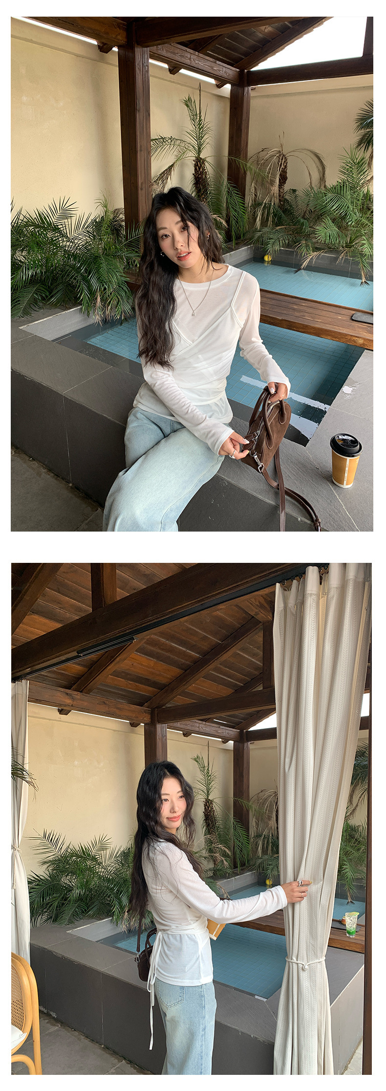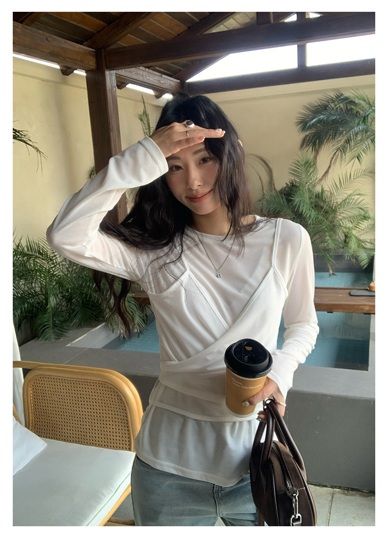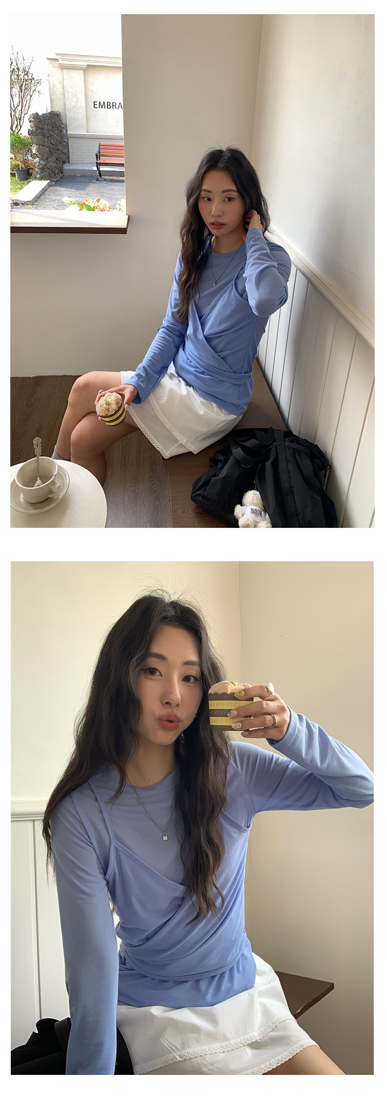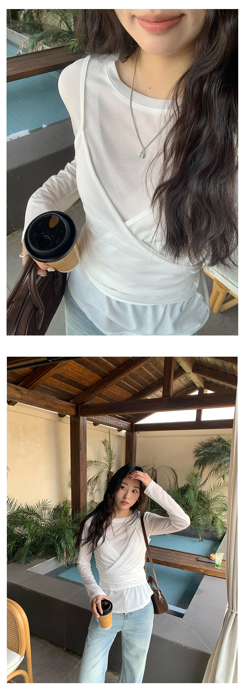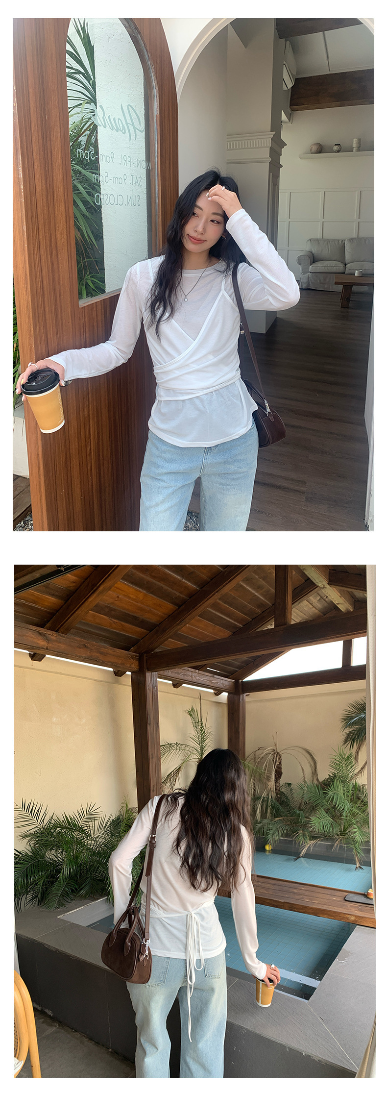 *o-ha-you*【FHZH1DC5010086】設計感交叉假兩件T恤2025春款親膚圓領長袖上衣-2色-如有需要請先諮詢