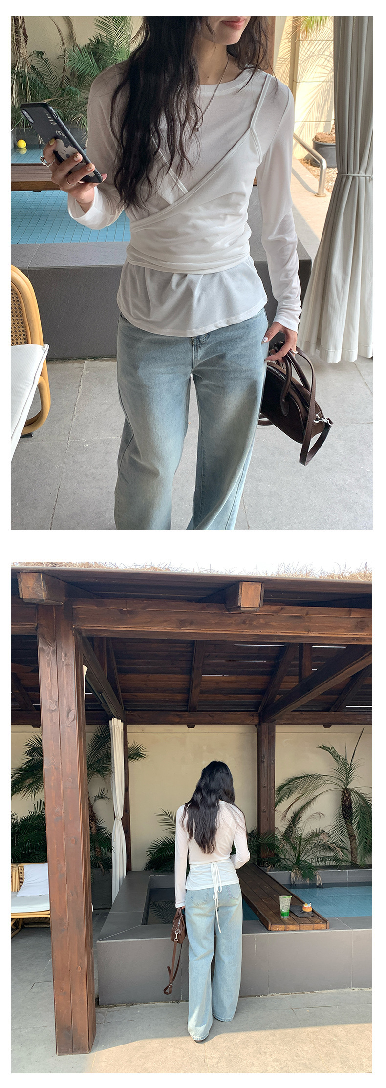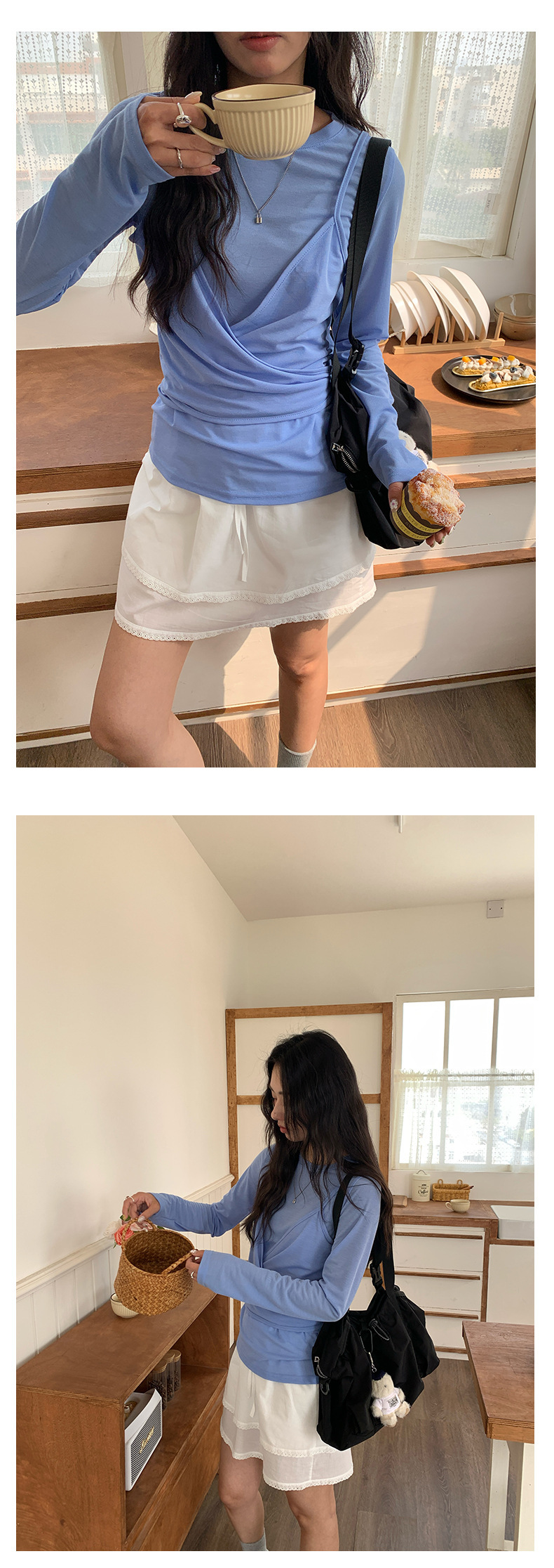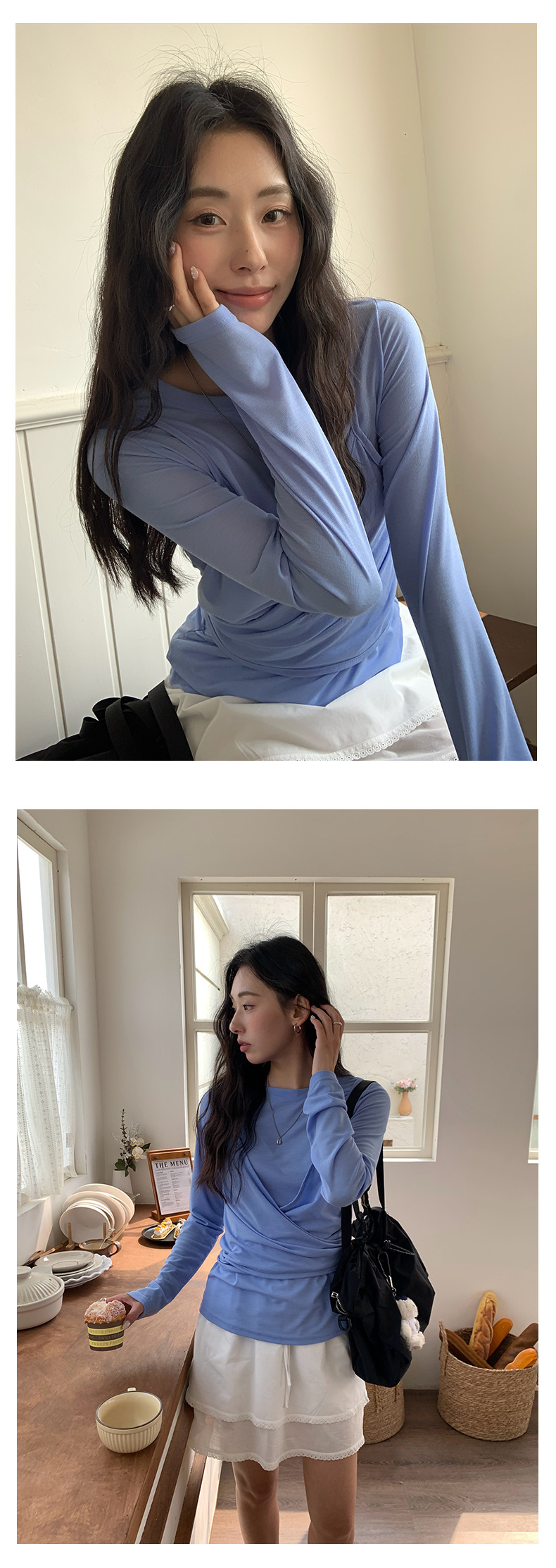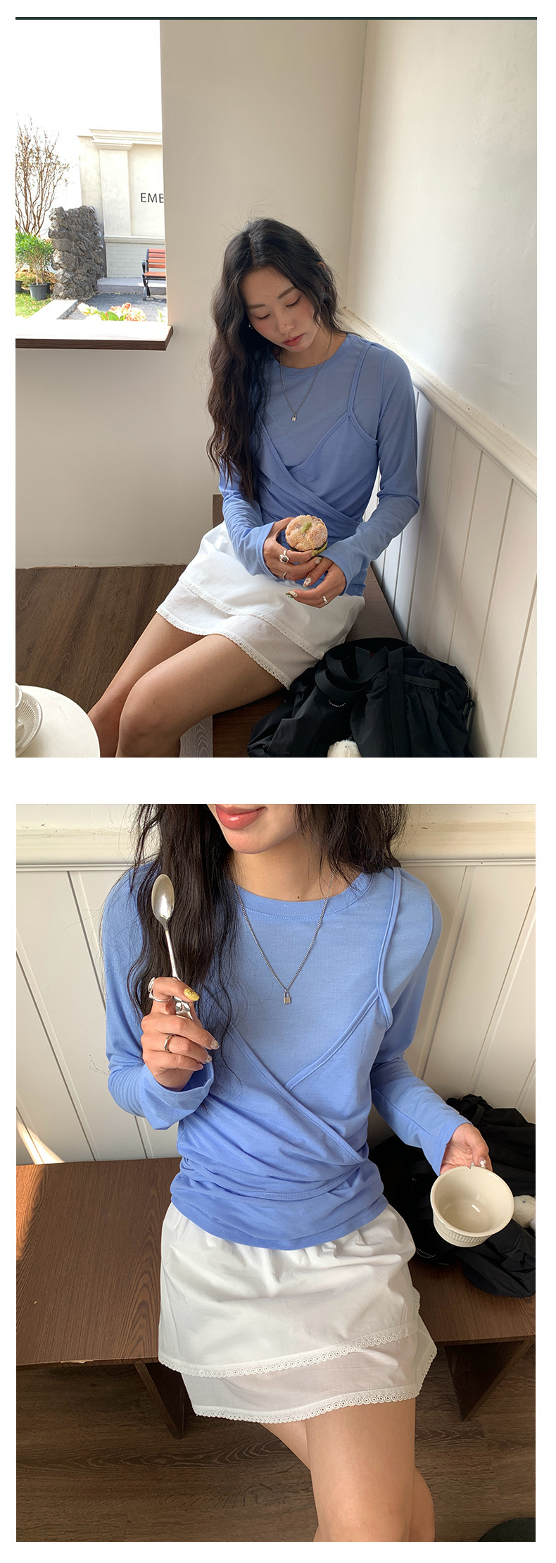 *o-ha-you*【FHZH1DC5010086】設計感交叉假兩件T恤2025春款親膚圓領長袖上衣-2色-如有需要請先諮詢