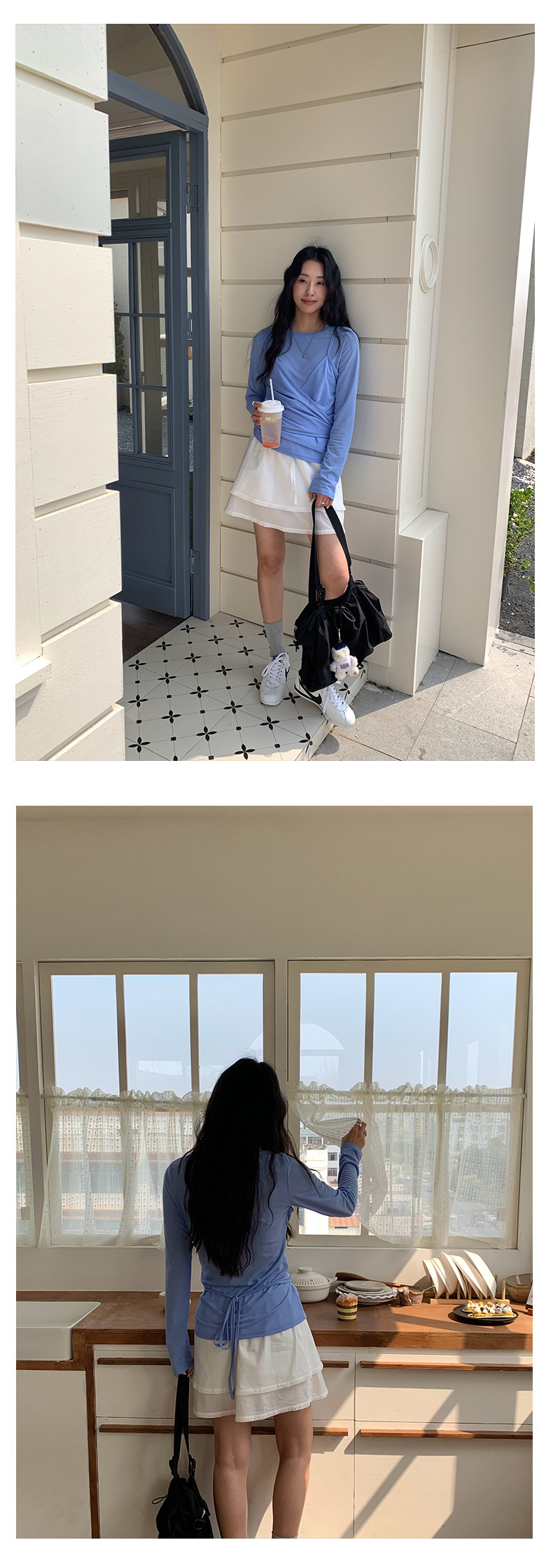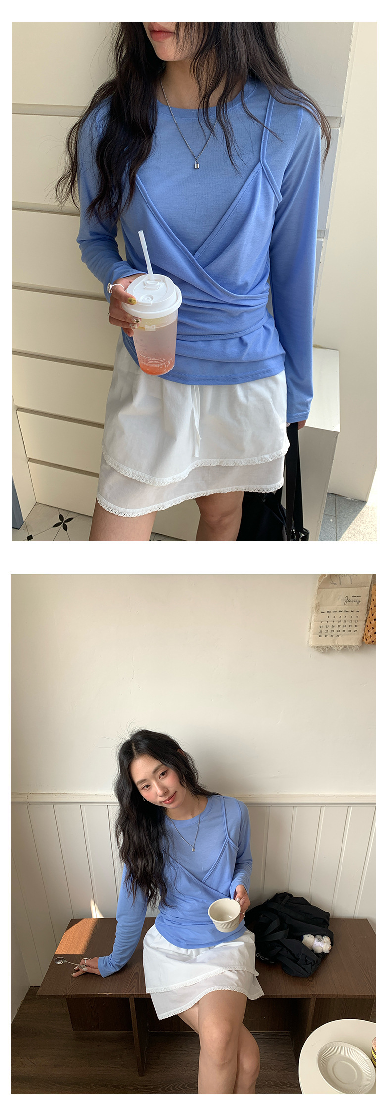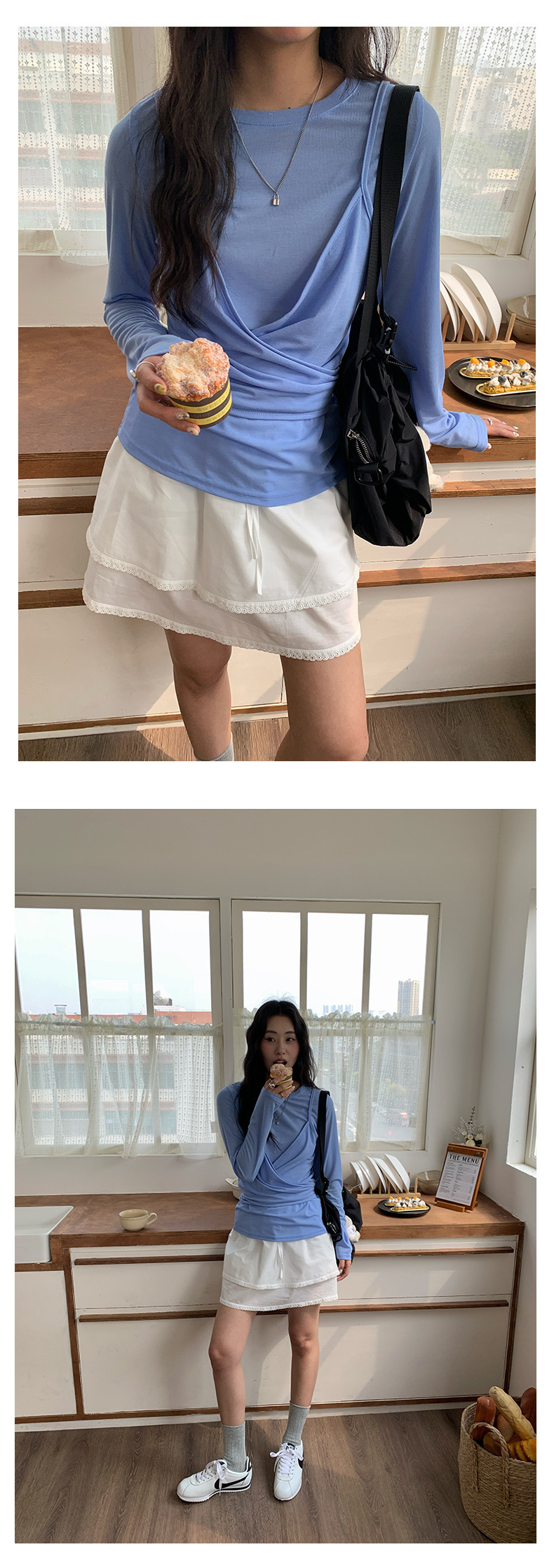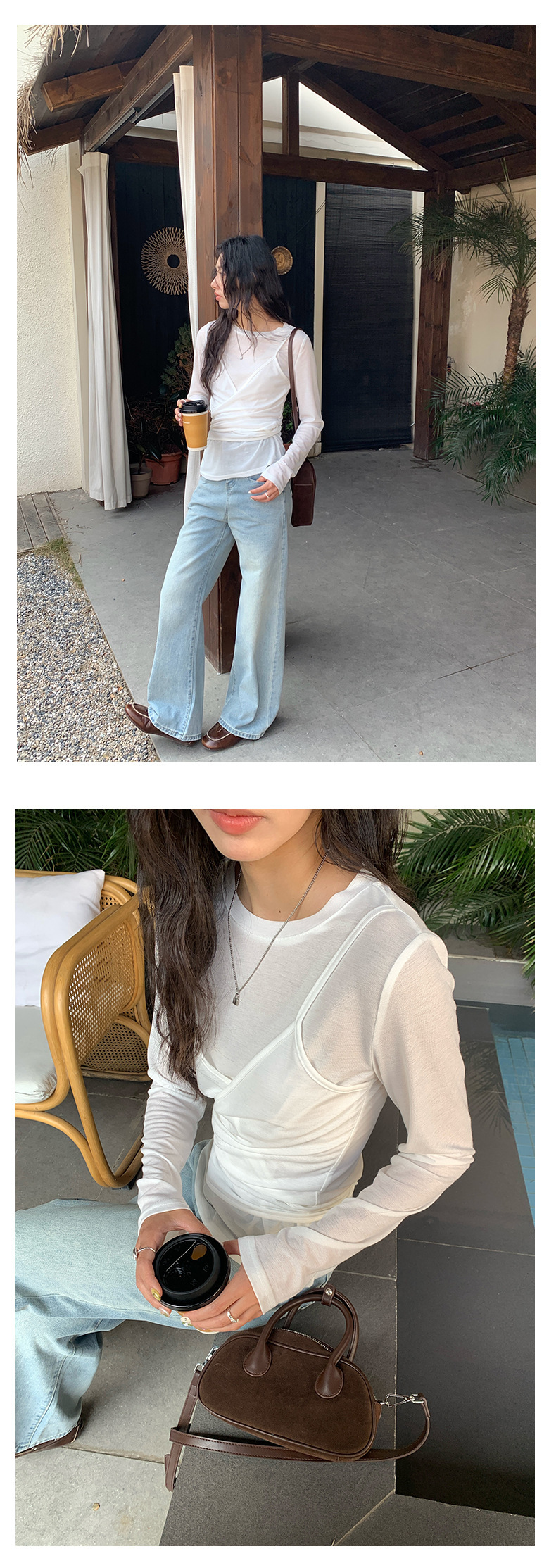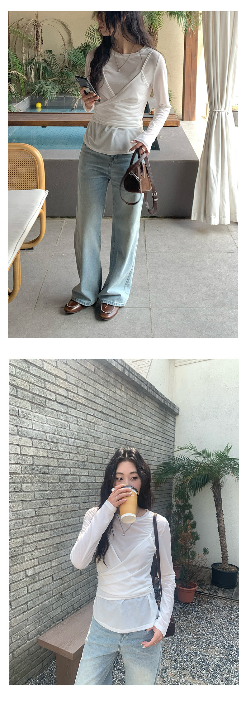 *o-ha-you*【FHZH1DC5010086】設計感交叉假兩件T恤2025春款親膚圓領長袖上衣-2色-如有需要請先諮詢