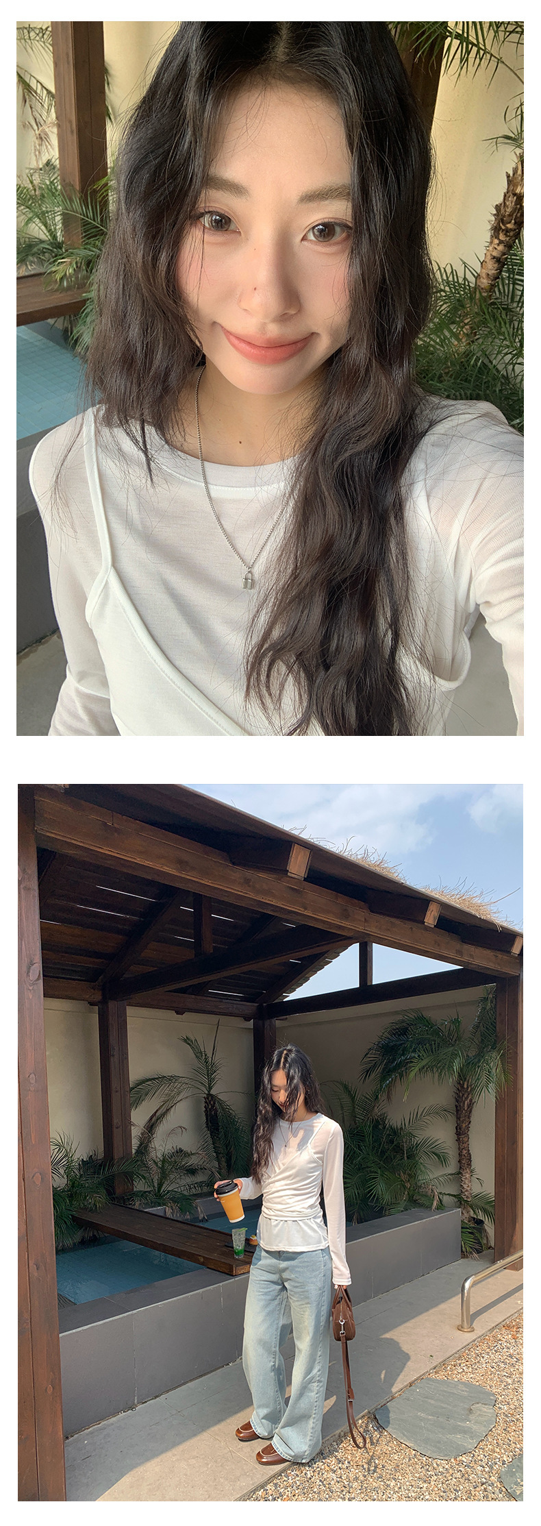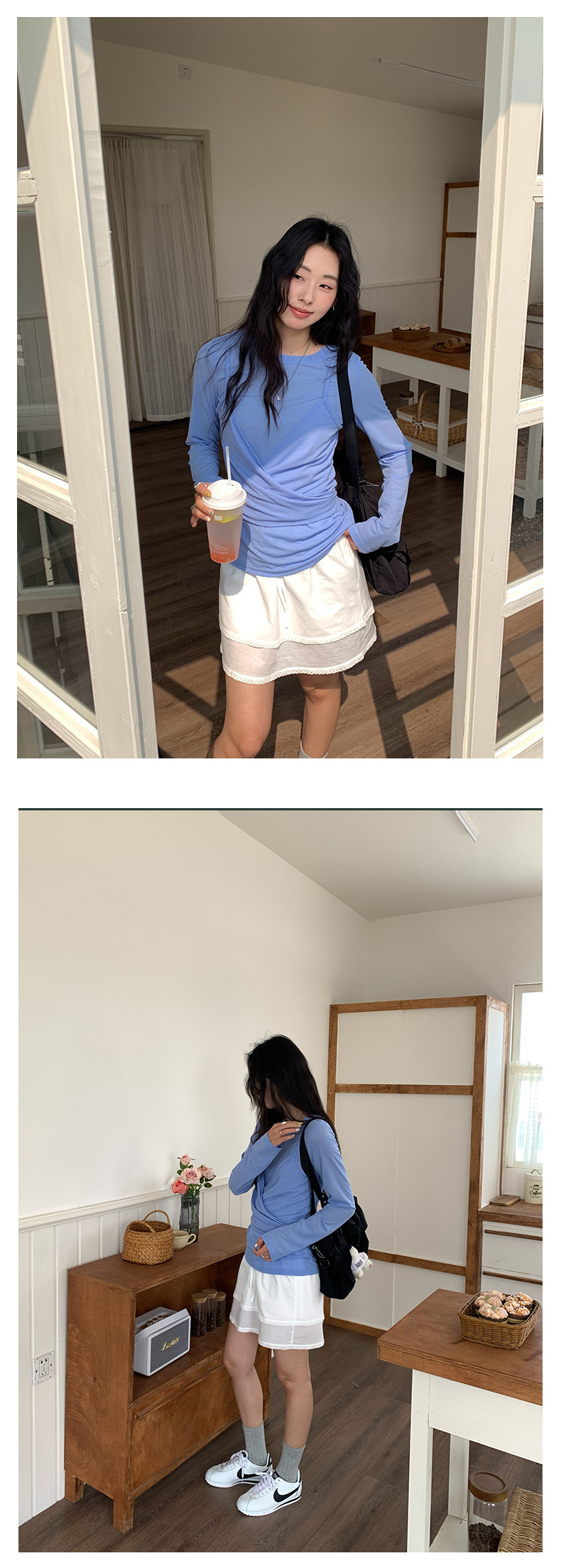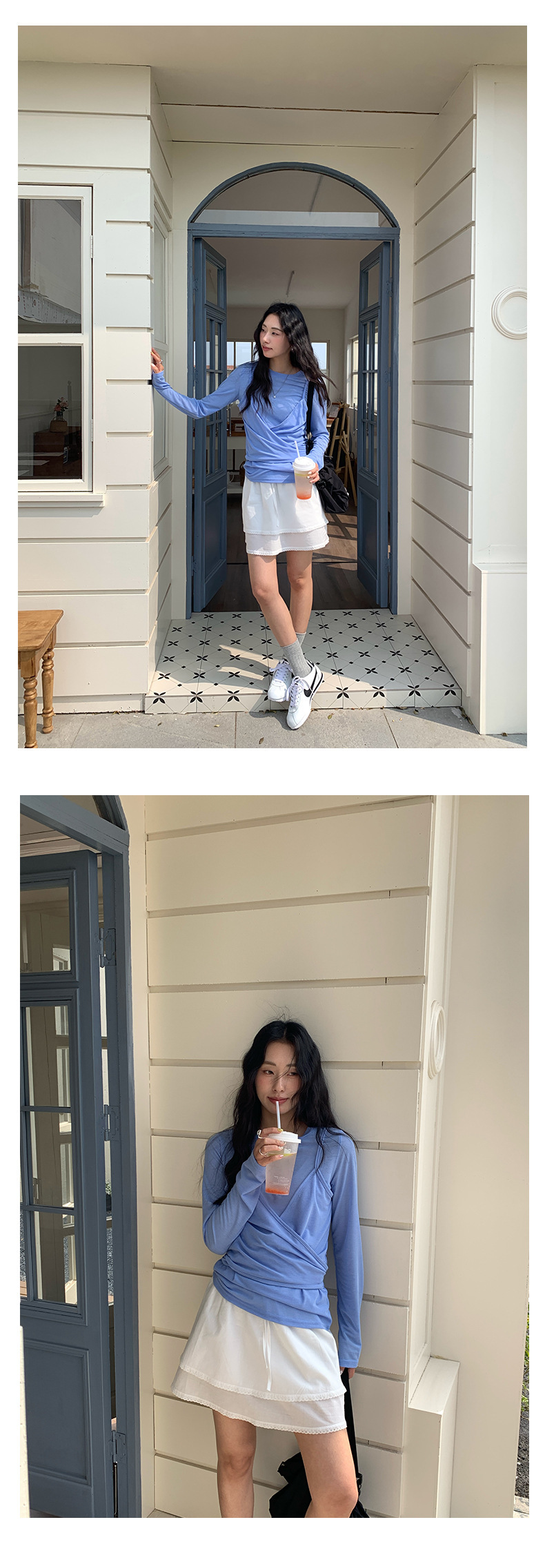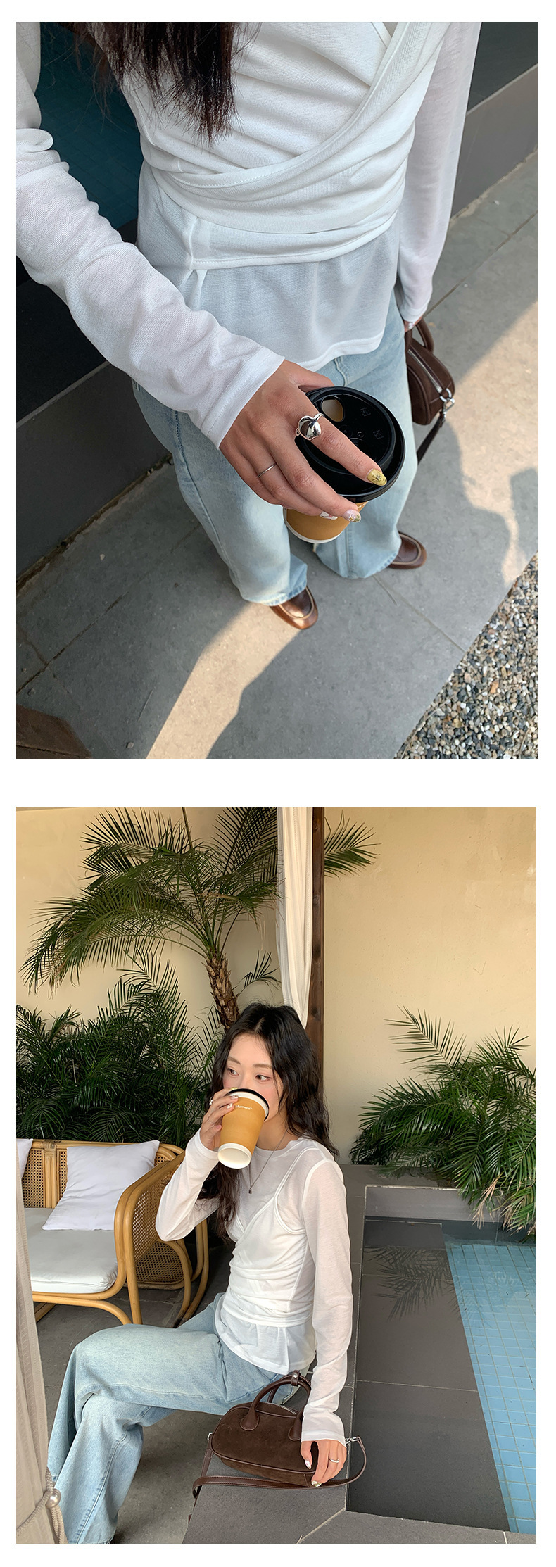 *o-ha-you*【FHZH1DC5010086】設計感交叉假兩件T恤2025春款親膚圓領長袖上衣-2色-如有需要請先諮詢