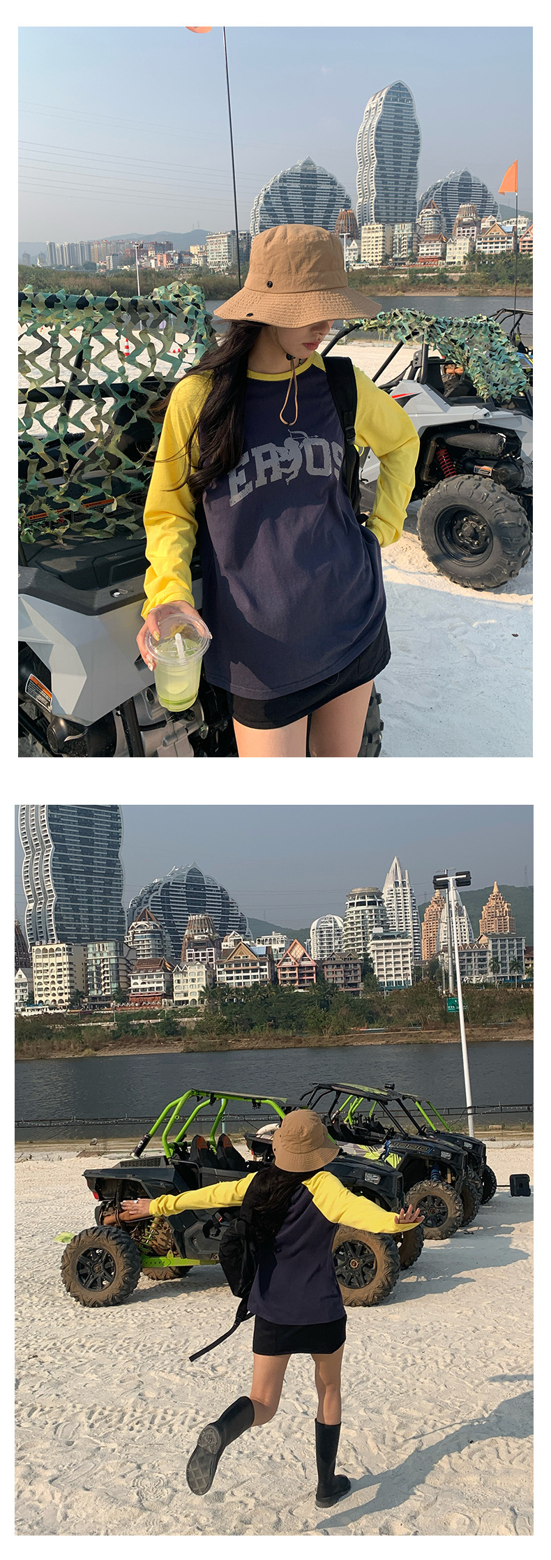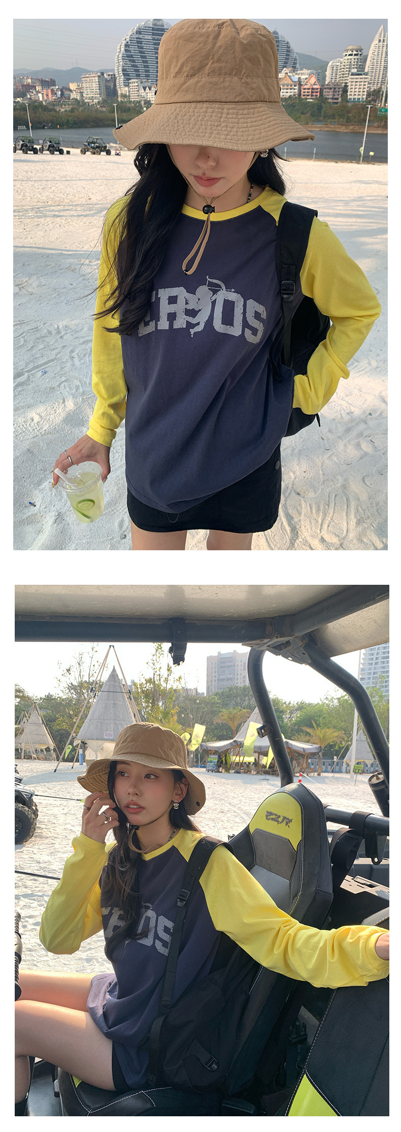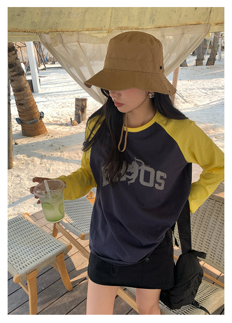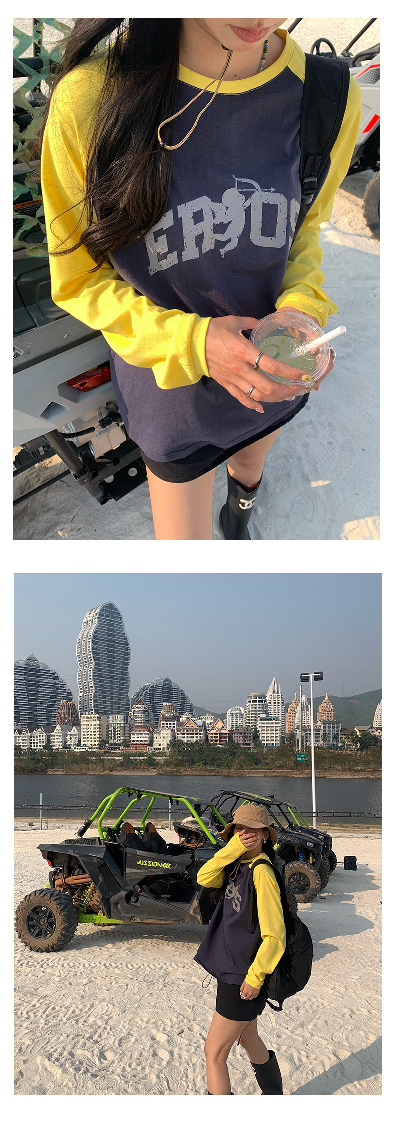 *o-ha-you*【FHZH1DC5020264】撞色拼接字母印花長袖T恤2025夏款潮流個性上衣-如有需要請先諮詢