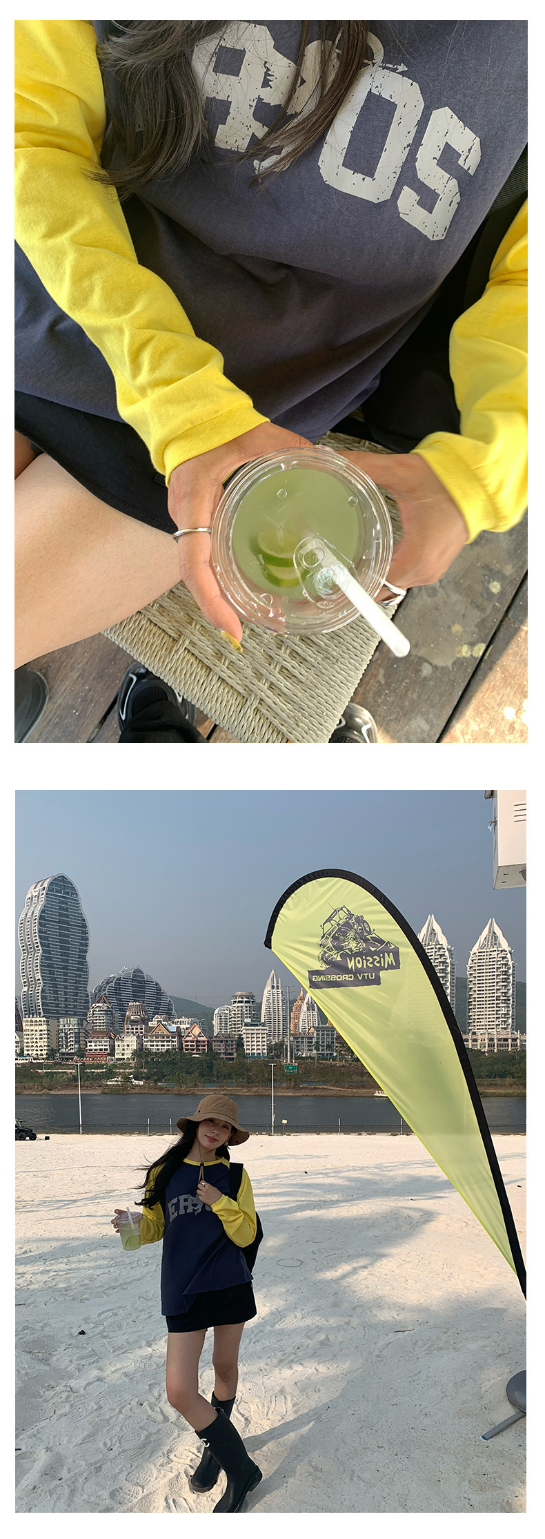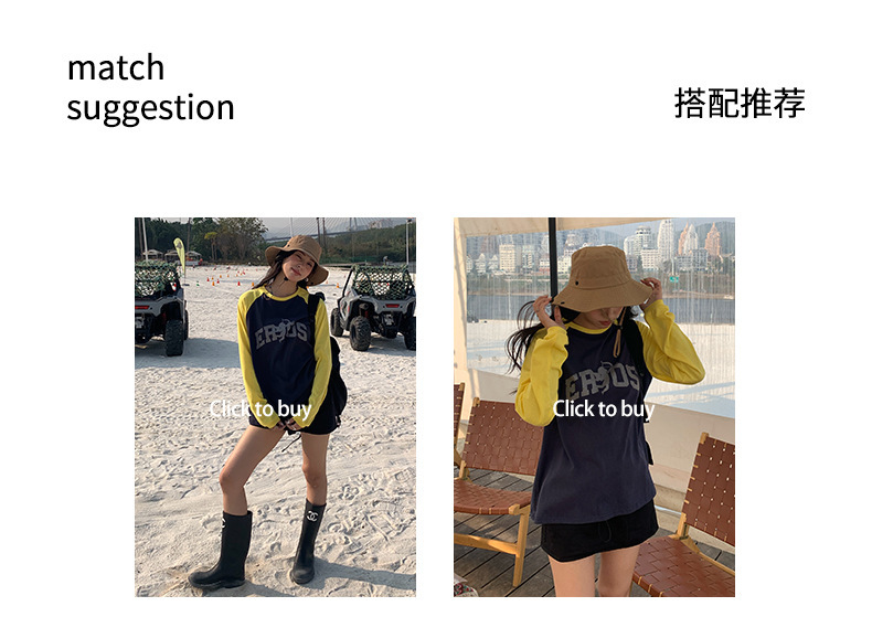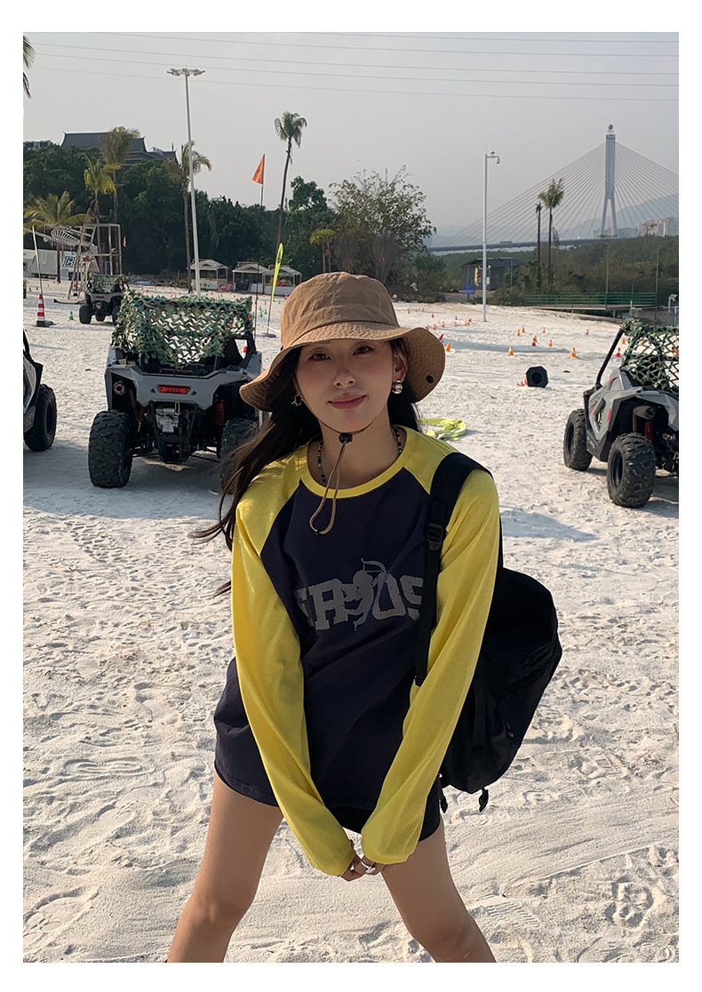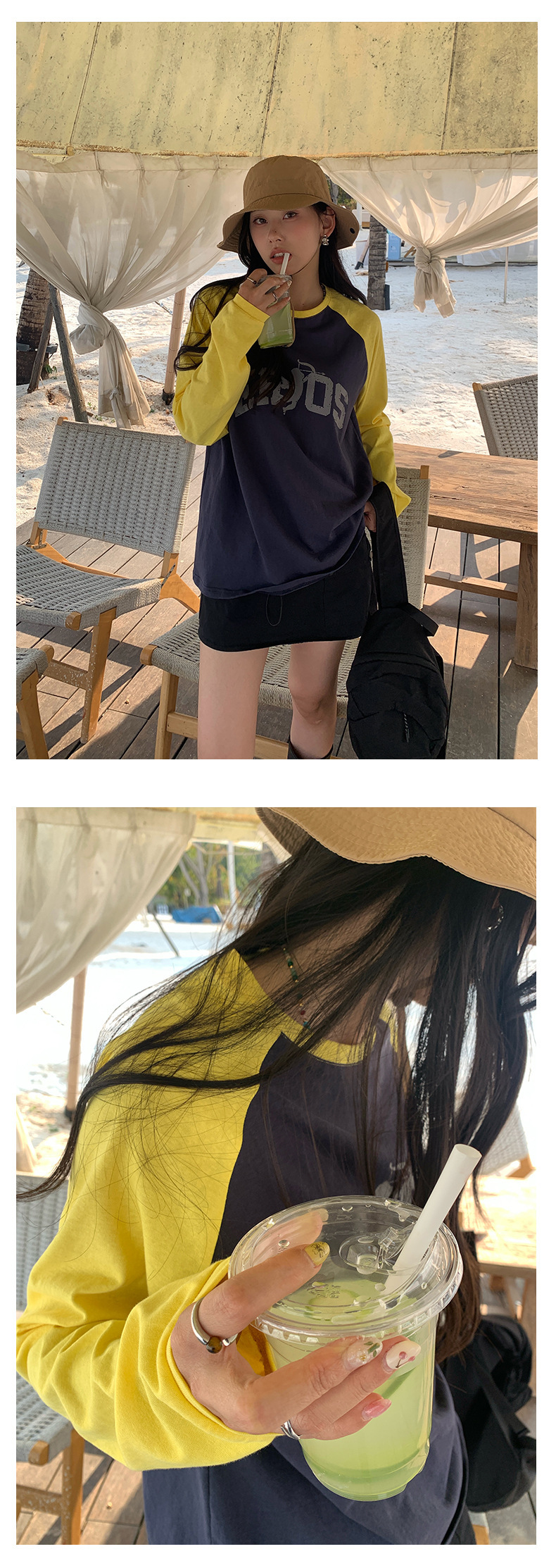 *o-ha-you*【FHZH1DC5020264】撞色拼接字母印花長袖T恤2025夏款潮流個性上衣-如有需要請先諮詢