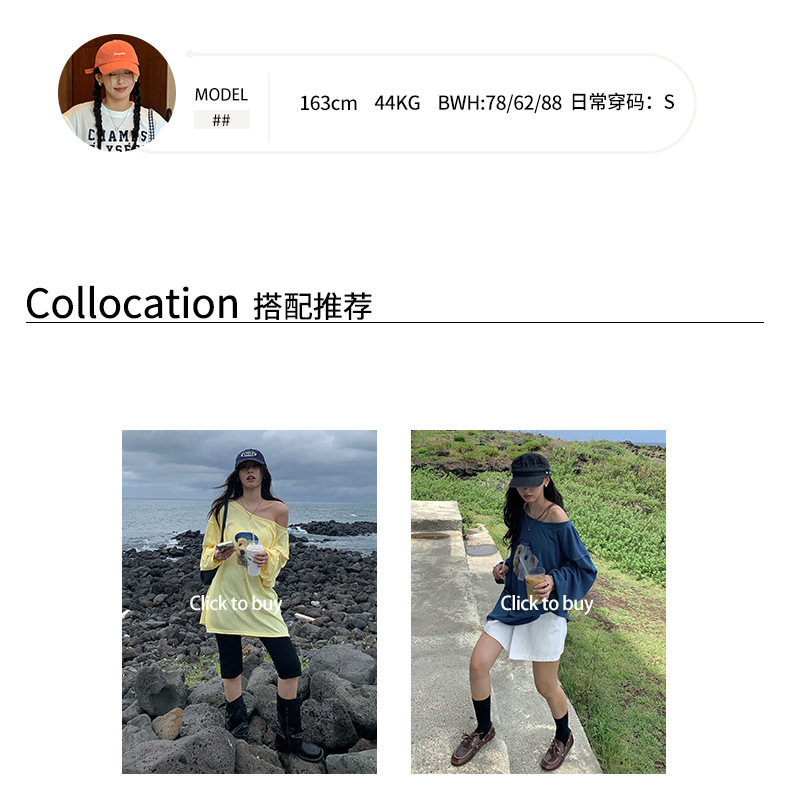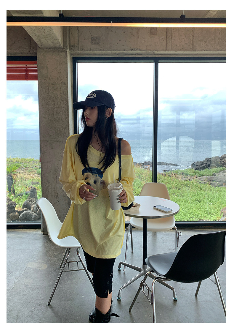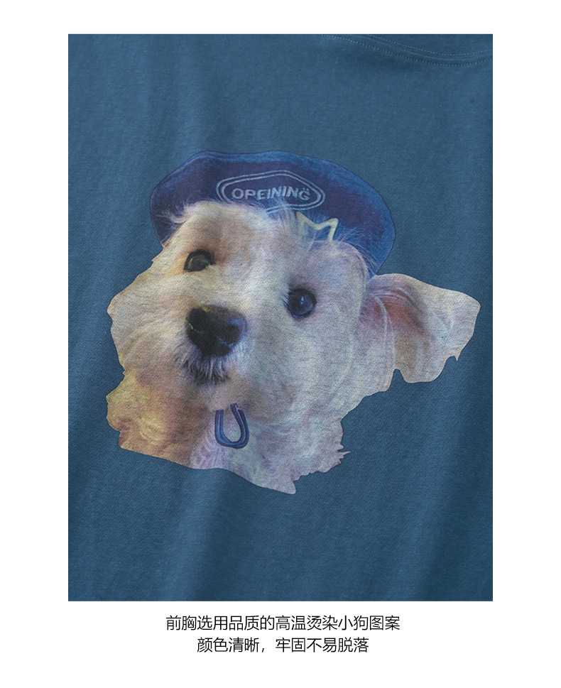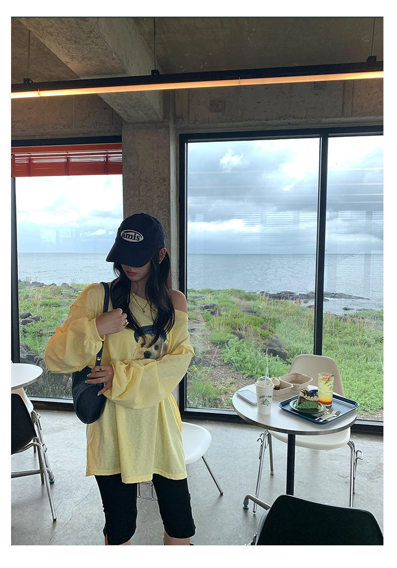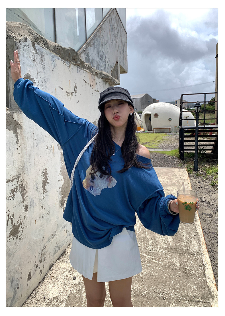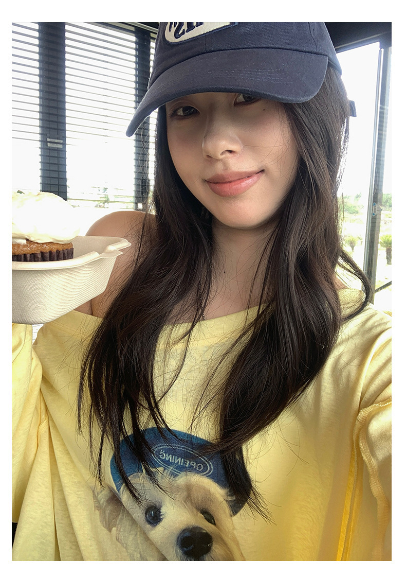 *o-ha-you*【FHZH1DC5030679】韓版秋季美式風寬鬆狗狗印花防曬衫一字肩T恤上衣-2色