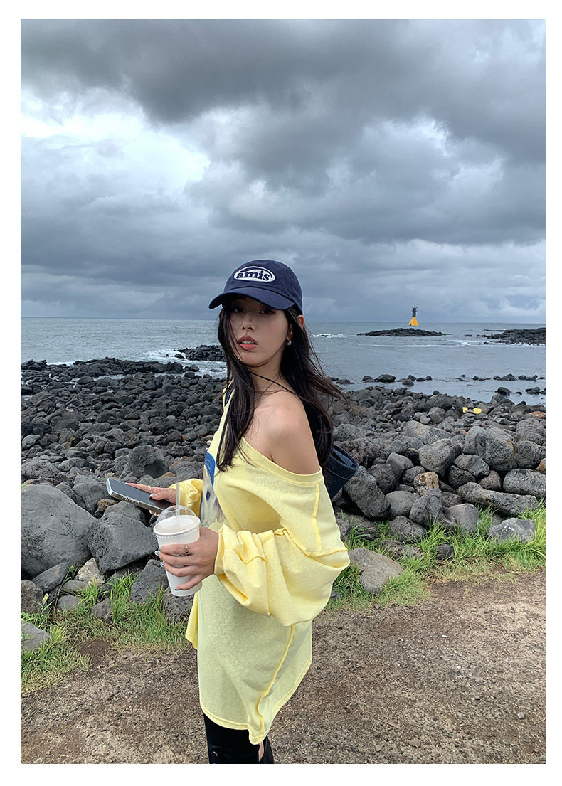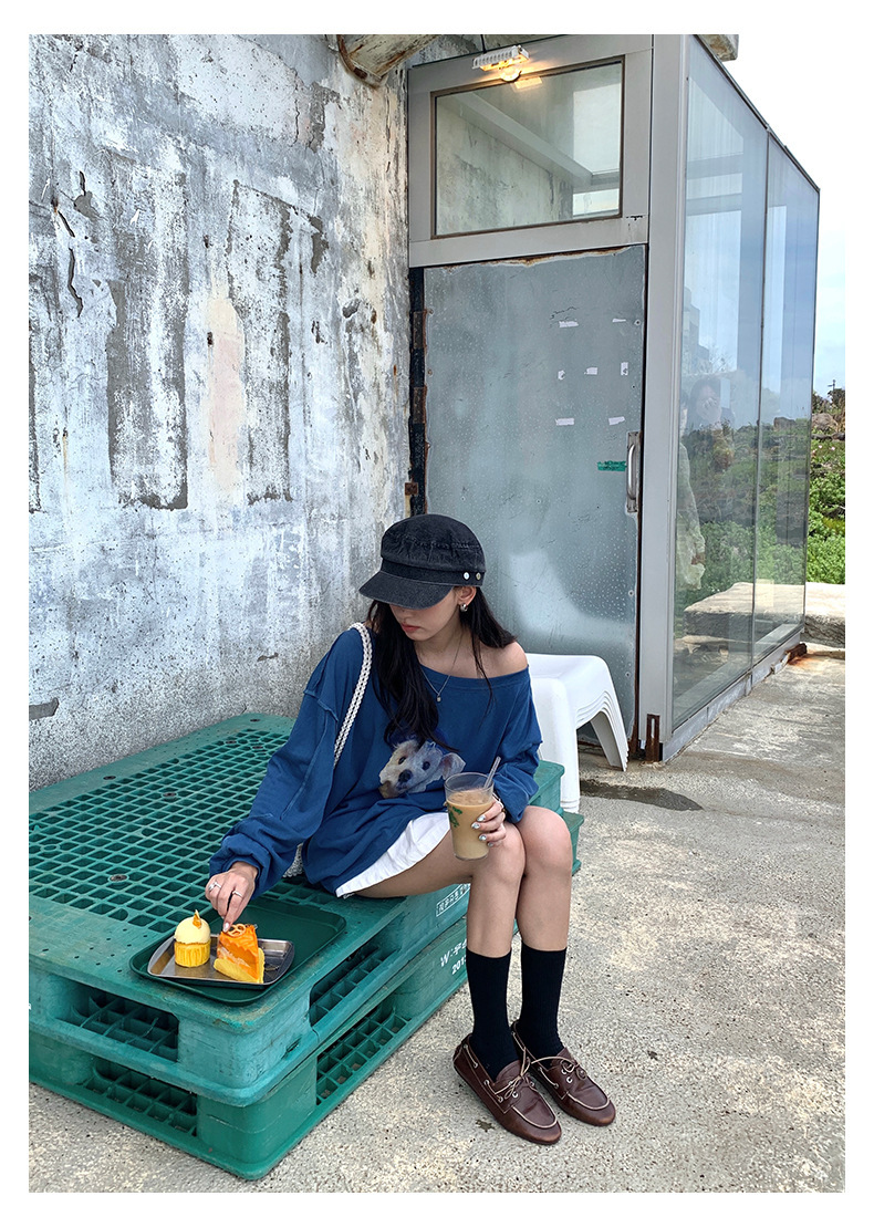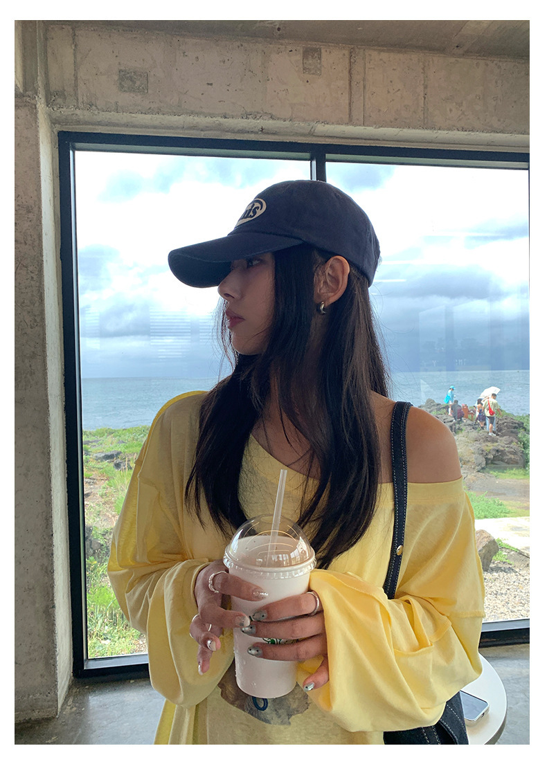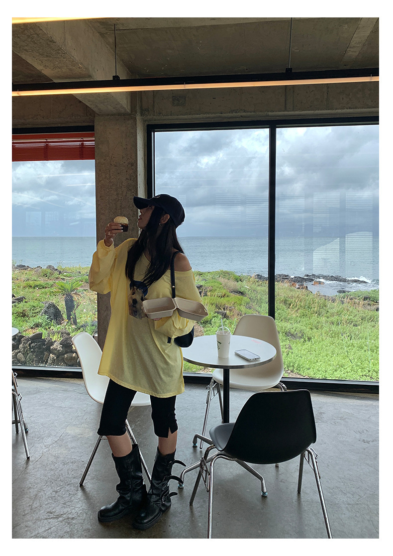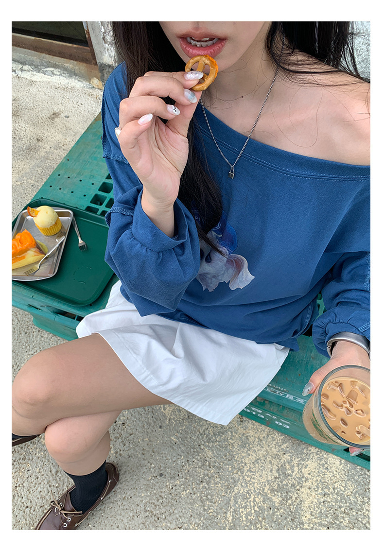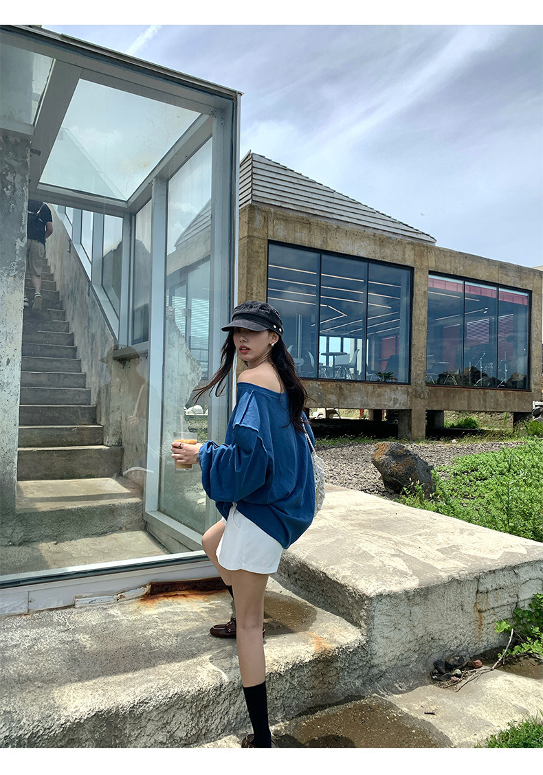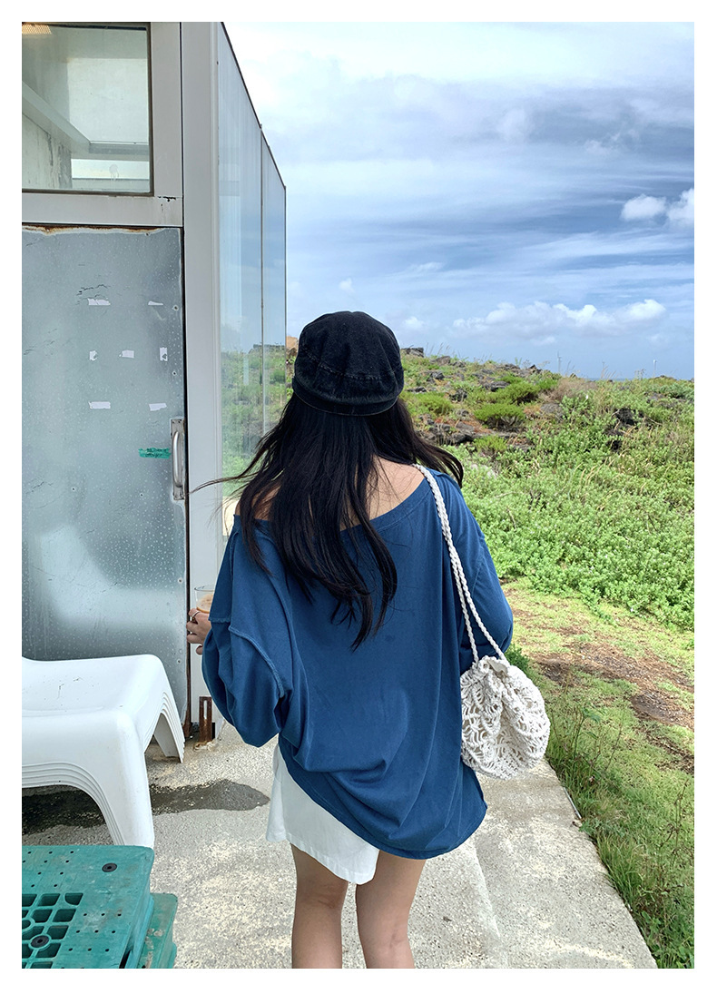*o-ha-you*【FHZH1DC5030679】韓版秋季美式風寬鬆狗狗印花防曬衫一字肩T恤上衣-2色