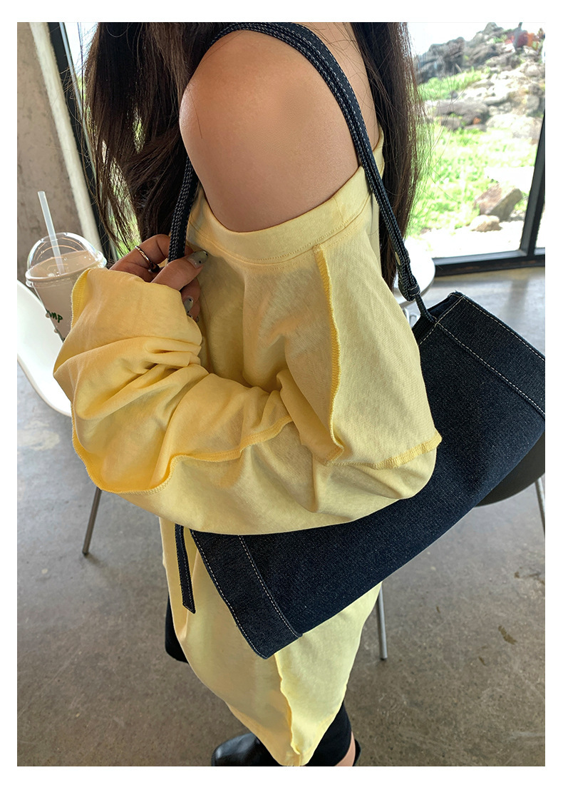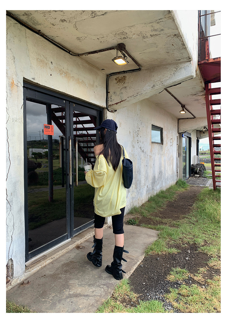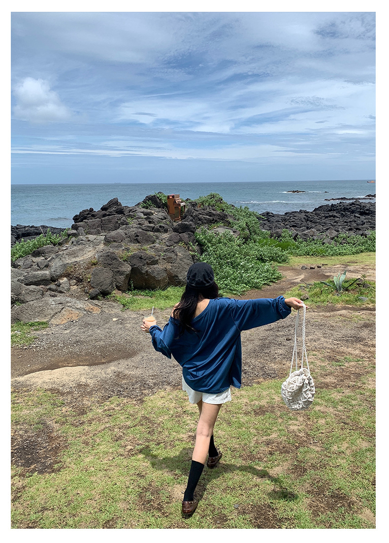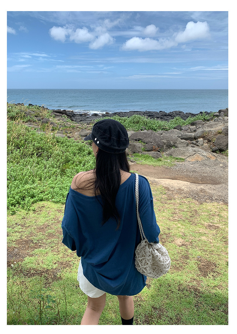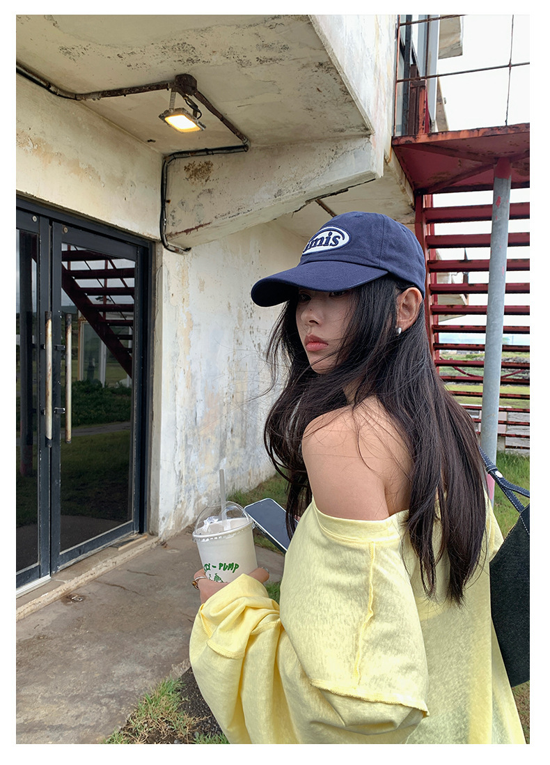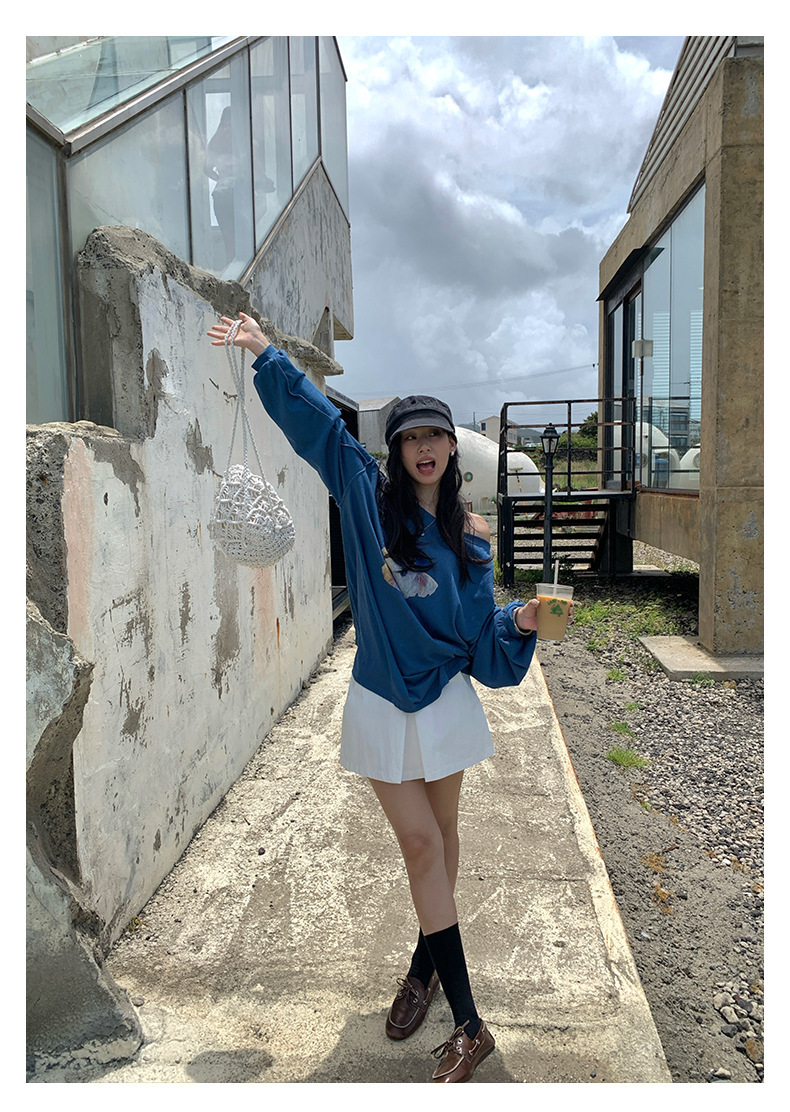 *o-ha-you*【FHZH1DC5030679】韓版秋季美式風寬鬆狗狗印花防曬衫一字肩T恤上衣-2色