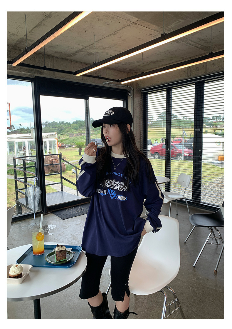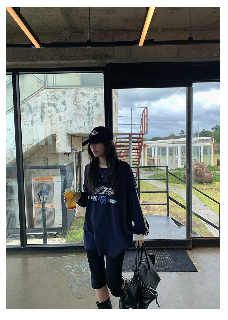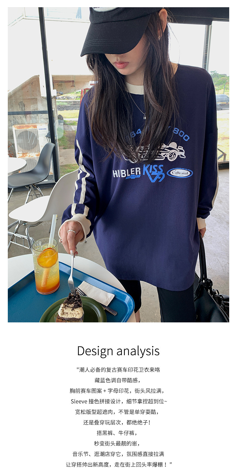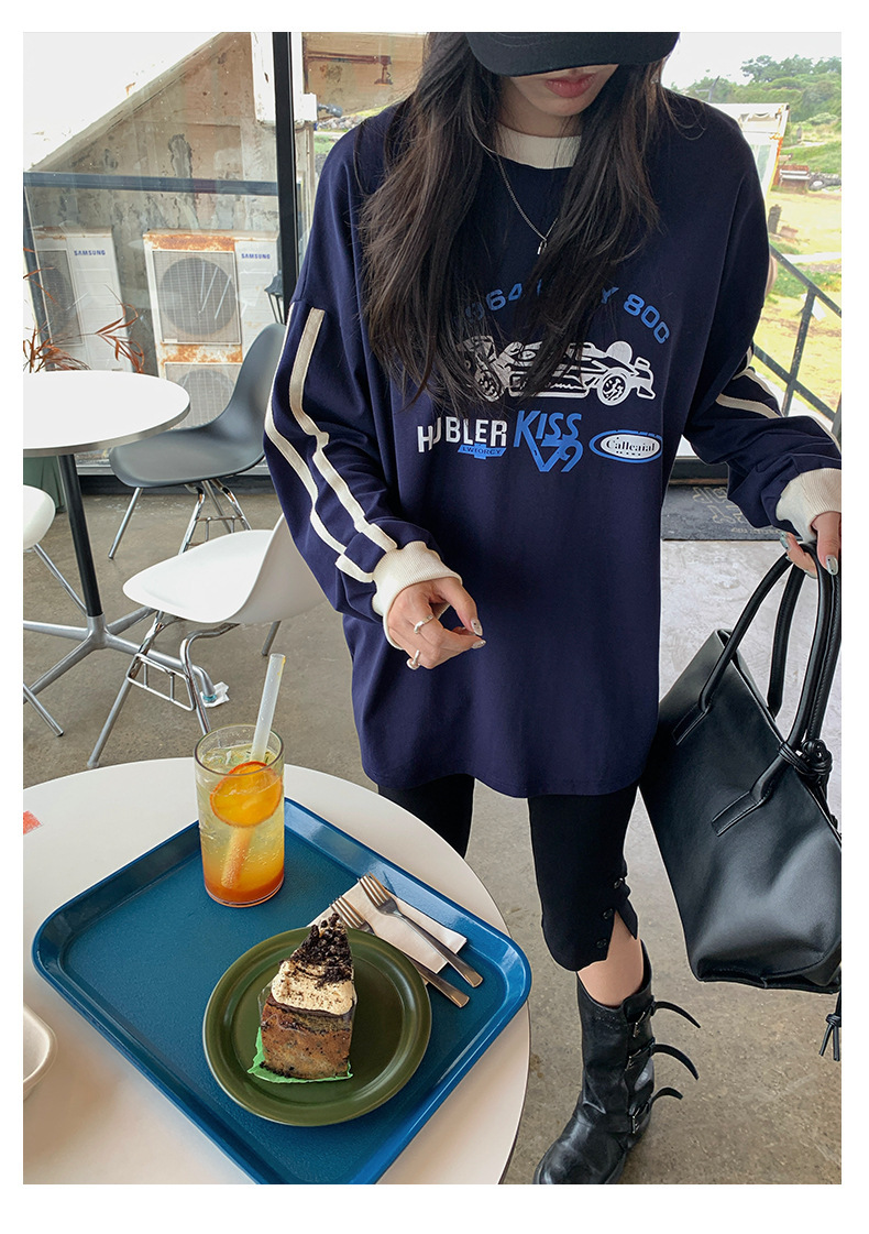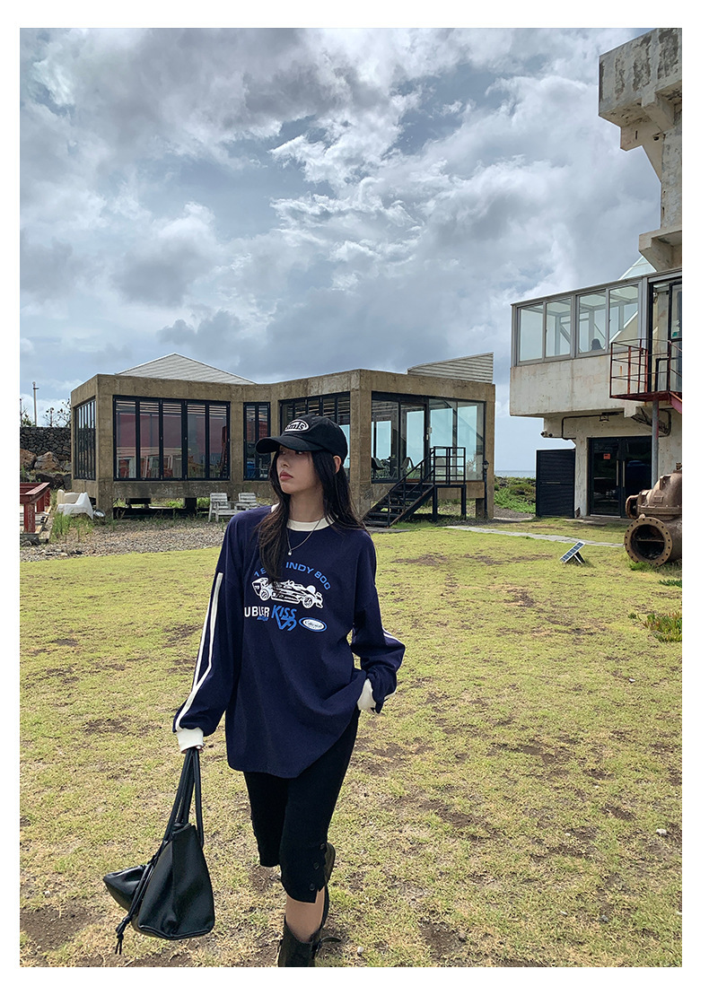 *o-ha-you*【FHZH1DC5030757】韓版甜美上衣字母汽車印花側邊垂直長袖T恤