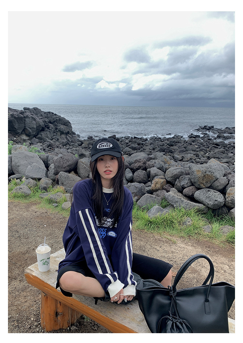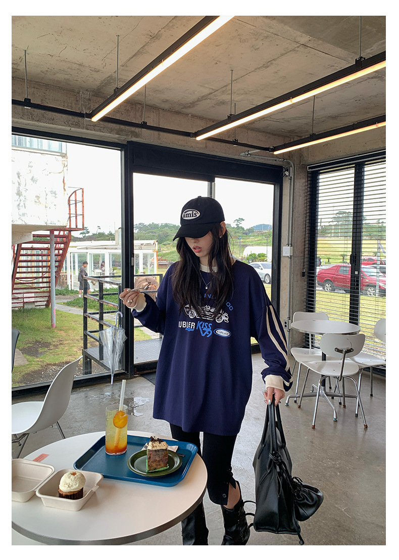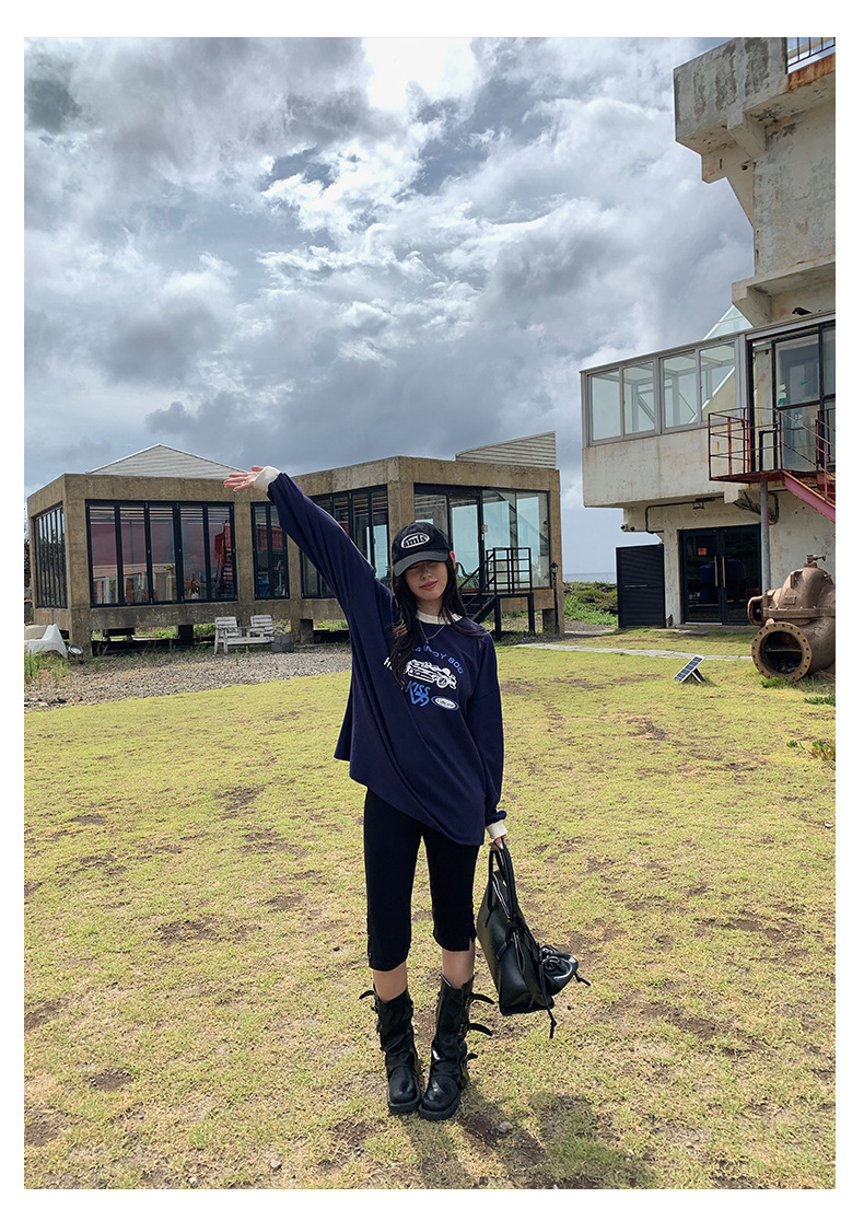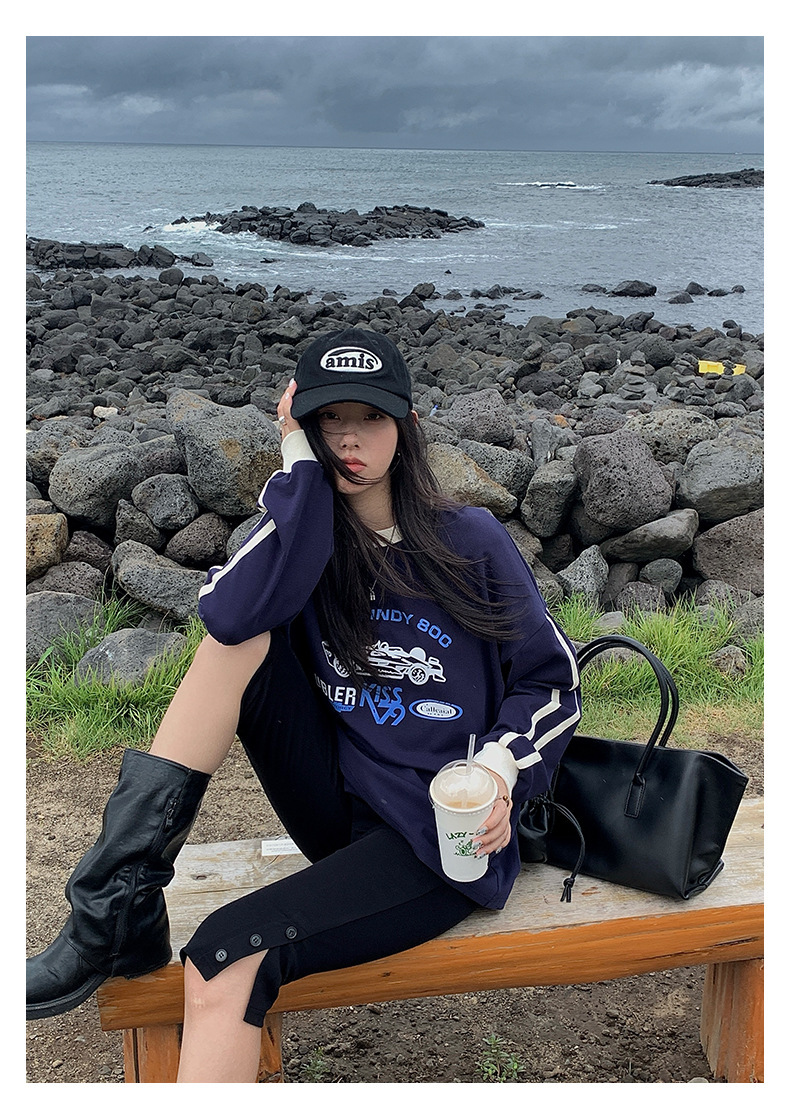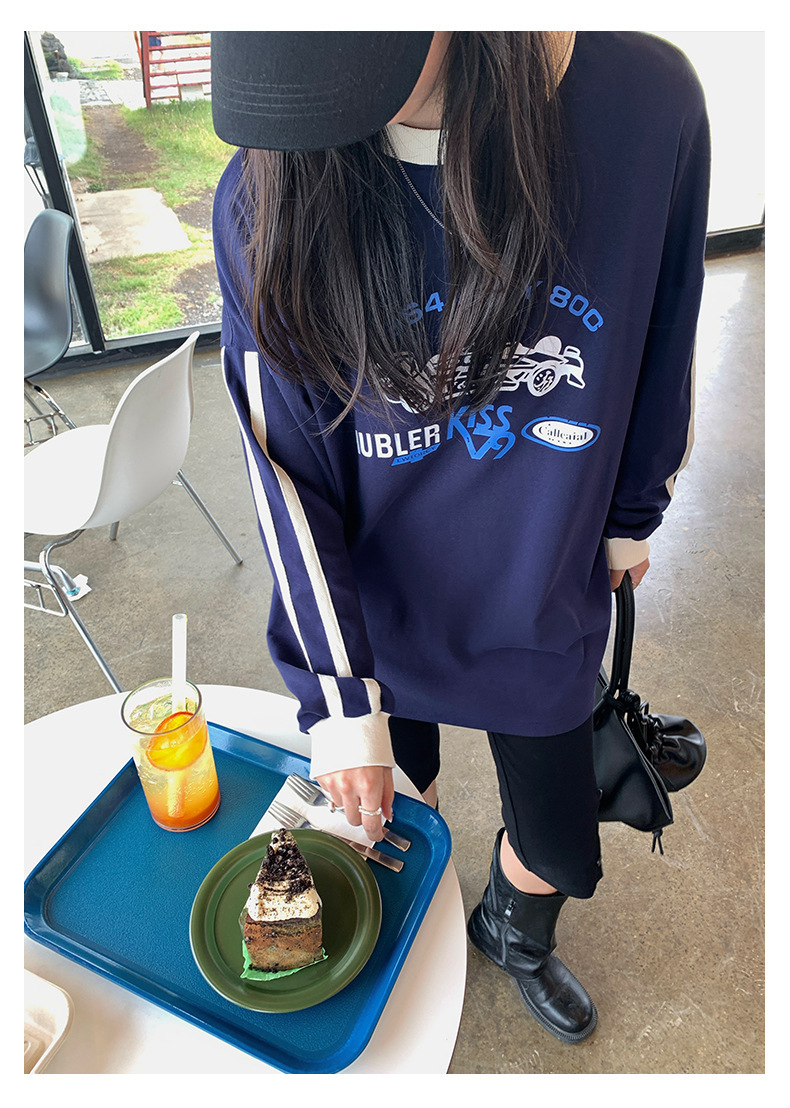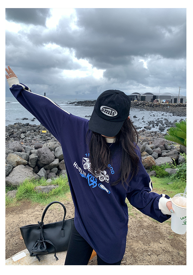 *o-ha-you*【FHZH1DC5030757】韓版甜美上衣字母汽車印花側邊垂直長袖T恤