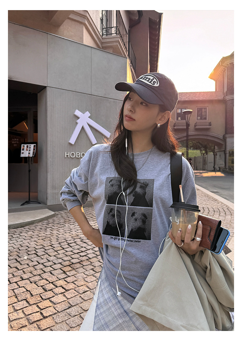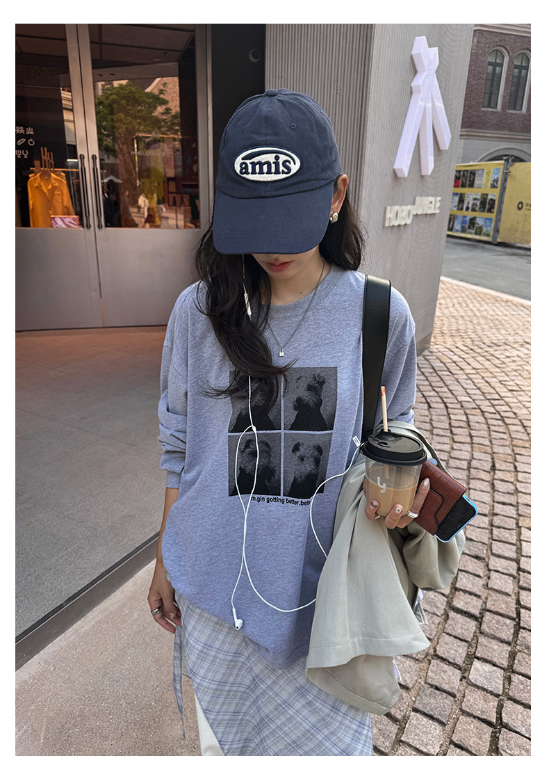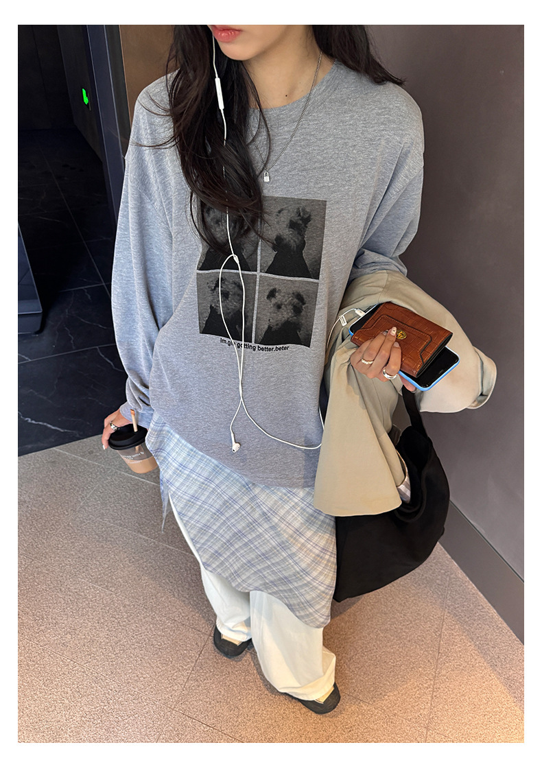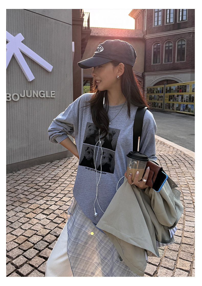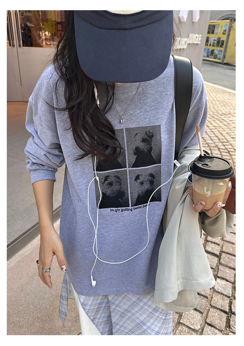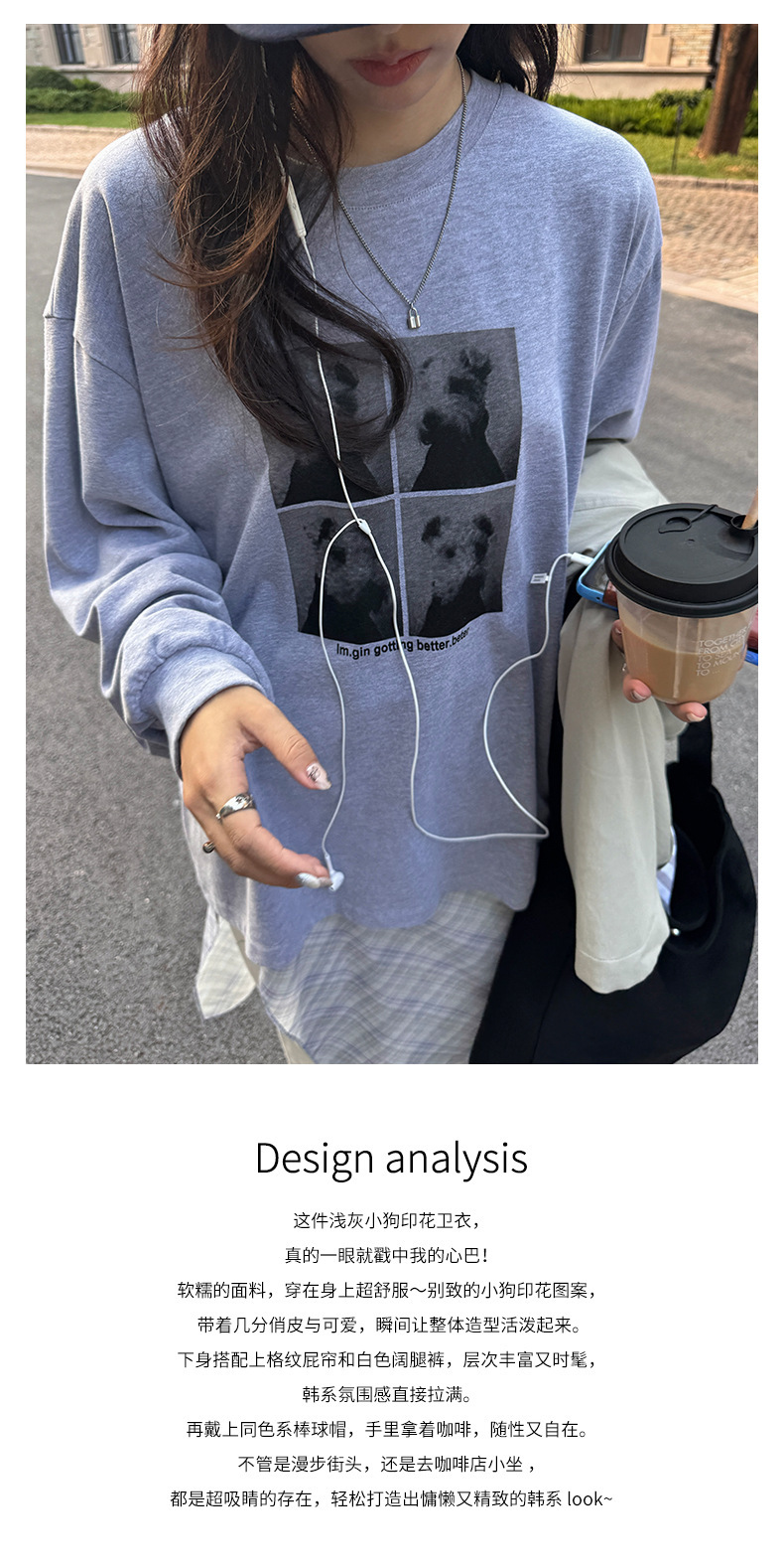 *o-ha-you*【FHZH1DC5030782】韓版早秋新款plate女士可愛狗狗四宮格印花長袖T恤