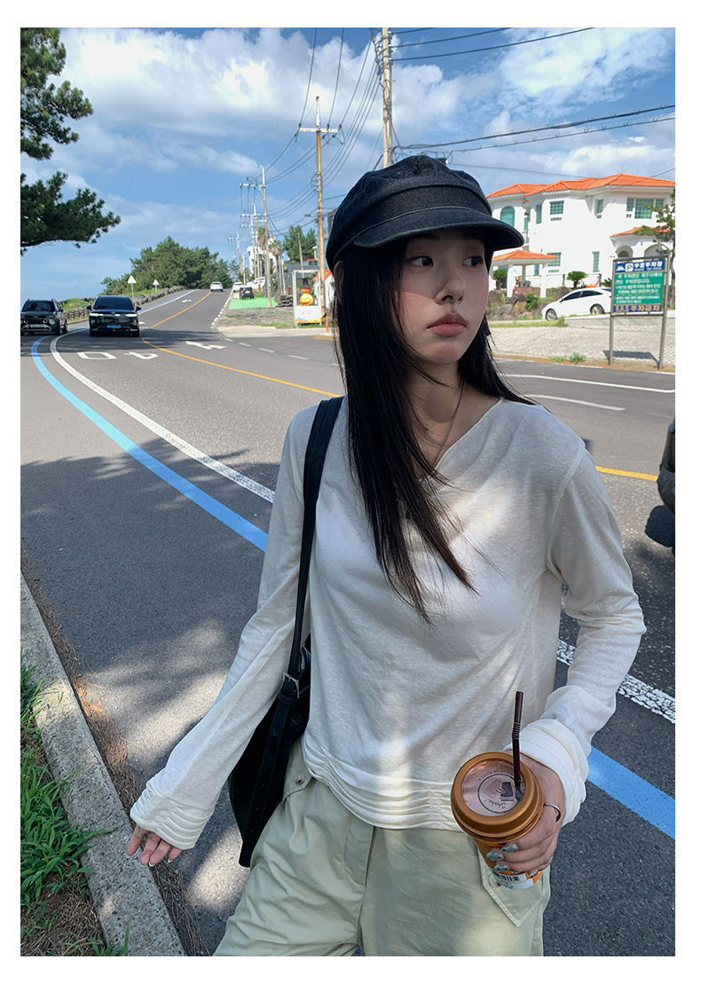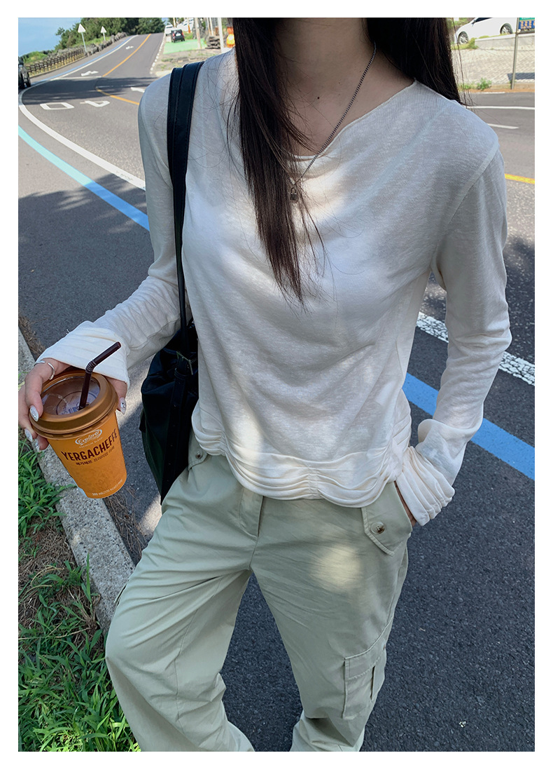 *o-ha-you*【FHZH1DC5030789】韓版慵懶秋季新褶皺氣質顯瘦百搭打底長袖上衣