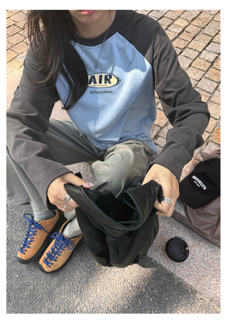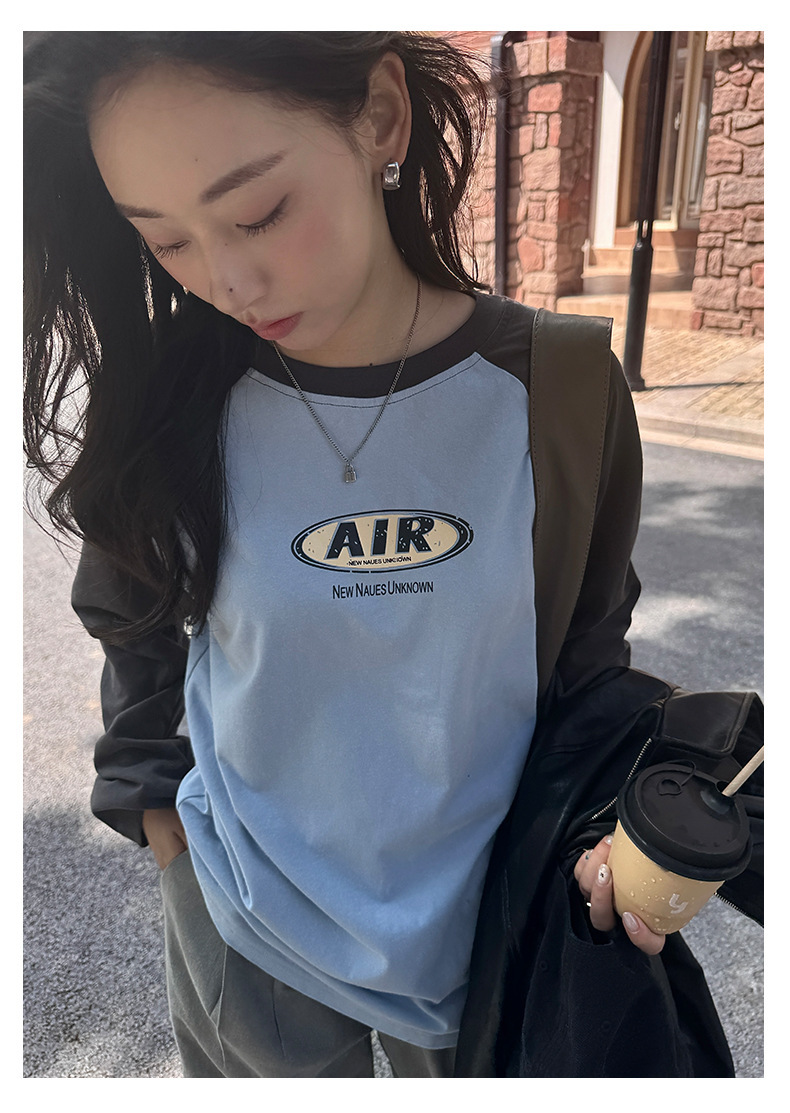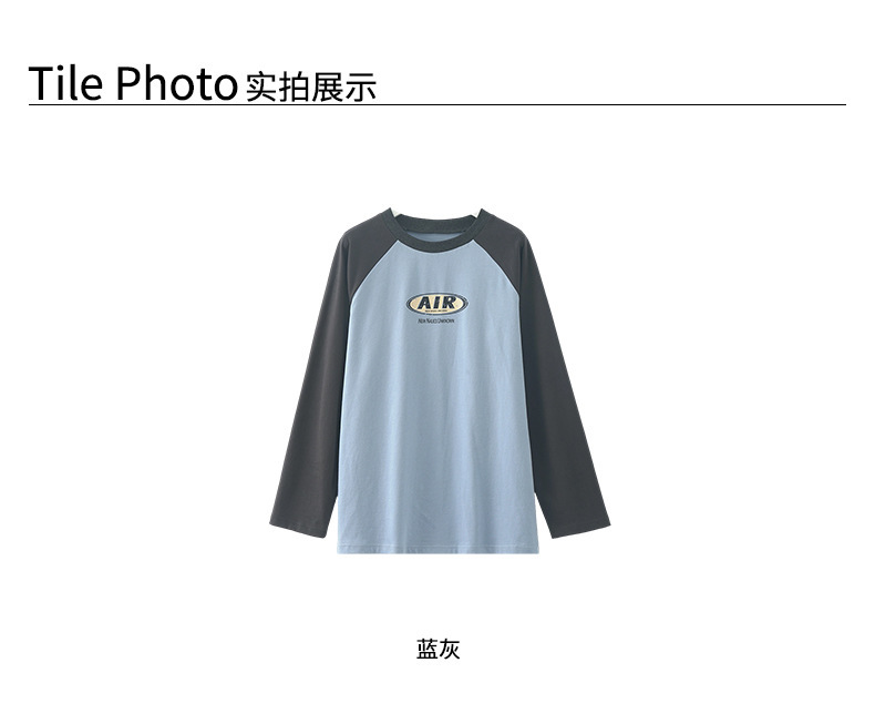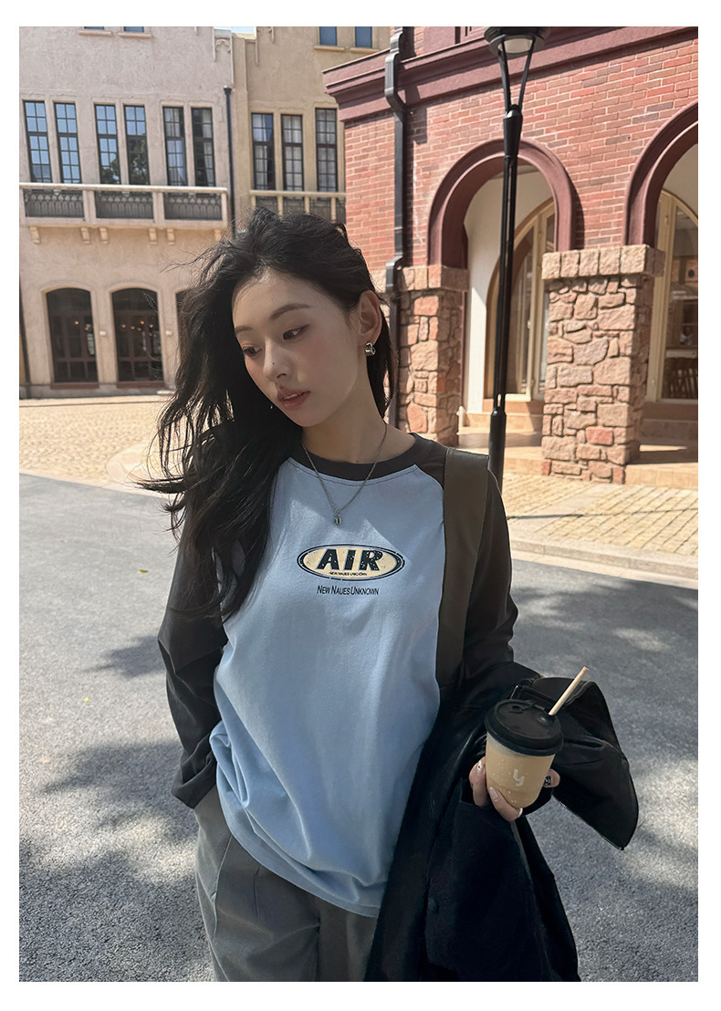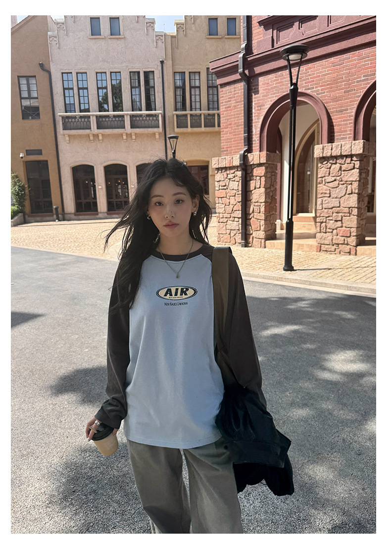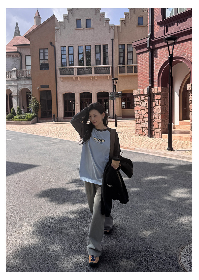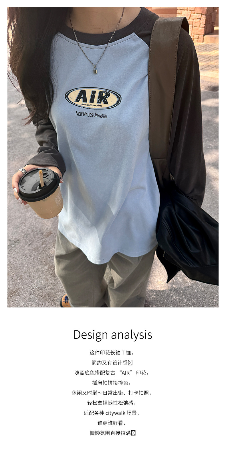 *o-ha-you*【FHZH1DC5030796】韓版早秋慵懶風拼色T恤衫寬鬆顯瘦百搭長袖上衣
