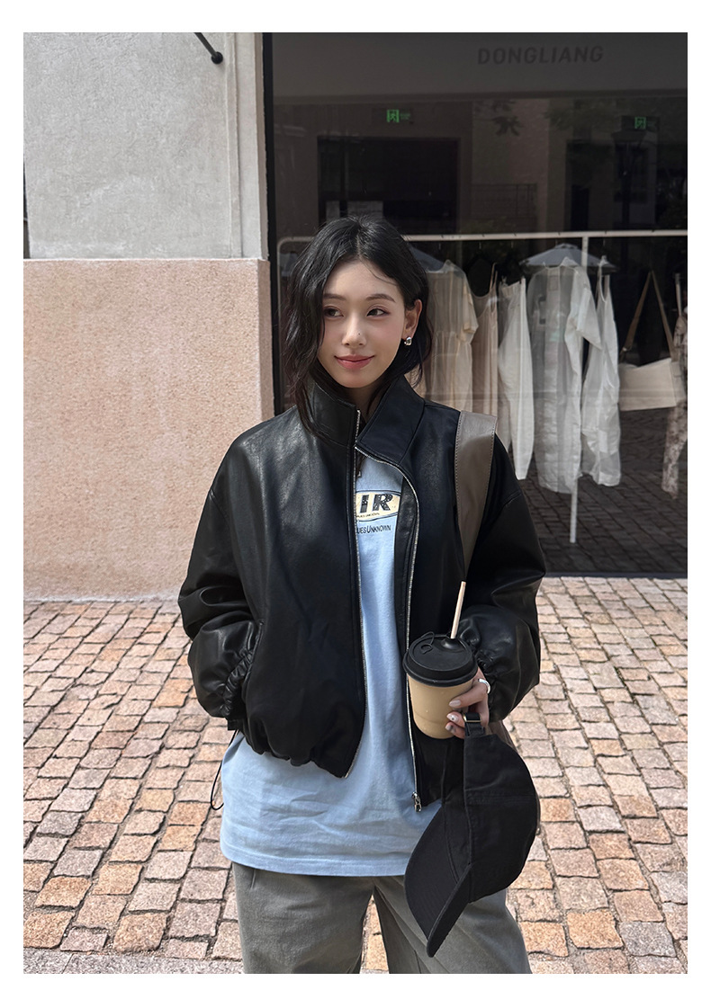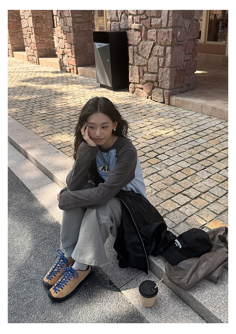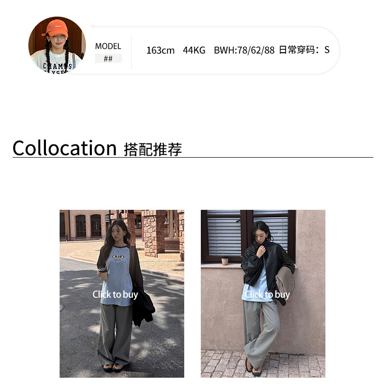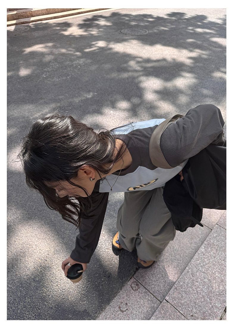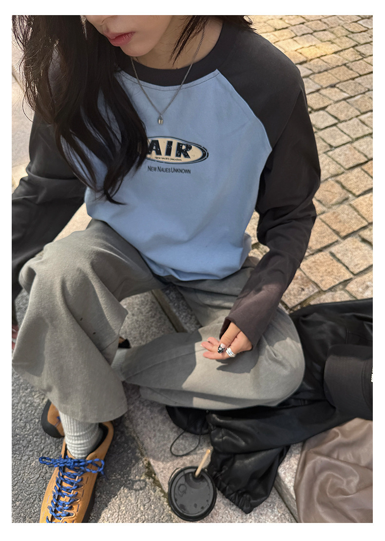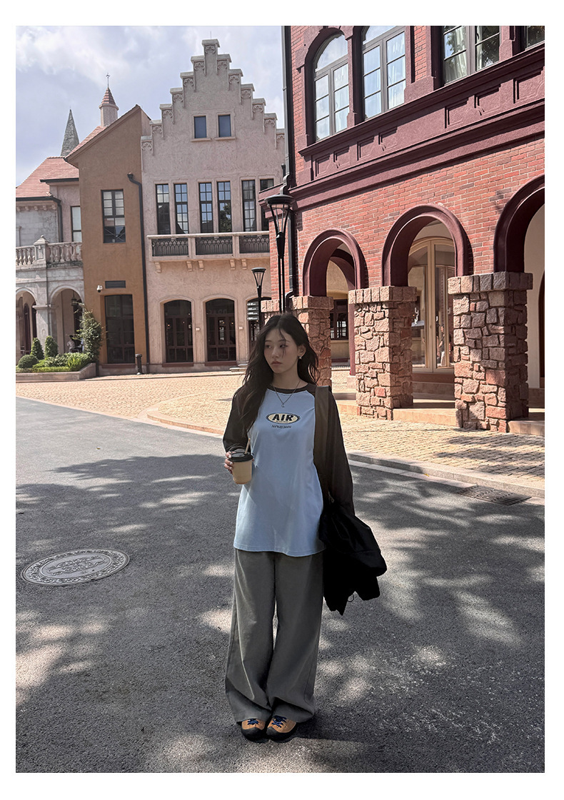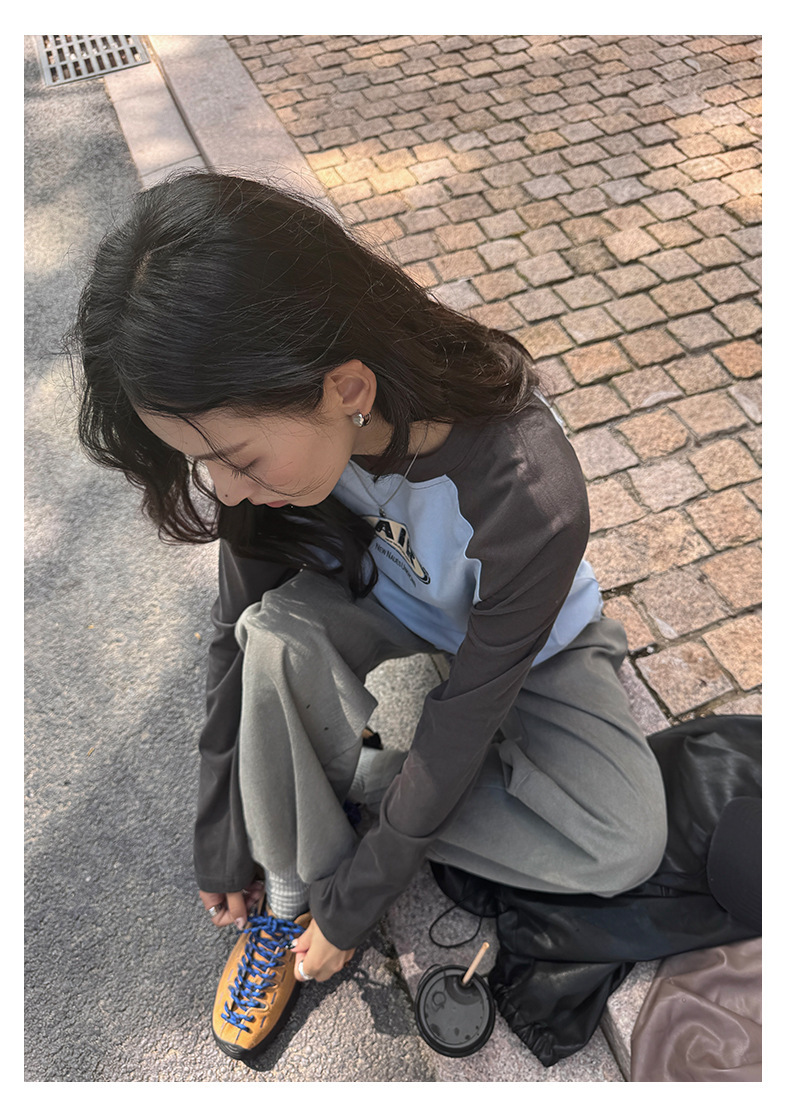 *o-ha-you*【FHZH1DC5030796】韓版早秋慵懶風拼色T恤衫寬鬆顯瘦百搭長袖上衣