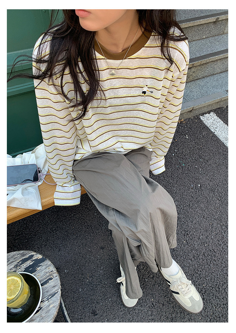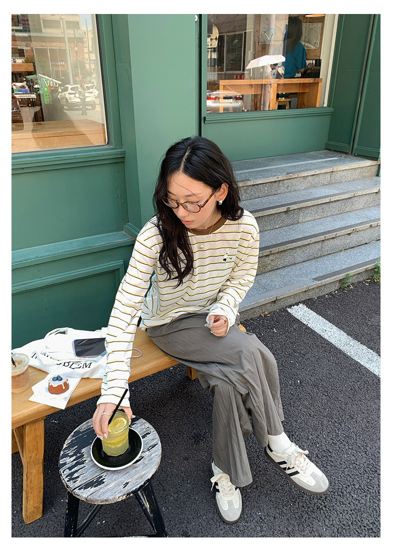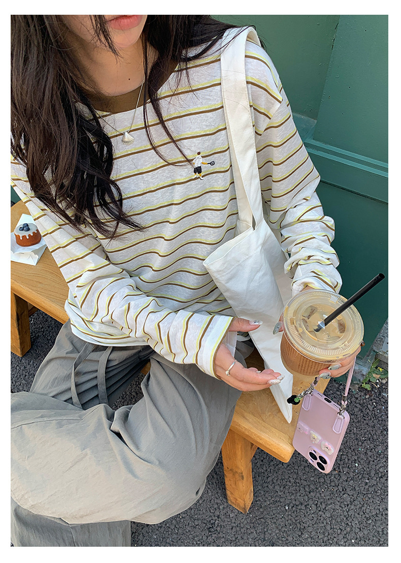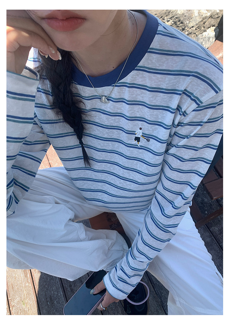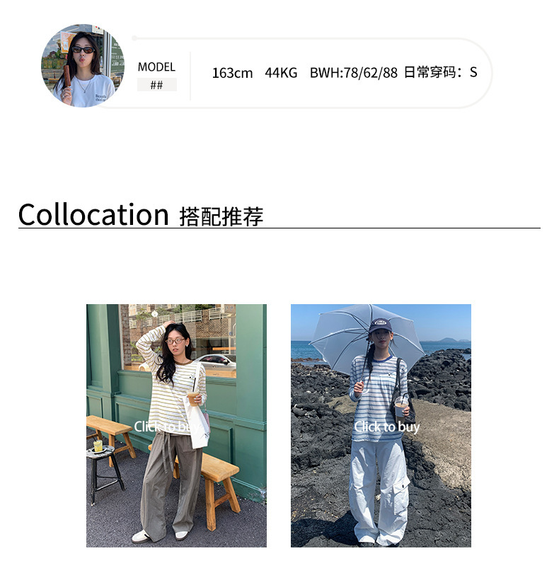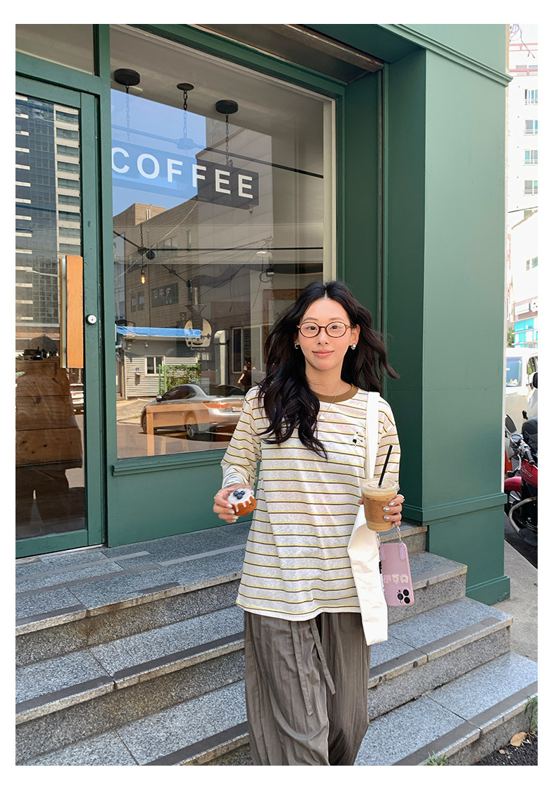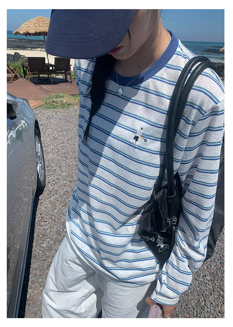 *o-ha-you*【FHZH1DC5030825】韓版秋裝撞色圓領條紋長袖T恤寬鬆薄防曬罩衫上衣-2色