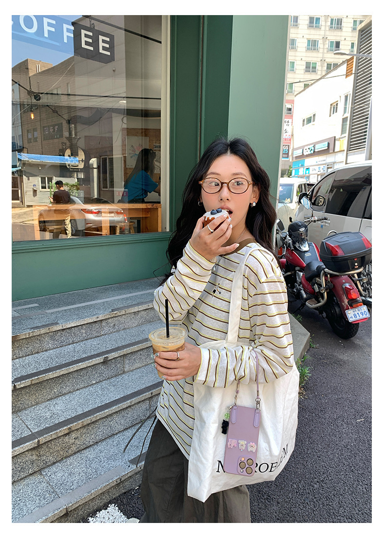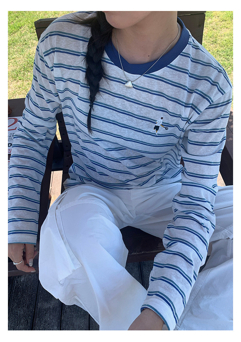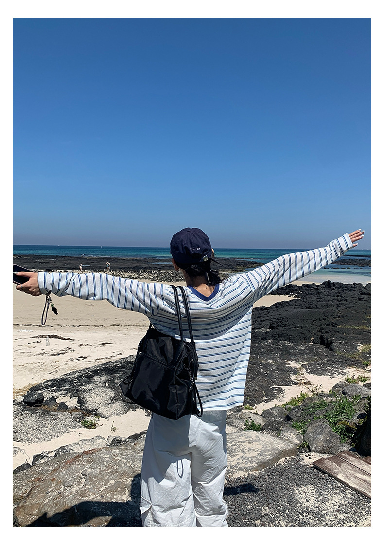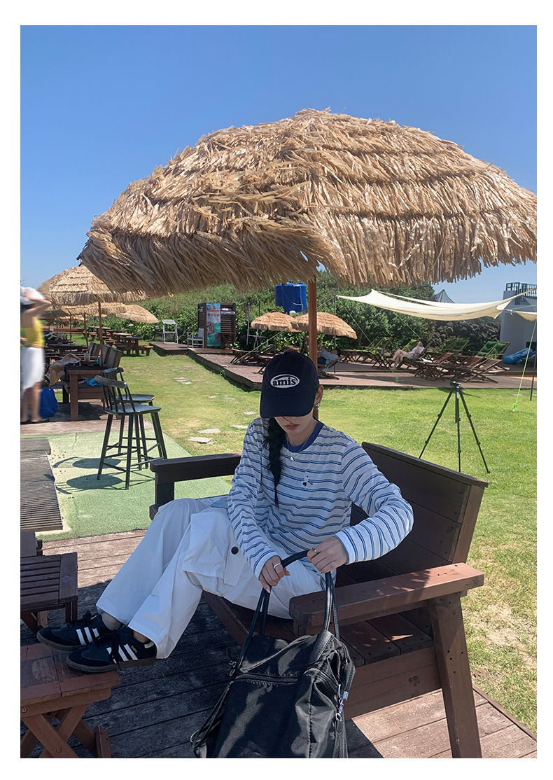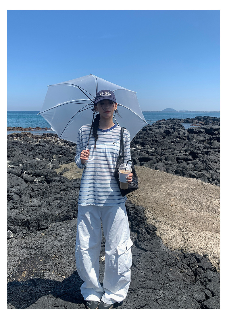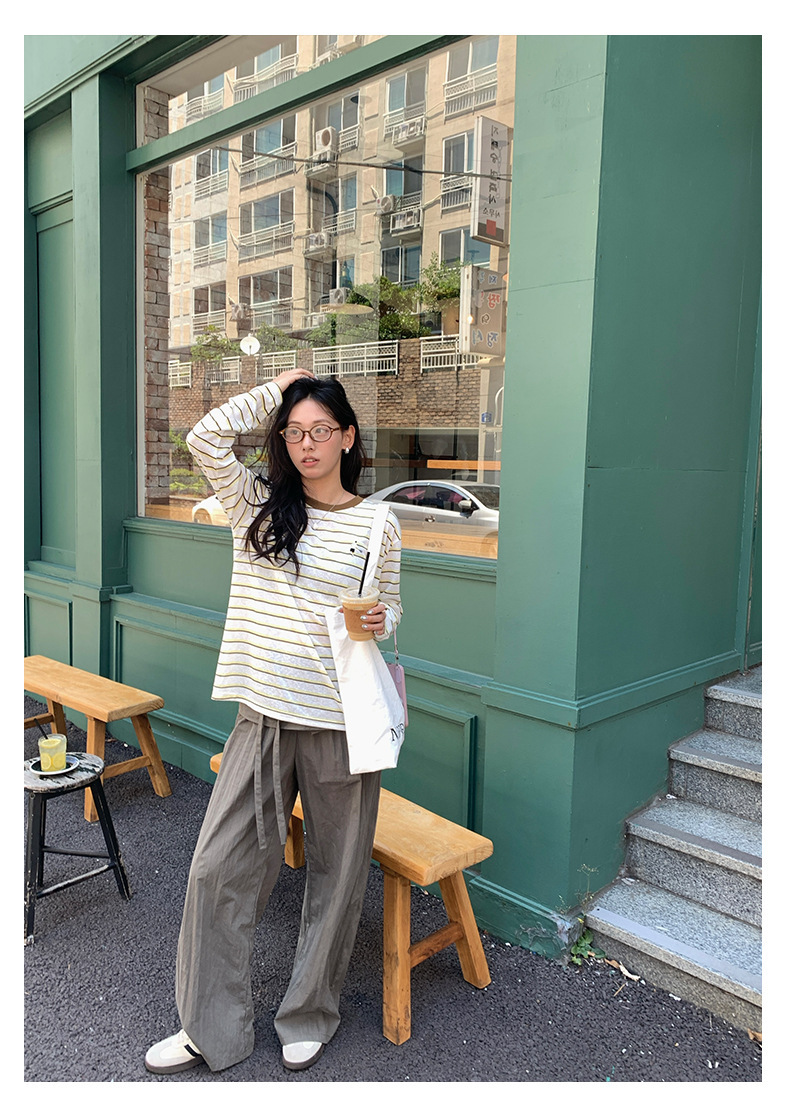 *o-ha-you*【FHZH1DC5030825】韓版秋裝撞色圓領條紋長袖T恤寬鬆薄防曬罩衫上衣-2色