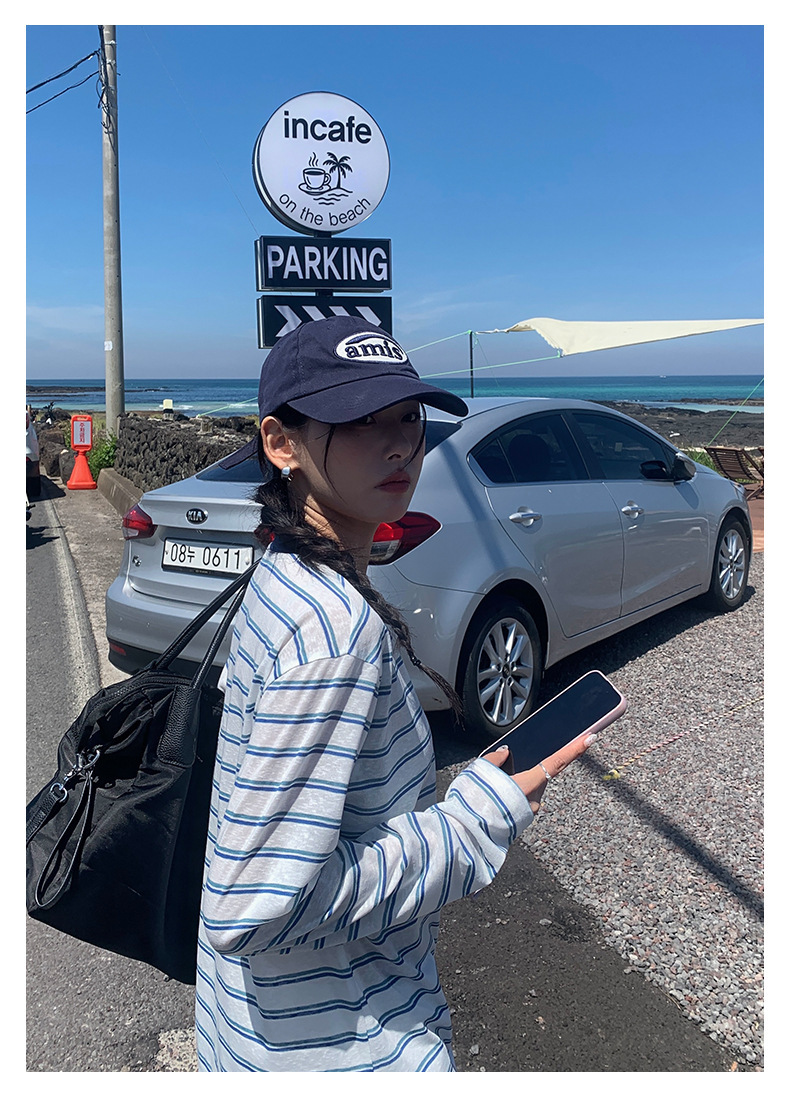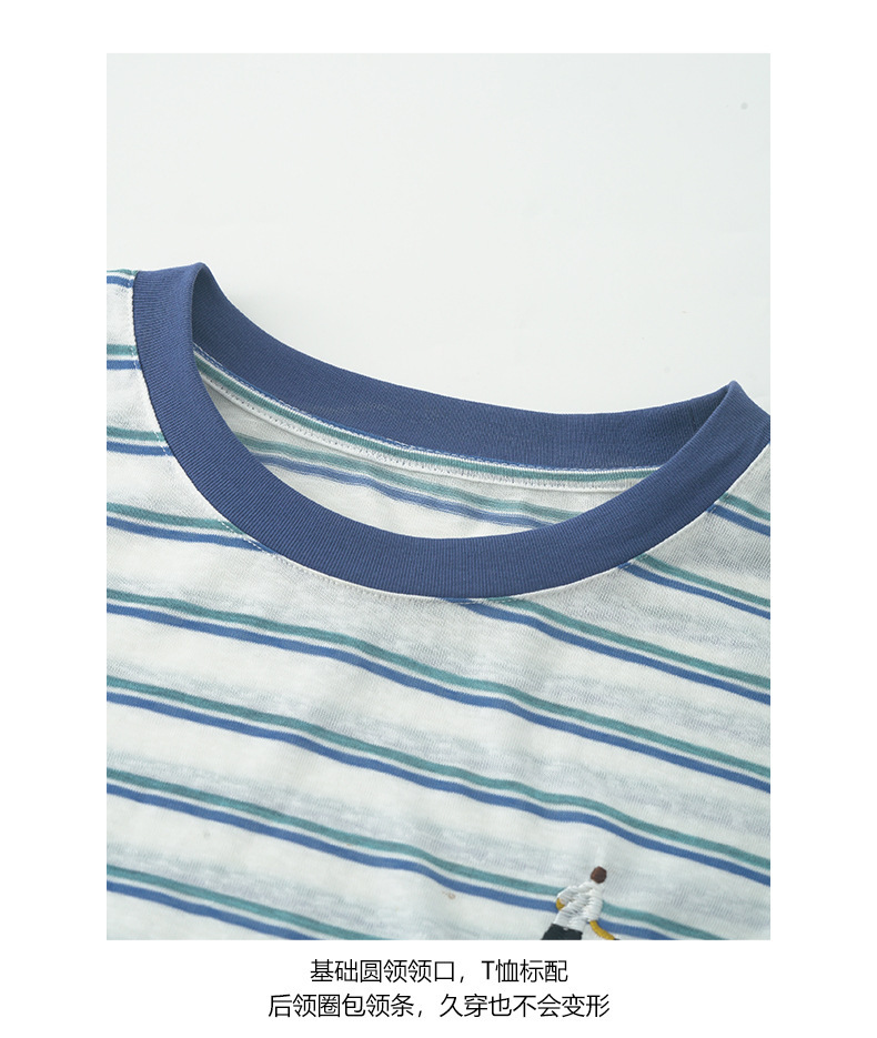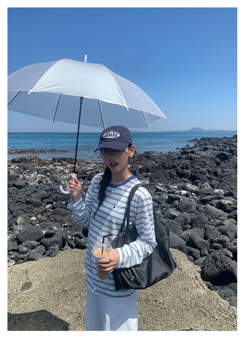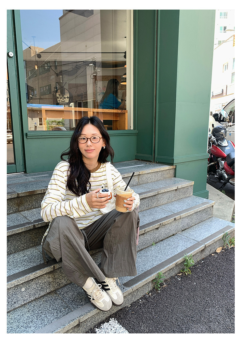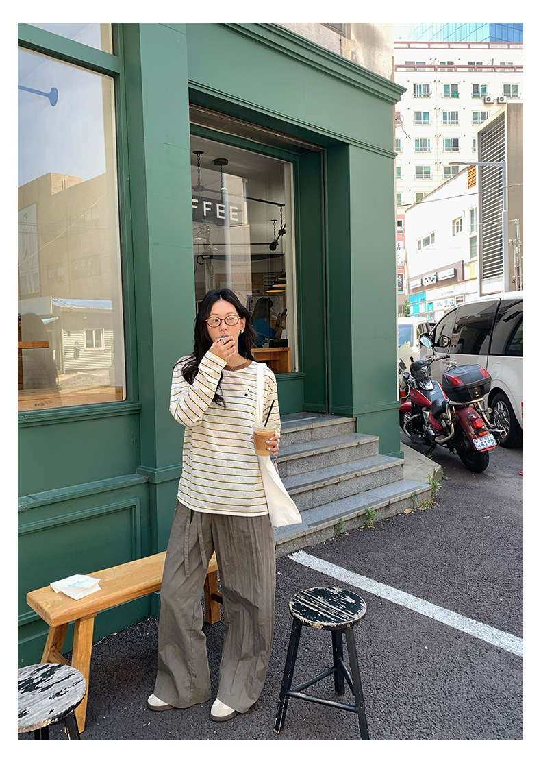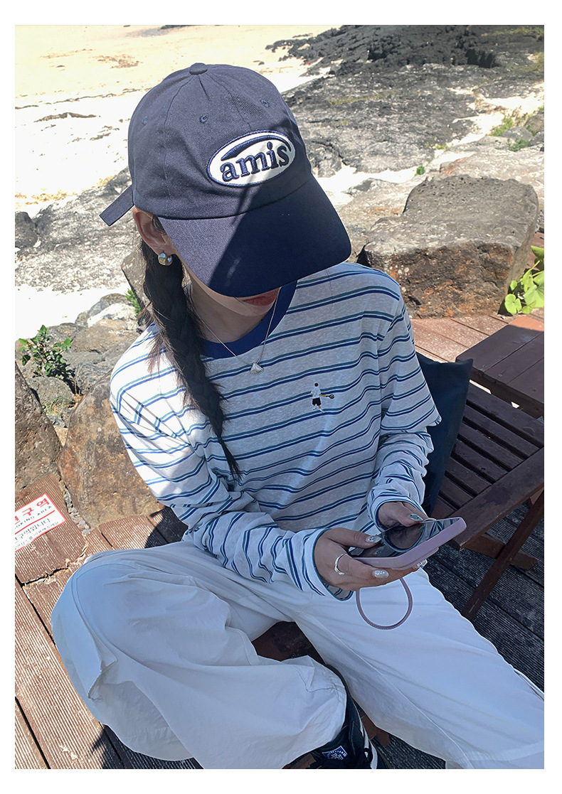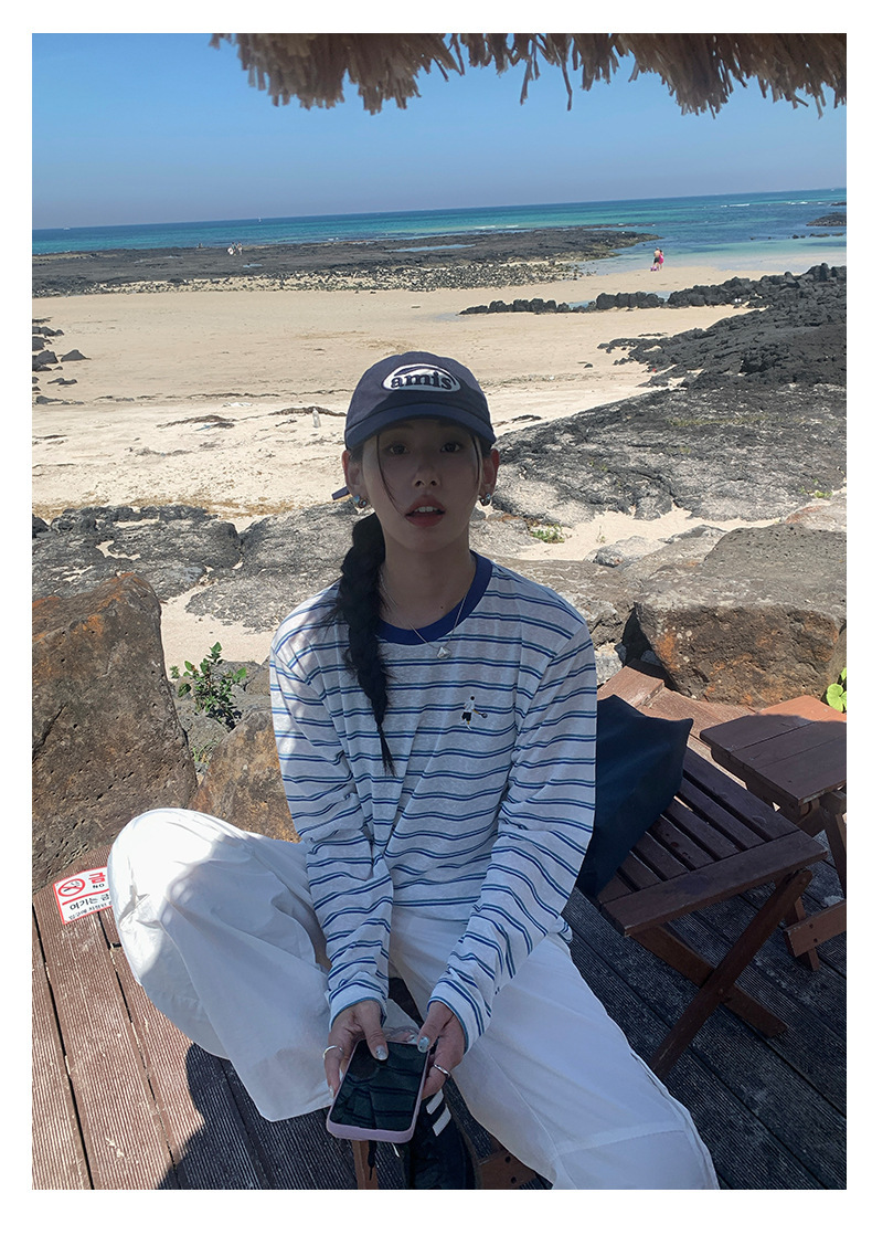 *o-ha-you*【FHZH1DC5030825】韓版秋裝撞色圓領條紋長袖T恤寬鬆薄防曬罩衫上衣-2色