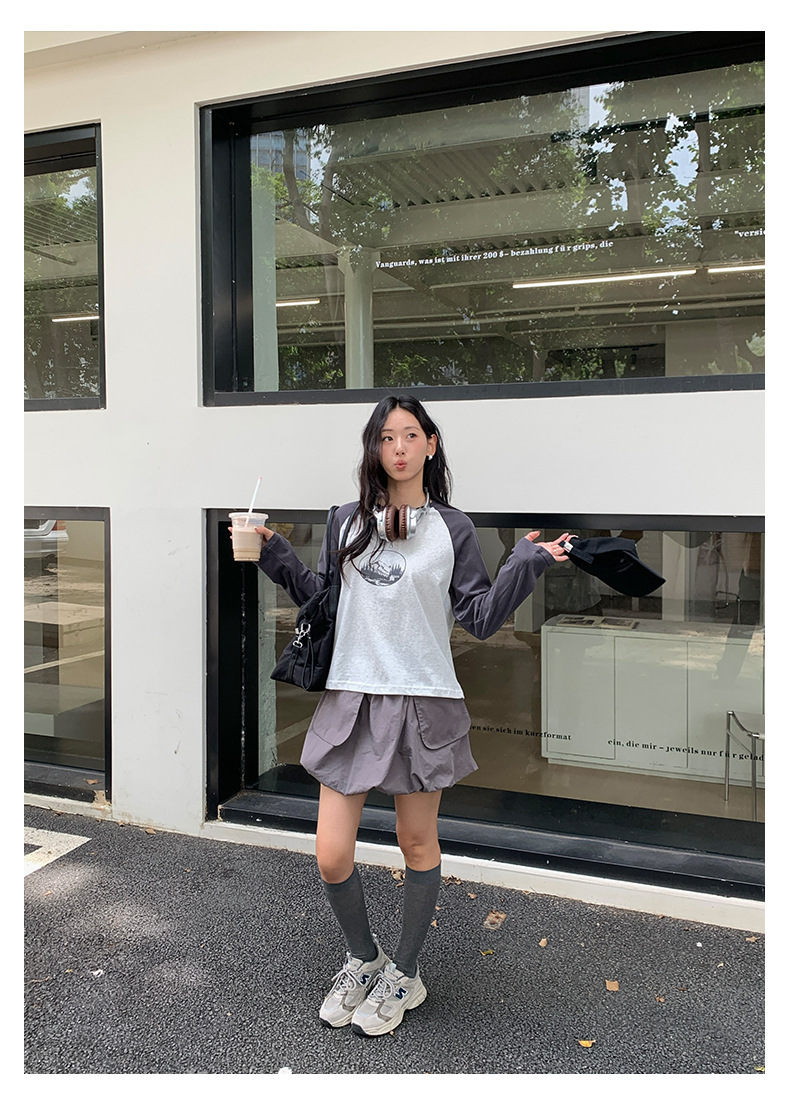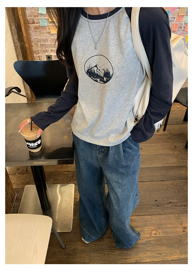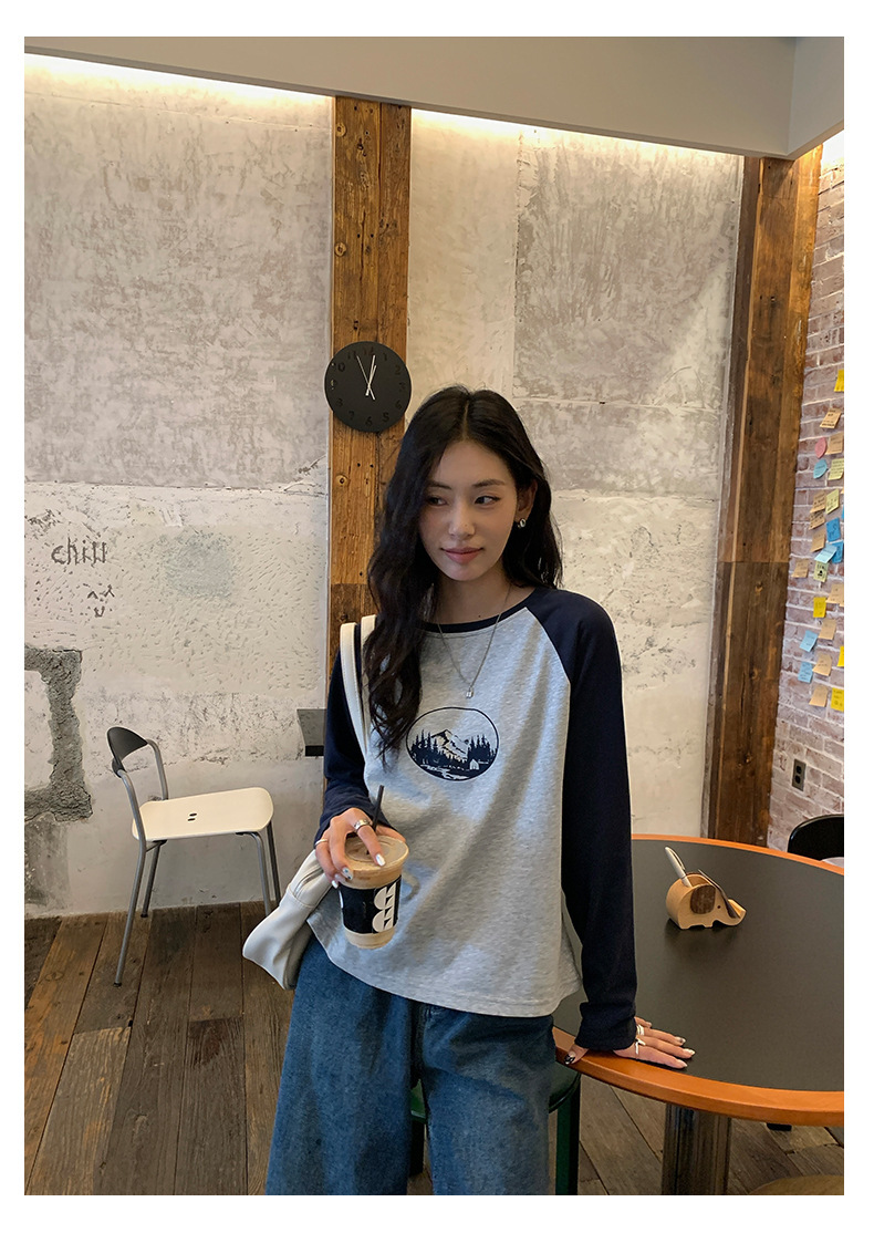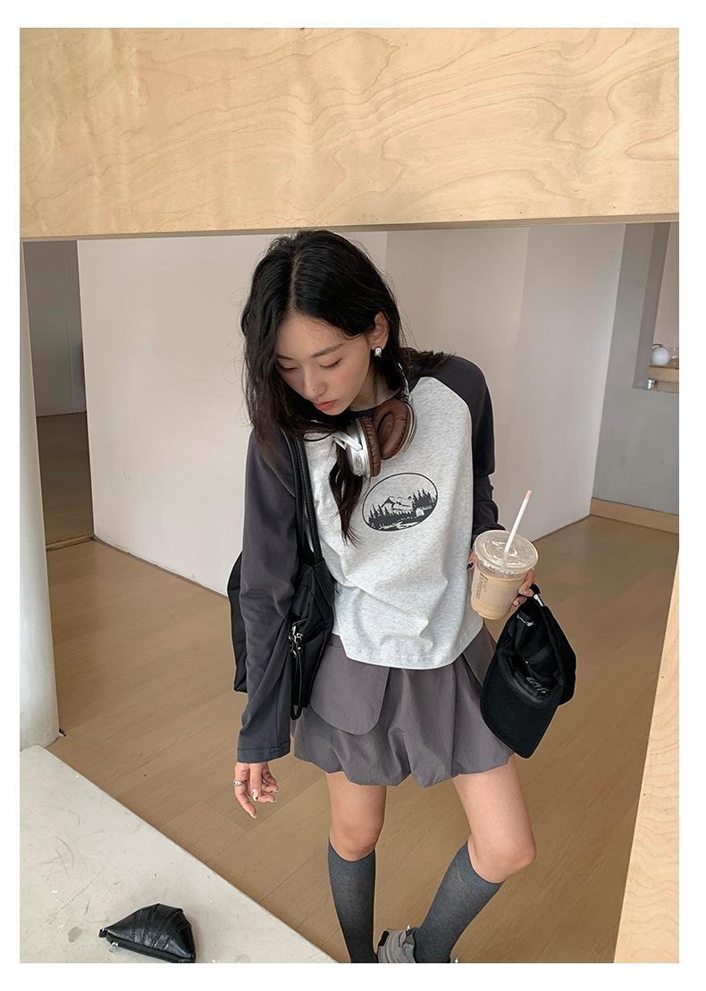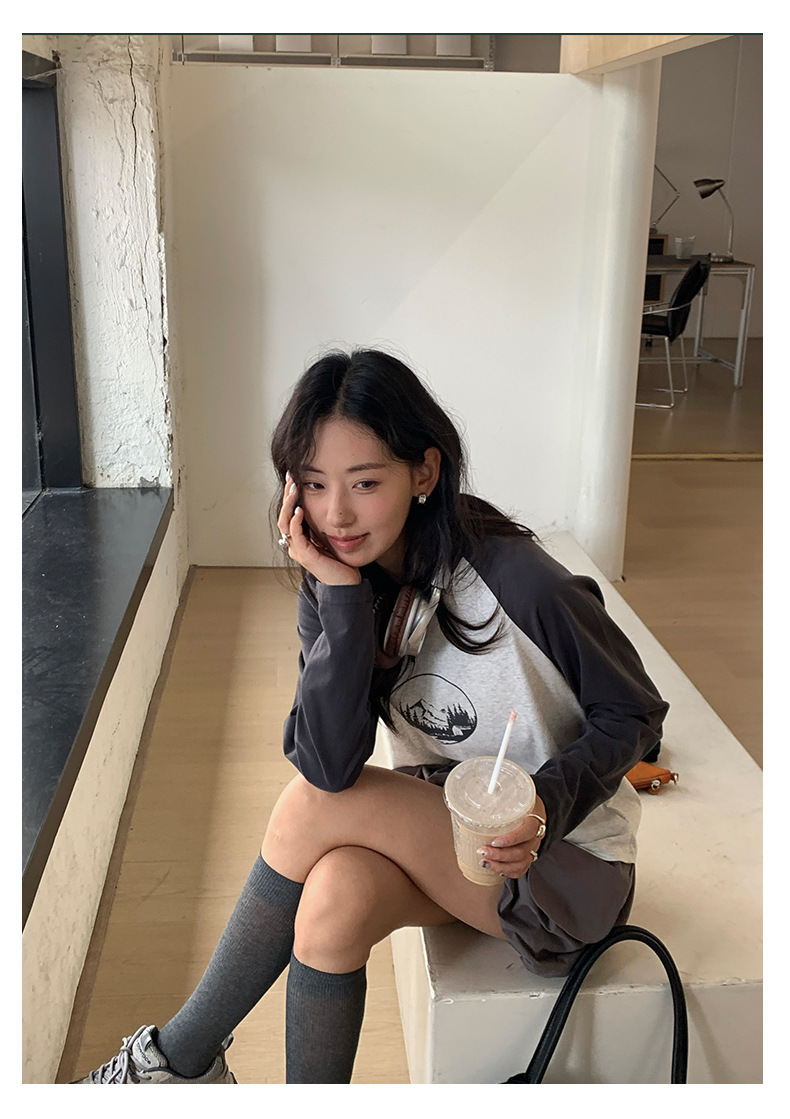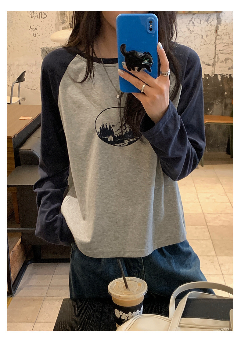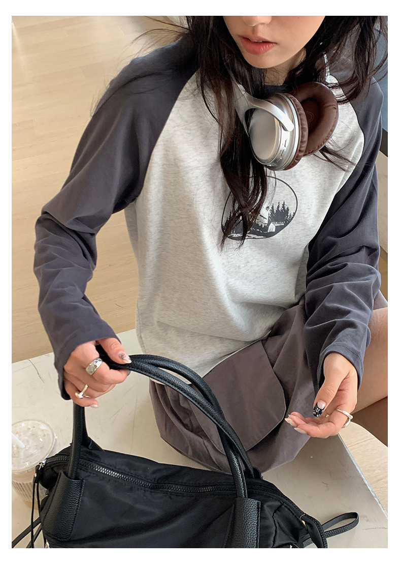 *o-ha-you*【FHZH1DC5030901】秋季創意圓形印花長袖T恤韓版寬鬆插肩袖休閒上衣-2色