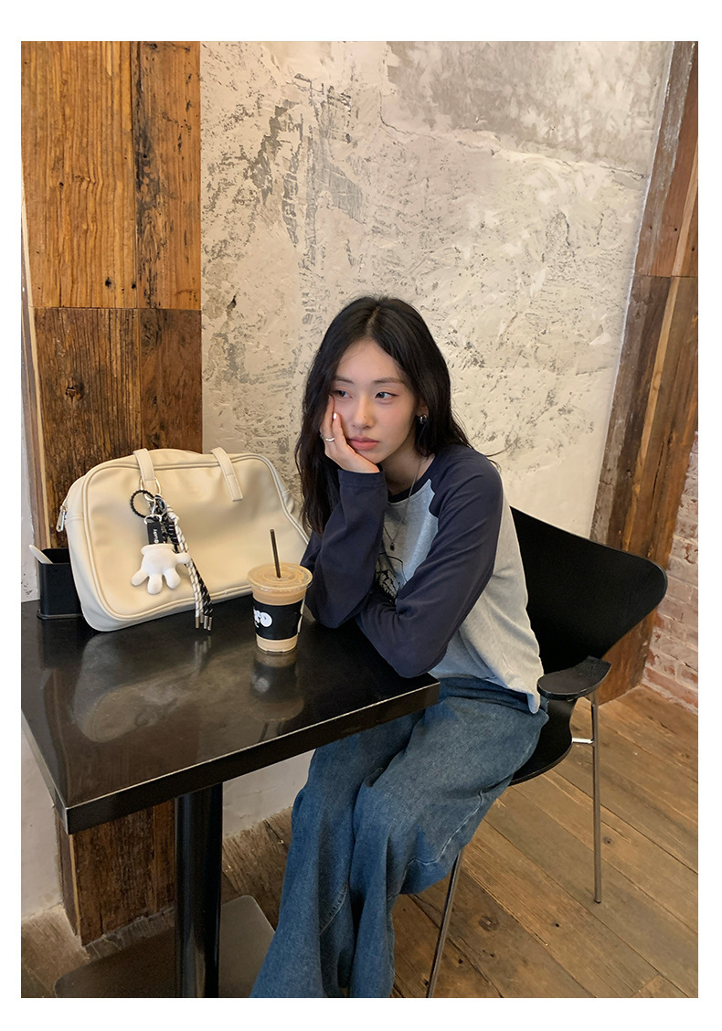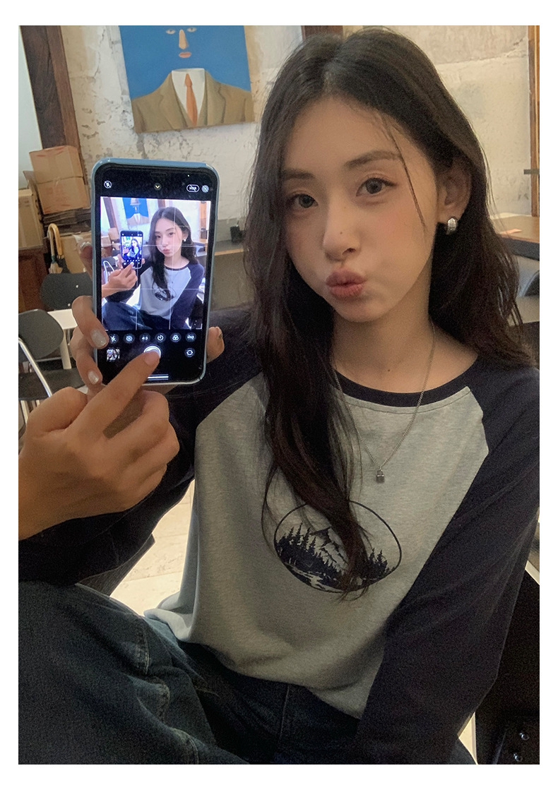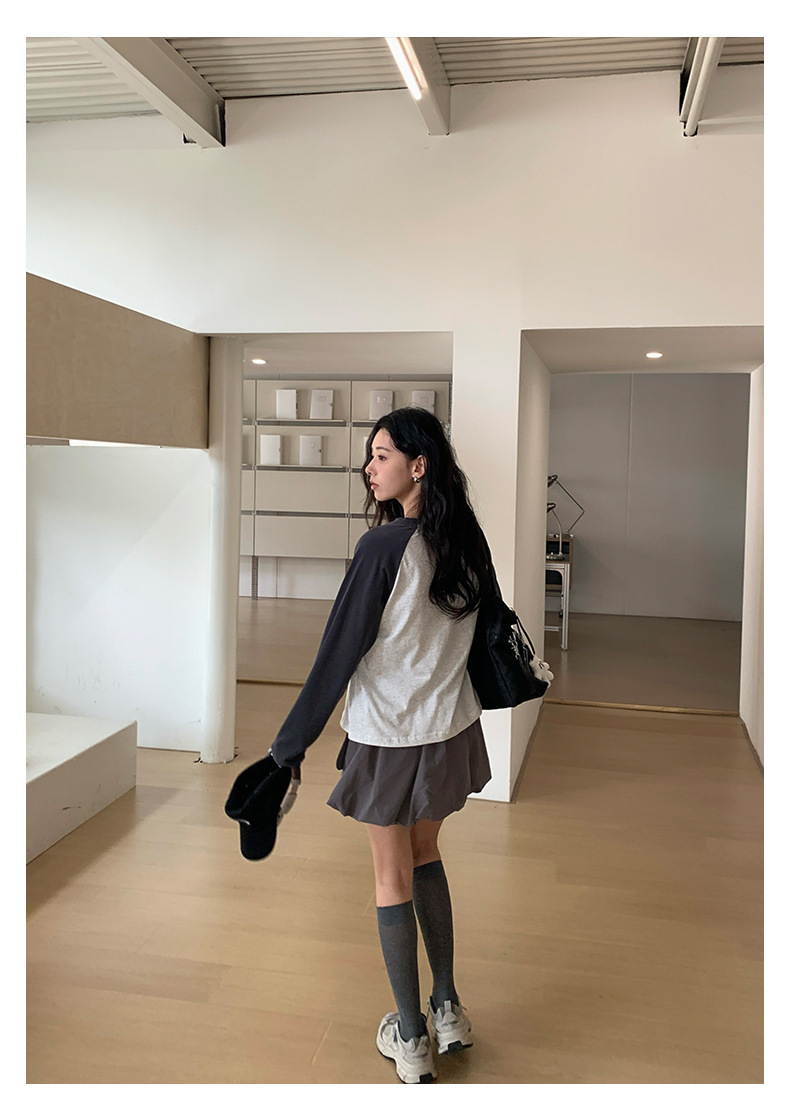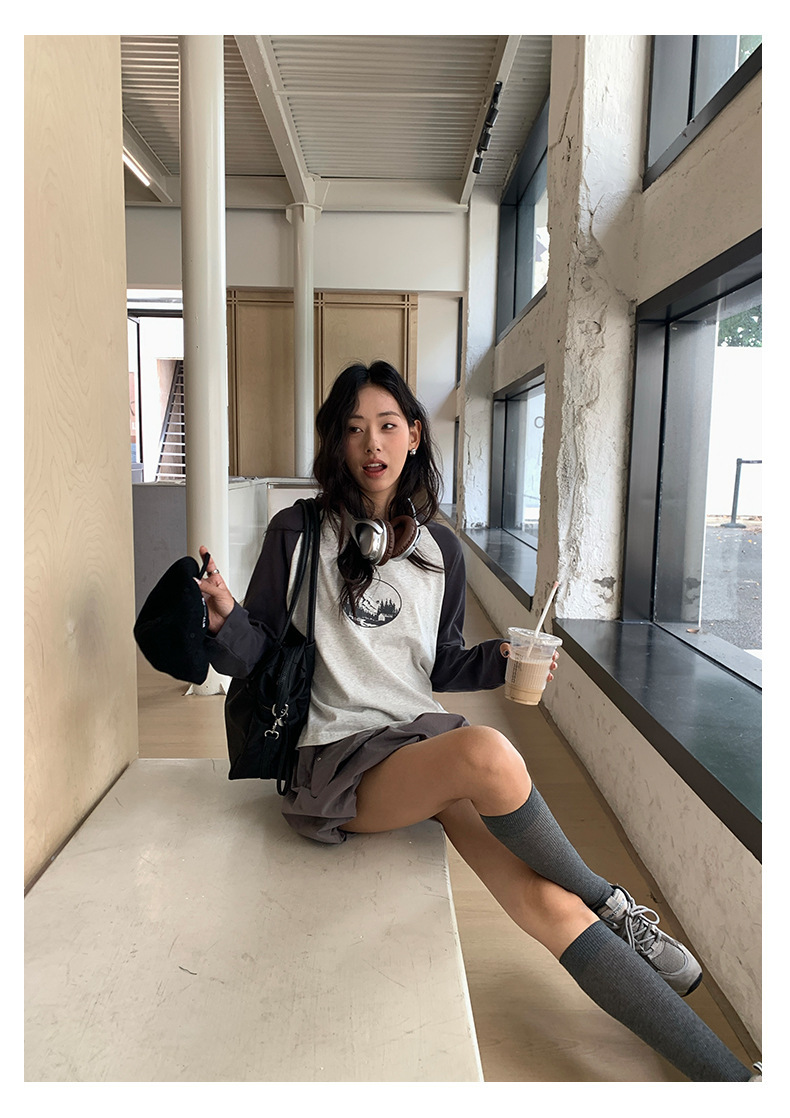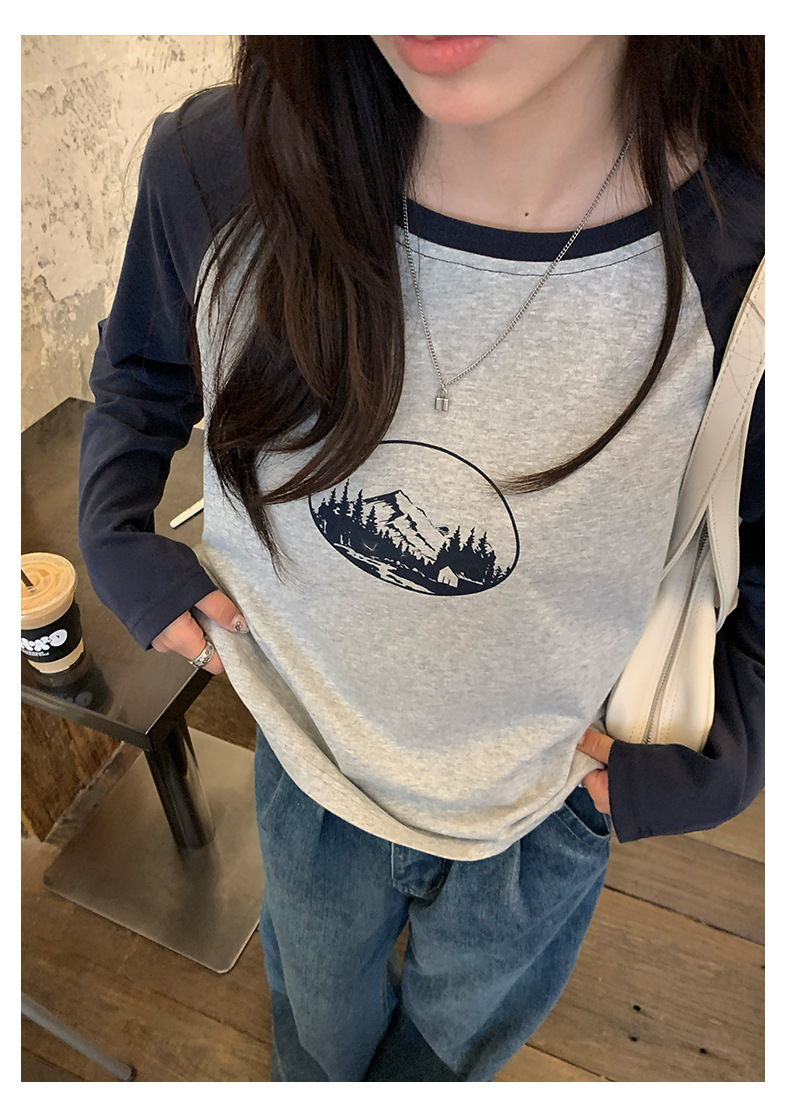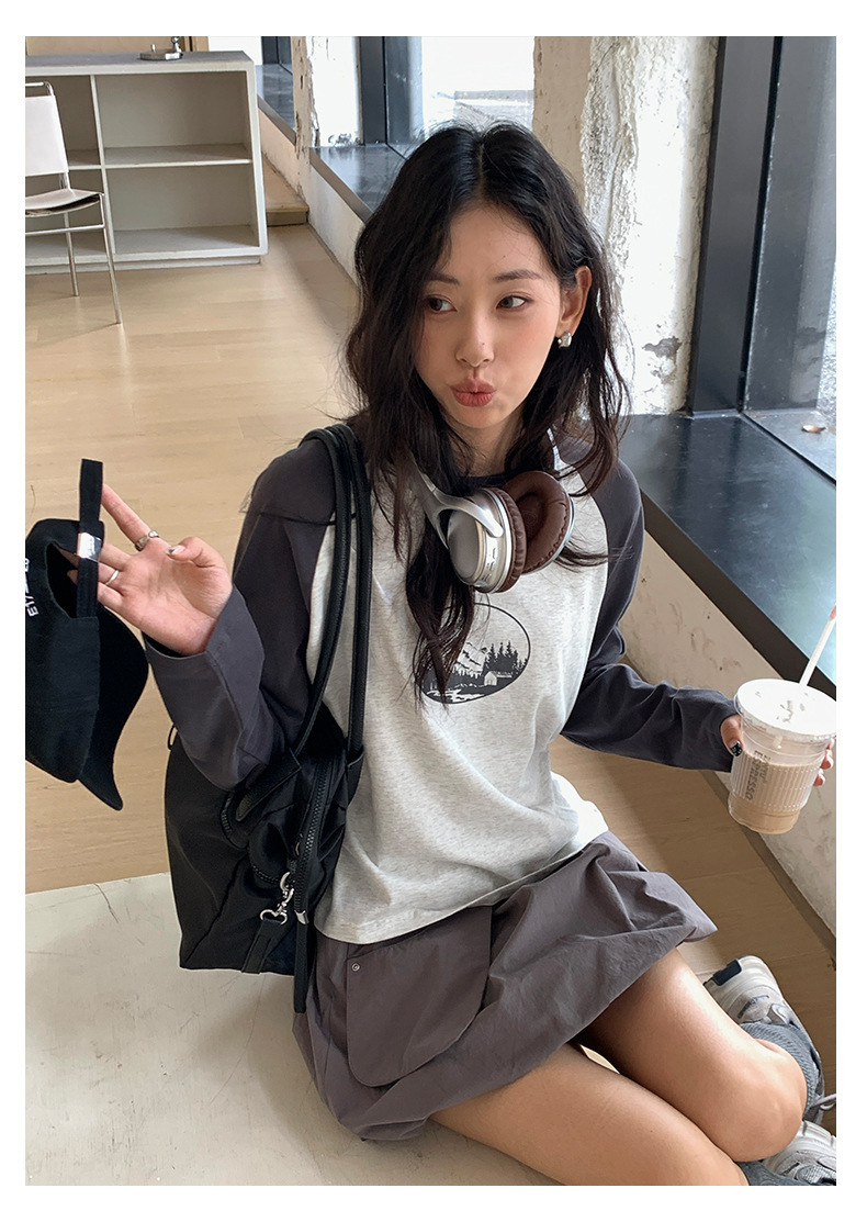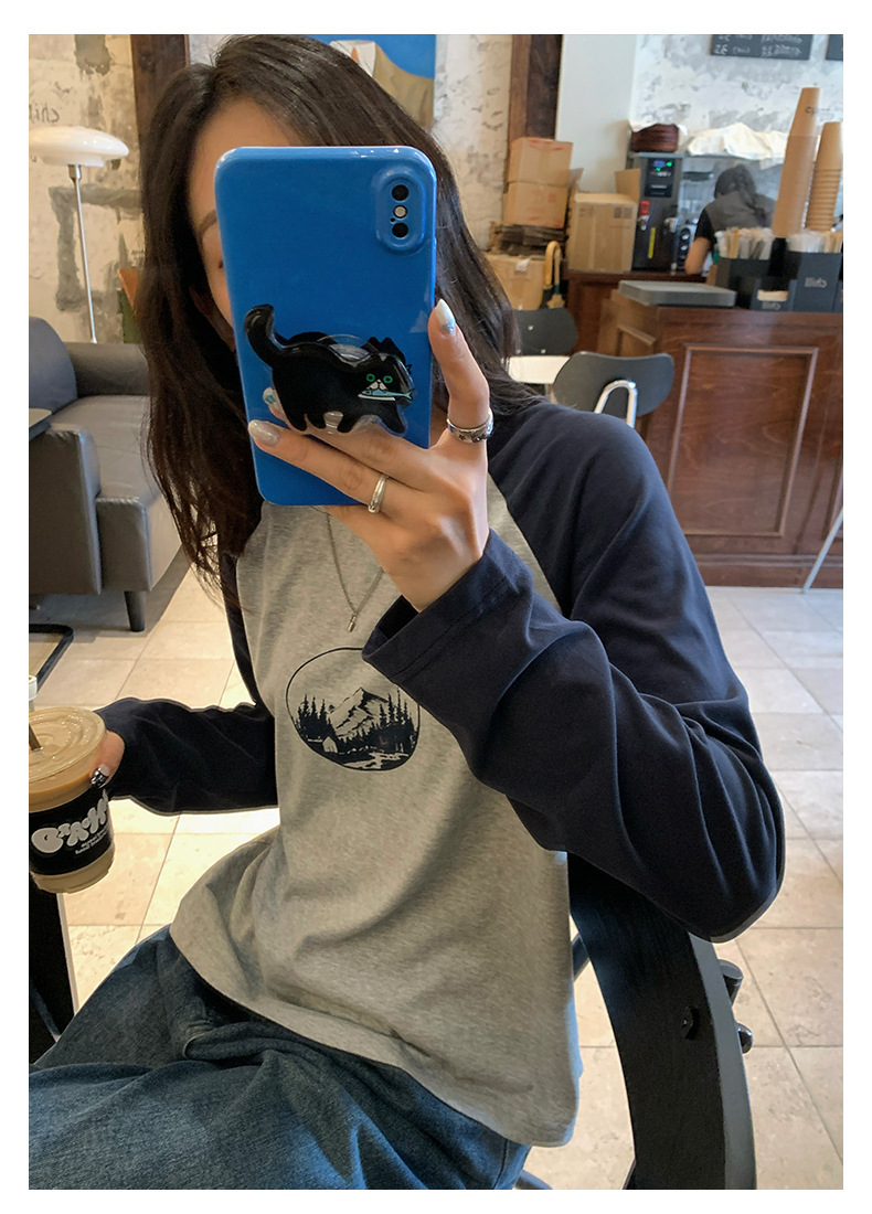 *o-ha-you*【FHZH1DC5030901】秋季創意圓形印花長袖T恤韓版寬鬆插肩袖休閒上衣-2色