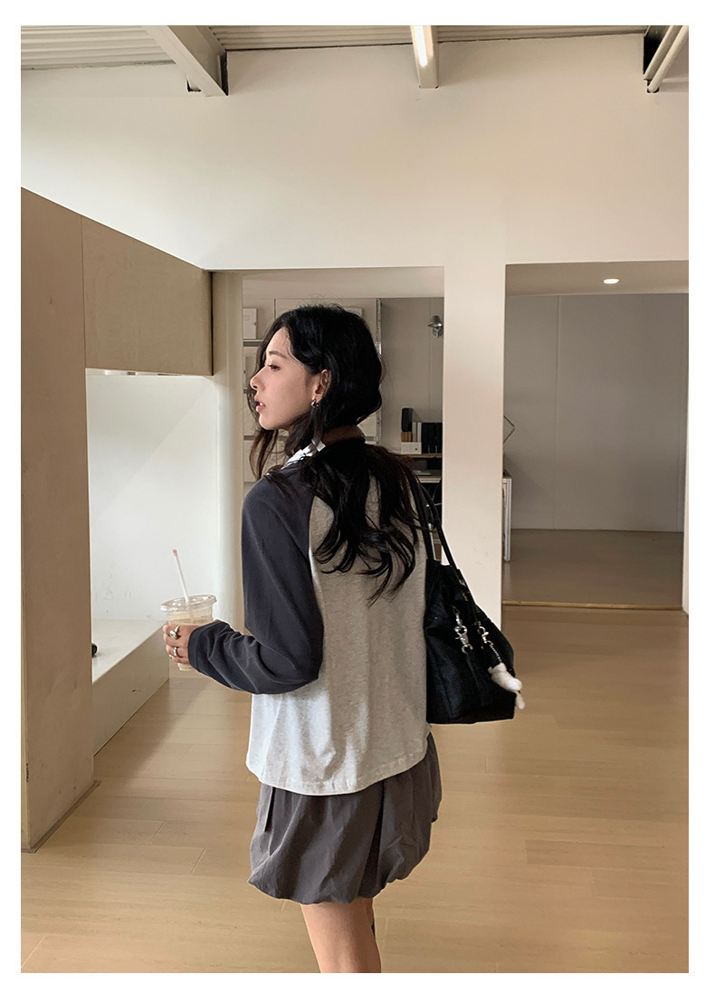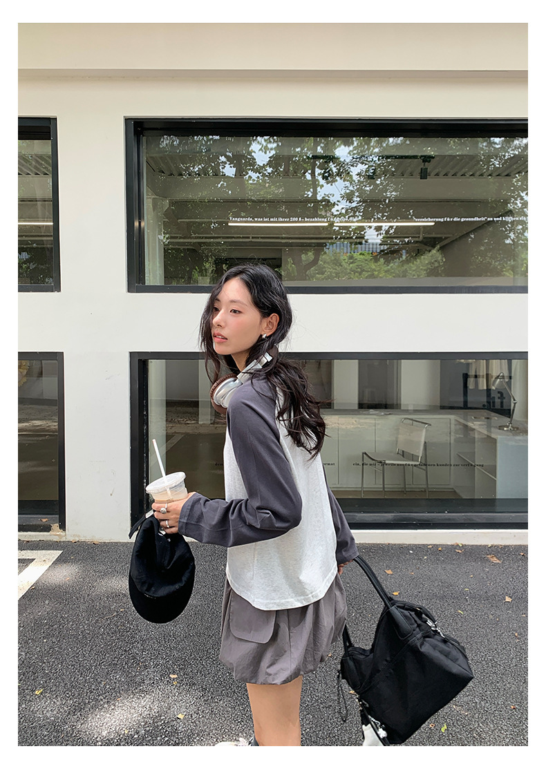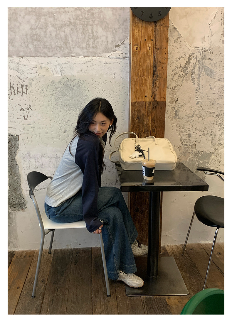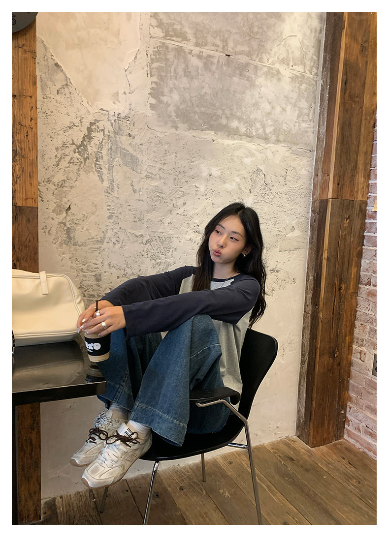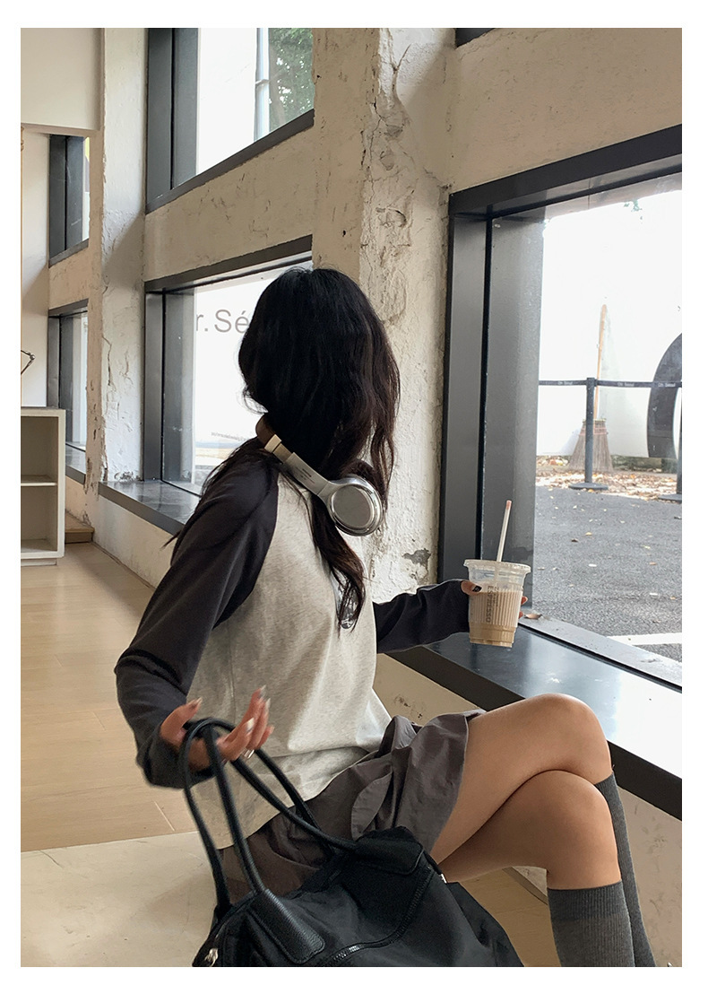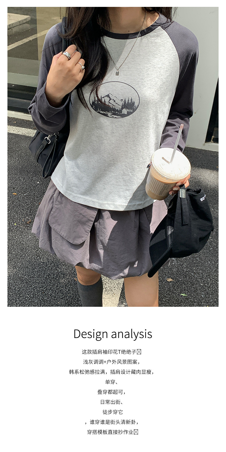 *o-ha-you*【FHZH1DC5030901】秋季創意圓形印花長袖T恤韓版寬鬆插肩袖休閒上衣-2色