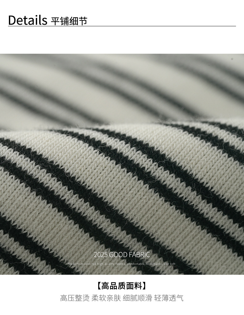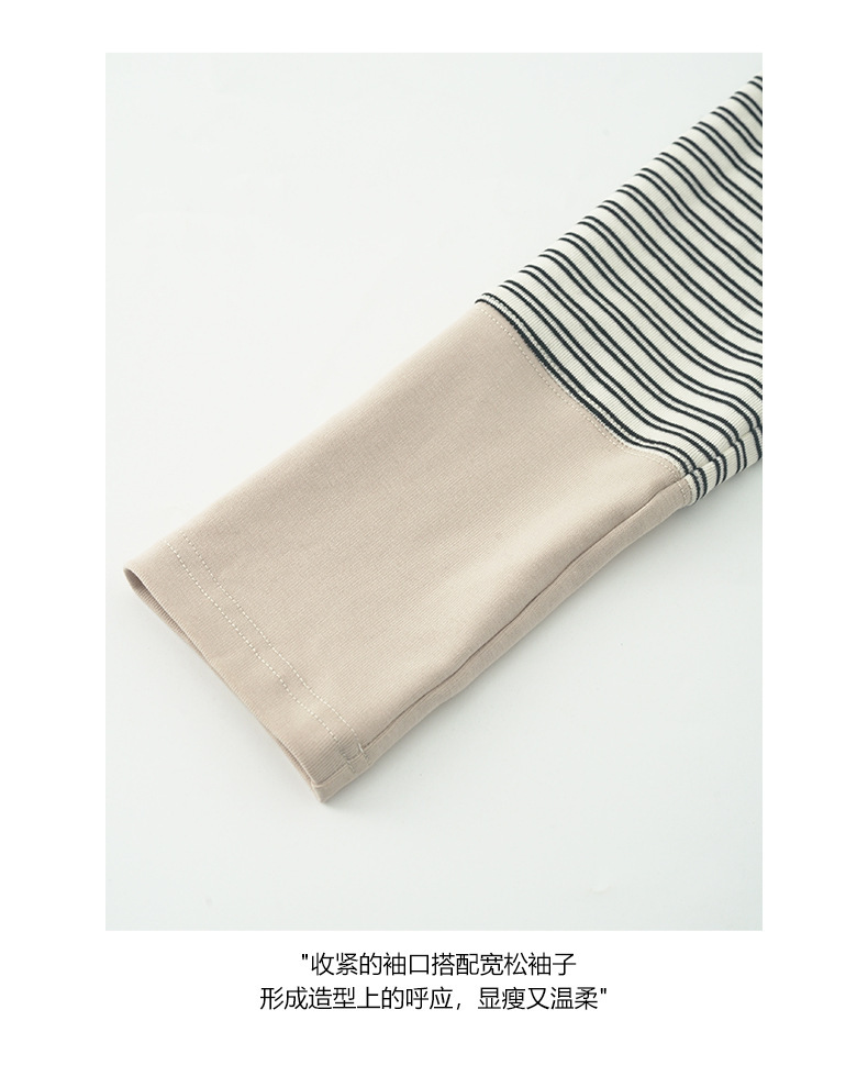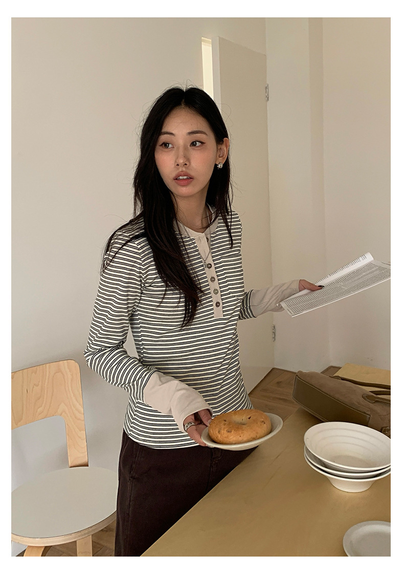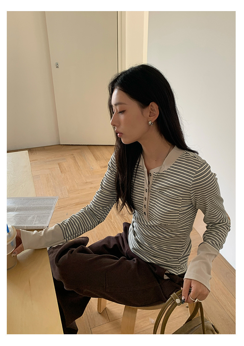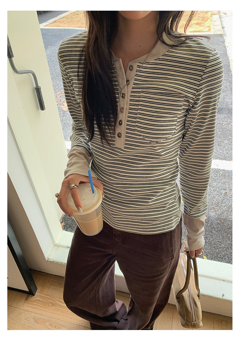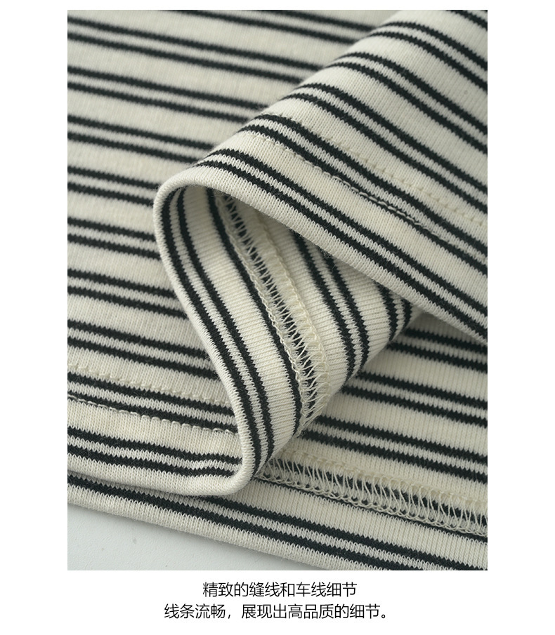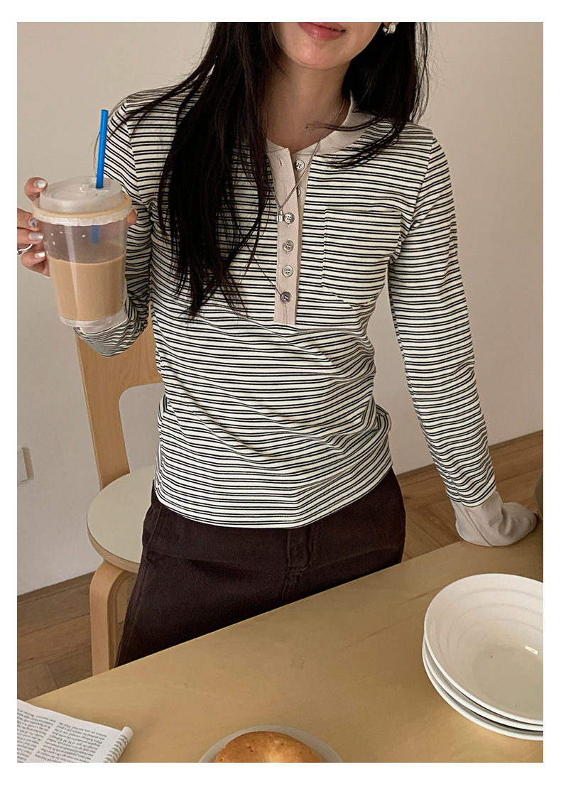 *o-ha-you*【FHZH1DC5030934】半開襟條紋圓領打底衫秋季新款韓版修身顯瘦長袖T恤