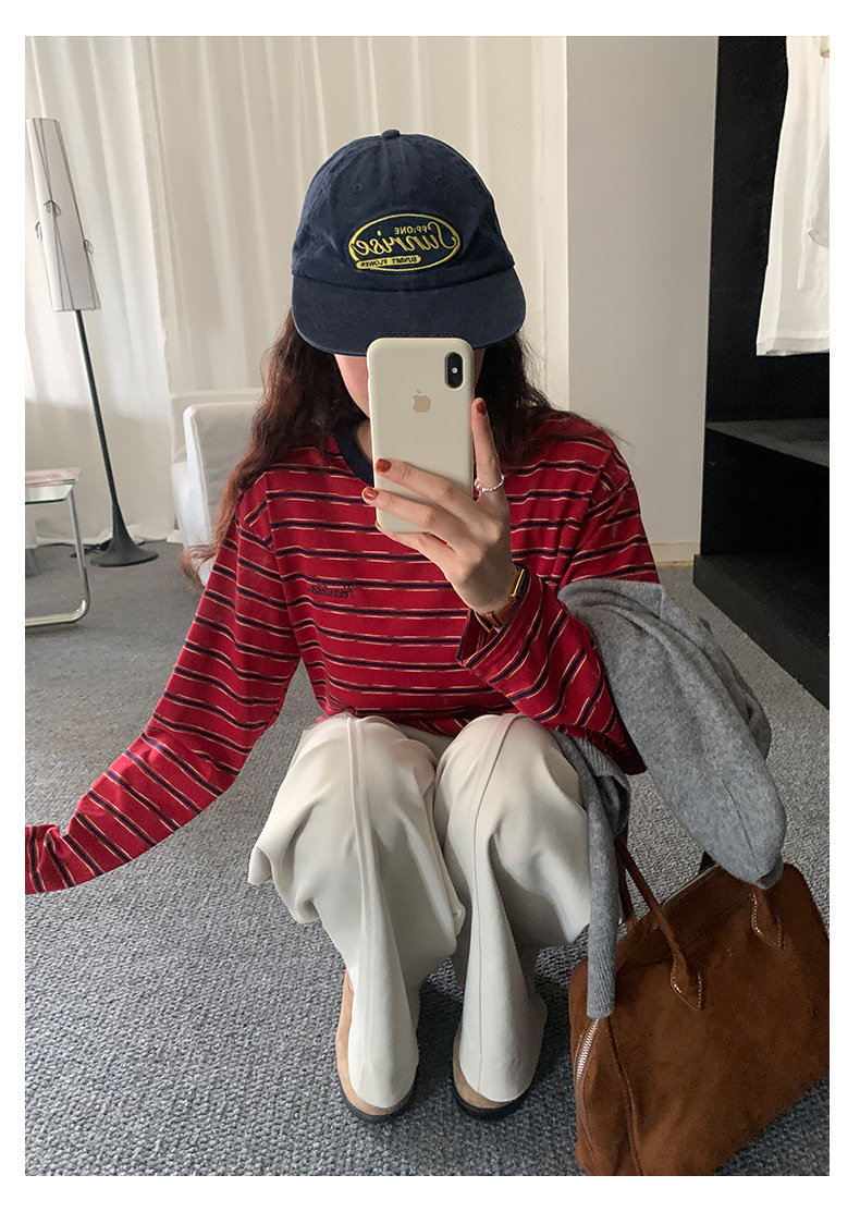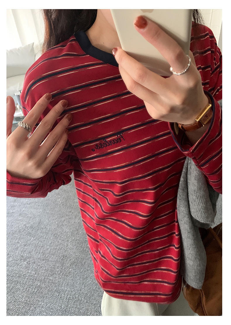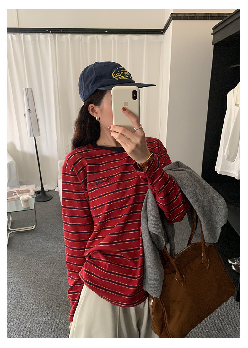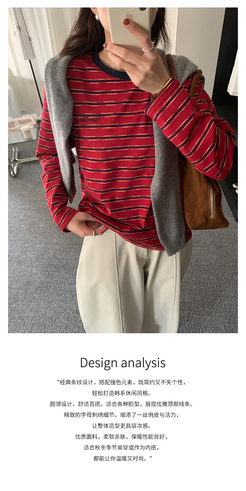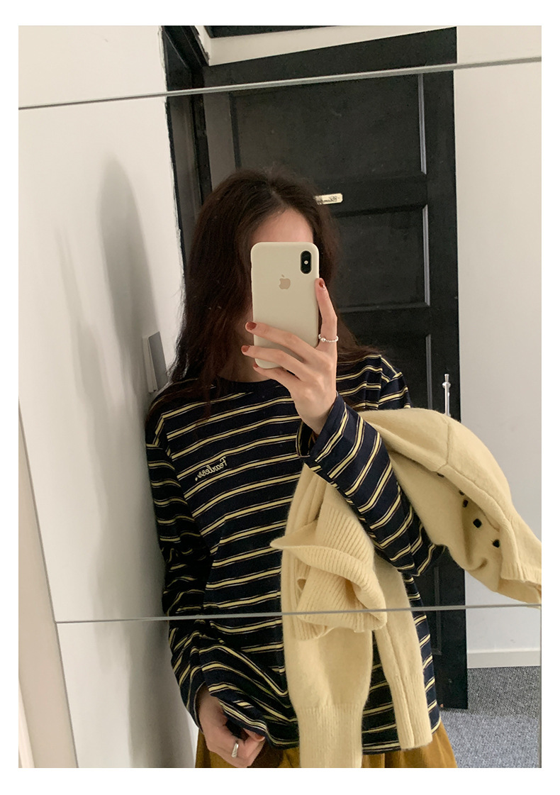 *o-ha-you*【FHZH1DC5041016】韓系字母刺繡條紋長袖T恤秋冬新款撞色圓領打底上衣-2色