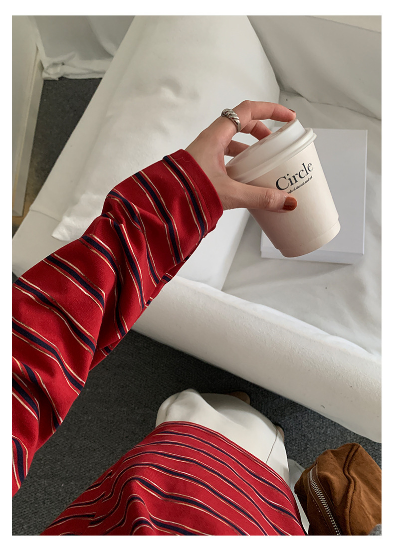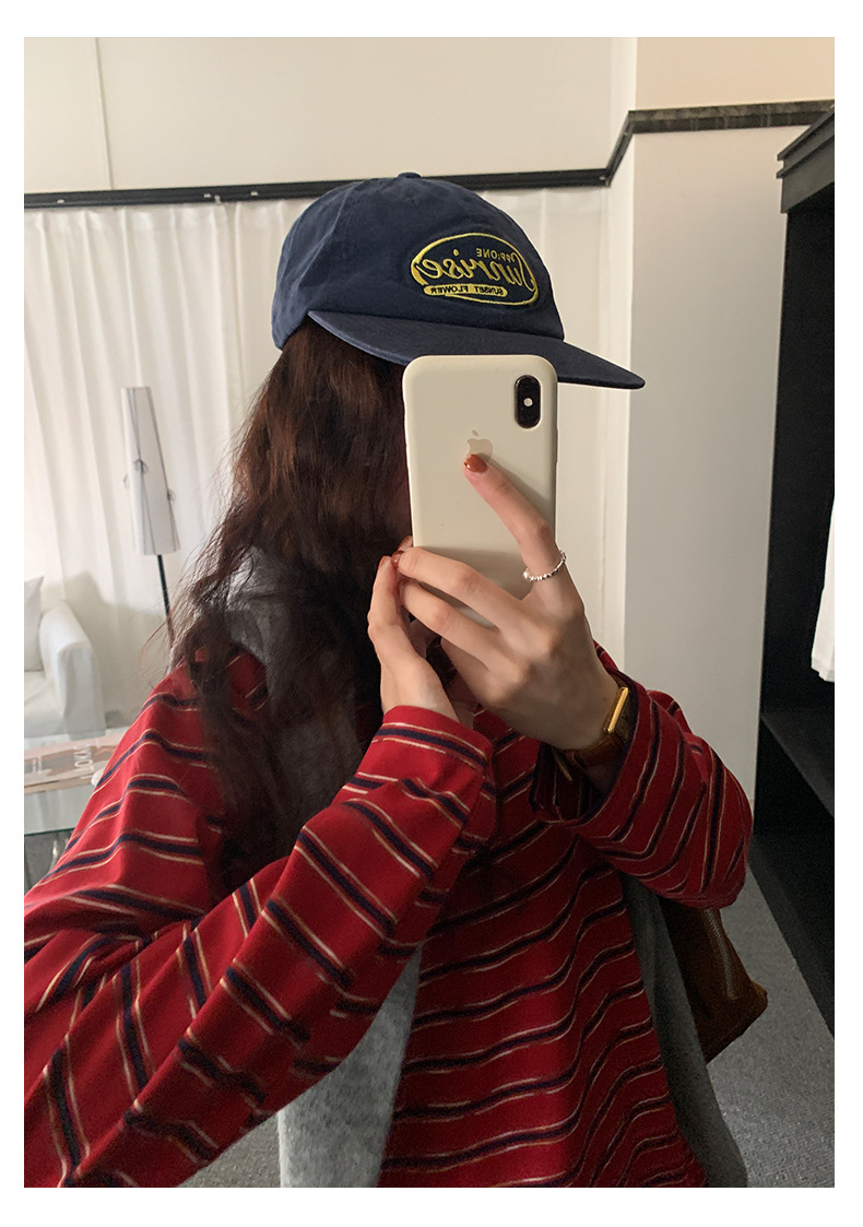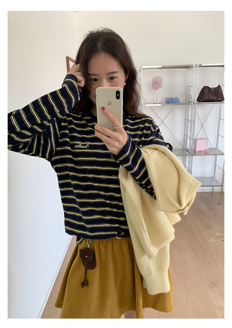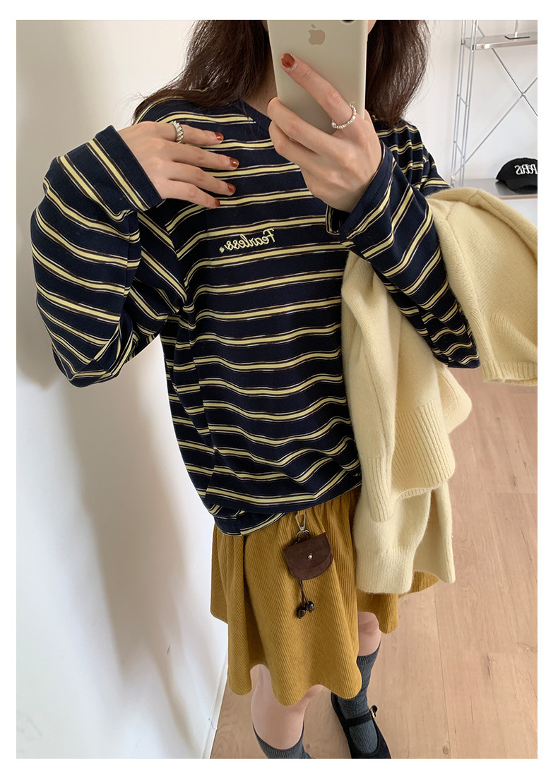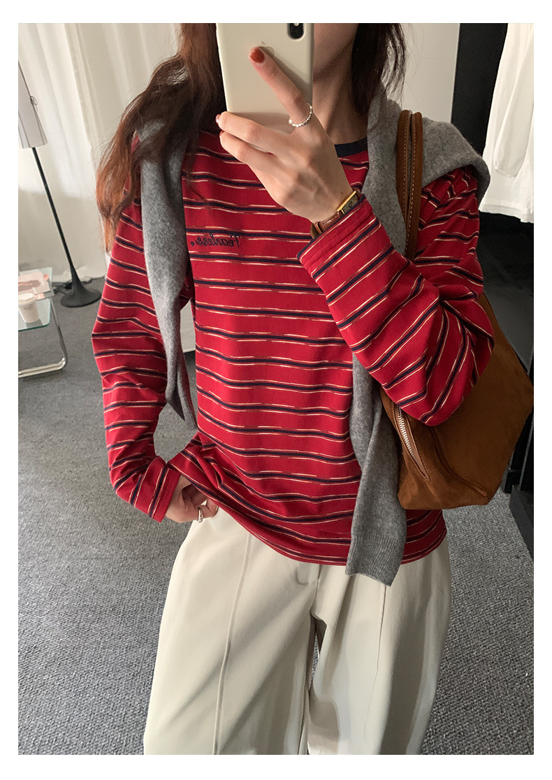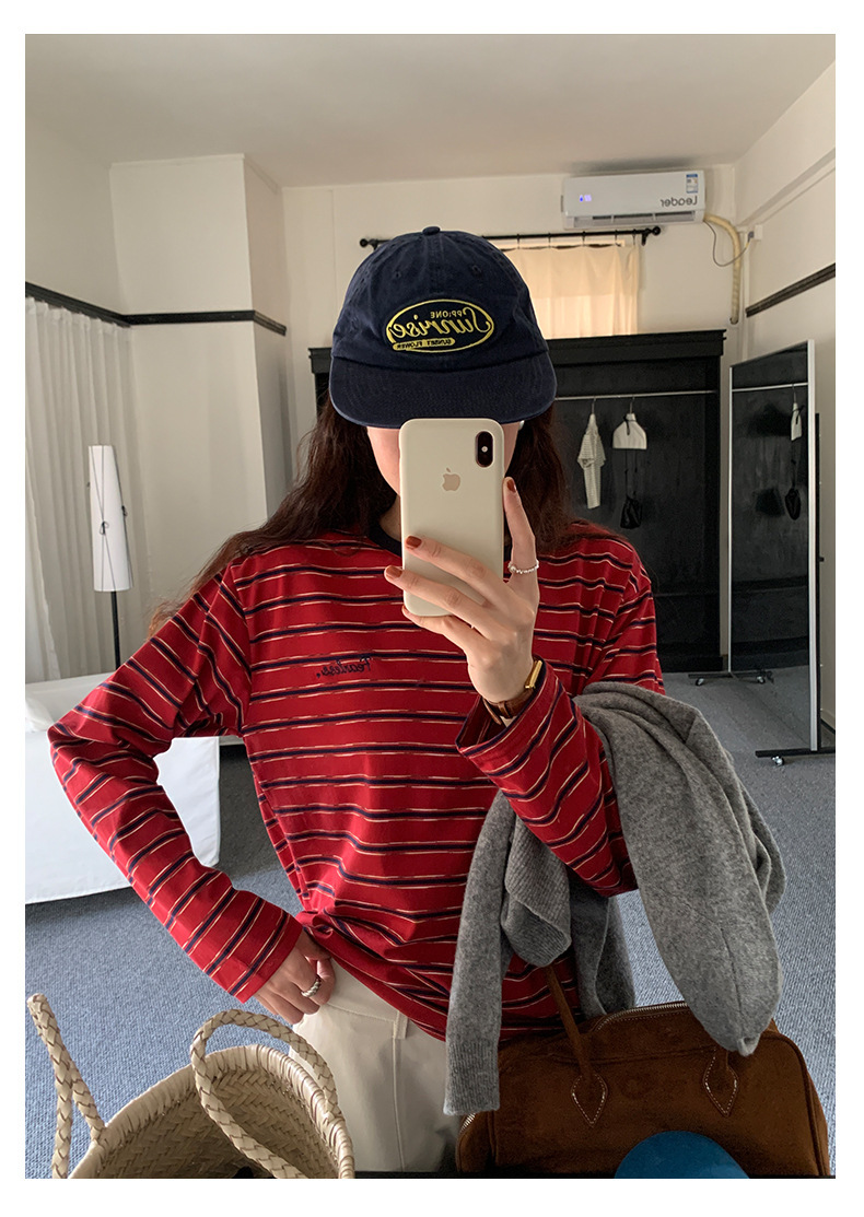 *o-ha-you*【FHZH1DC5041016】韓系字母刺繡條紋長袖T恤秋冬新款撞色圓領打底上衣-2色