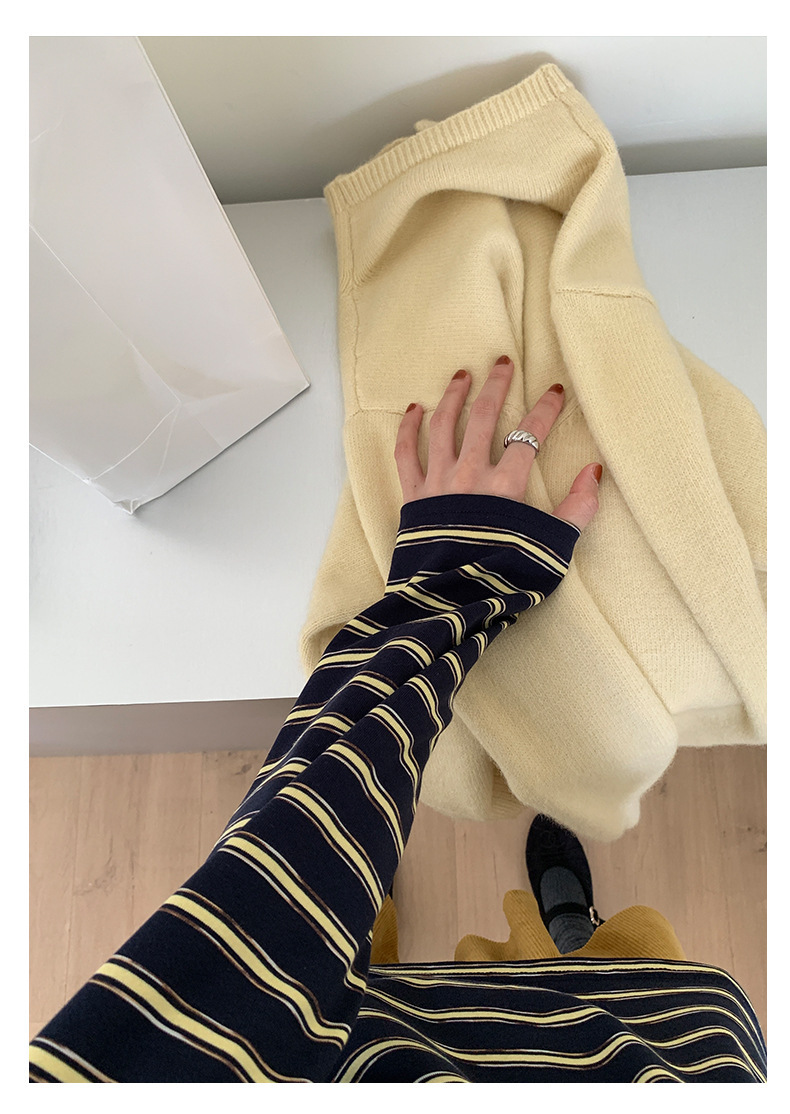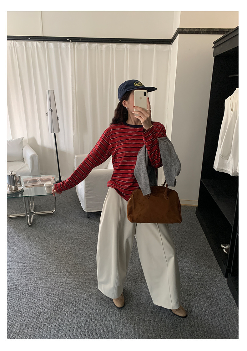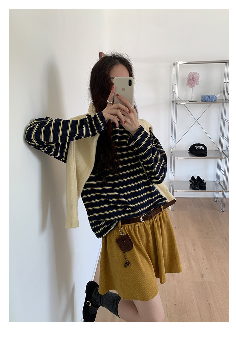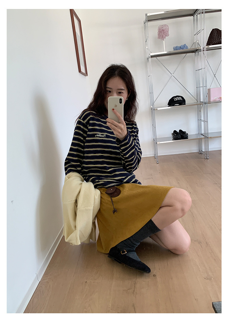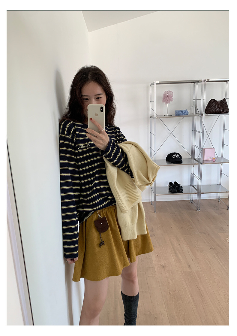 *o-ha-you*【FHZH1DC5041016】韓系字母刺繡條紋長袖T恤秋冬新款撞色圓領打底上衣-2色