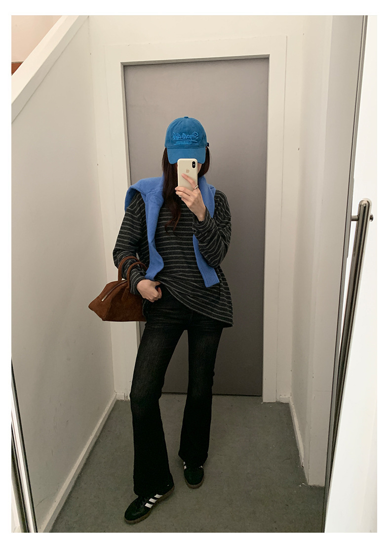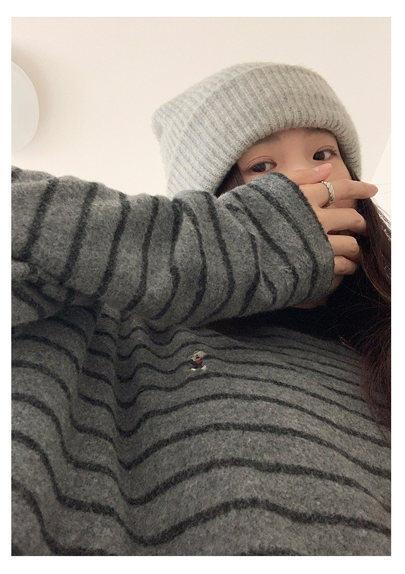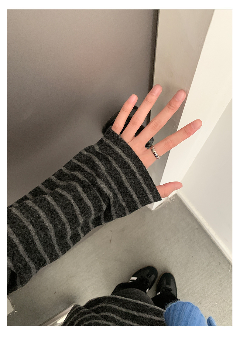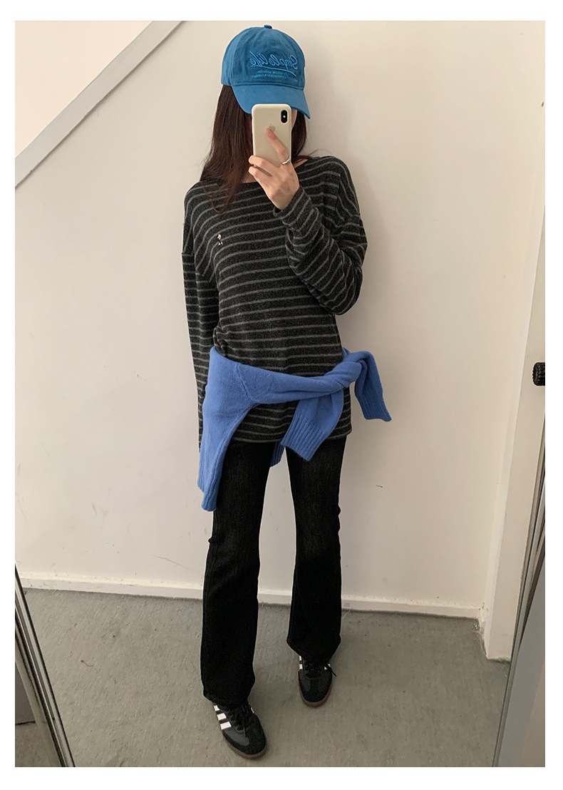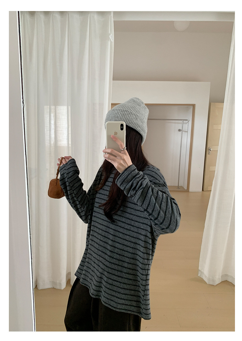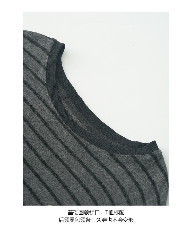 *o-ha-you*【FHZH1DC5041034】復古磨毛刺繡撞色條紋圓領T恤秋冬寬鬆休閒長袖上衣-2色