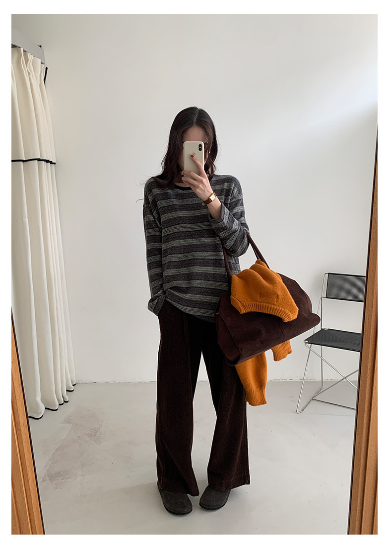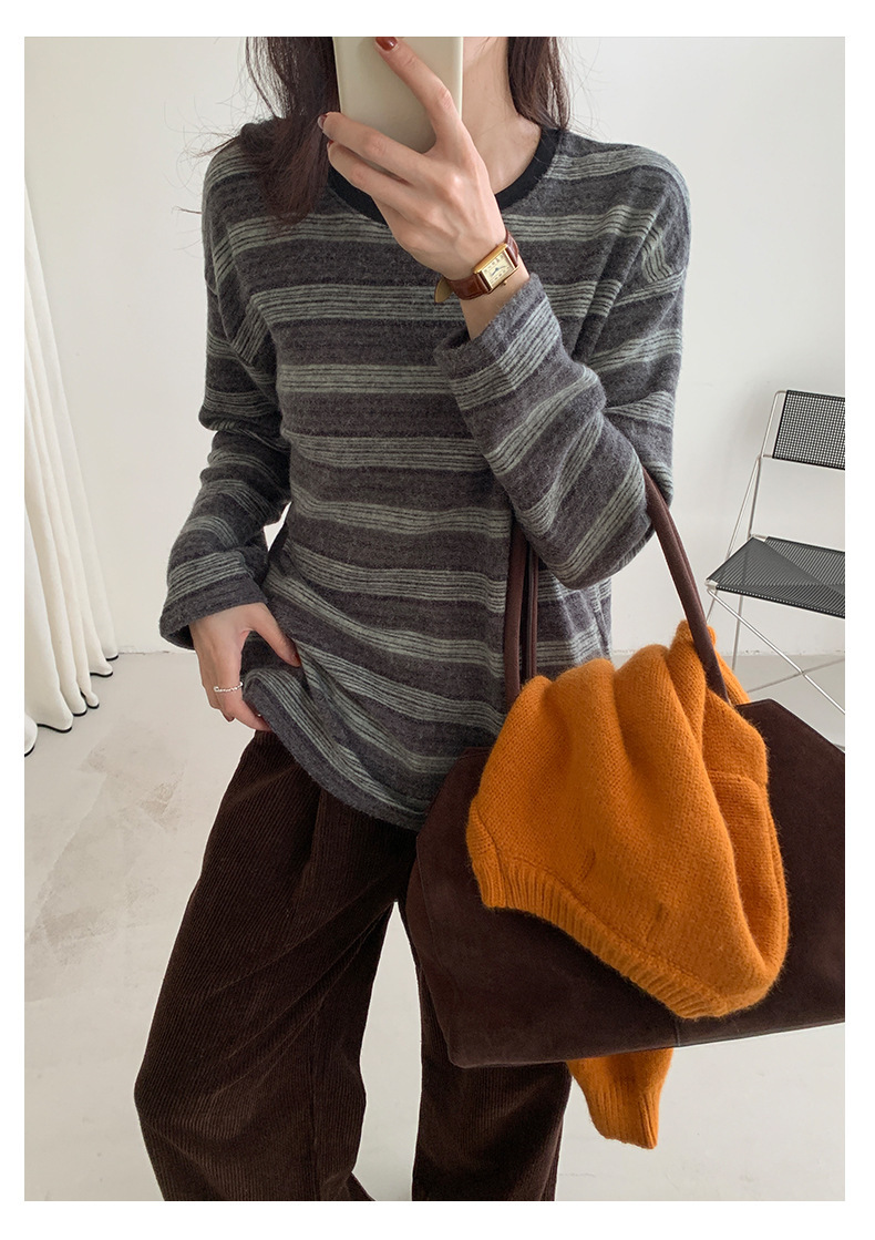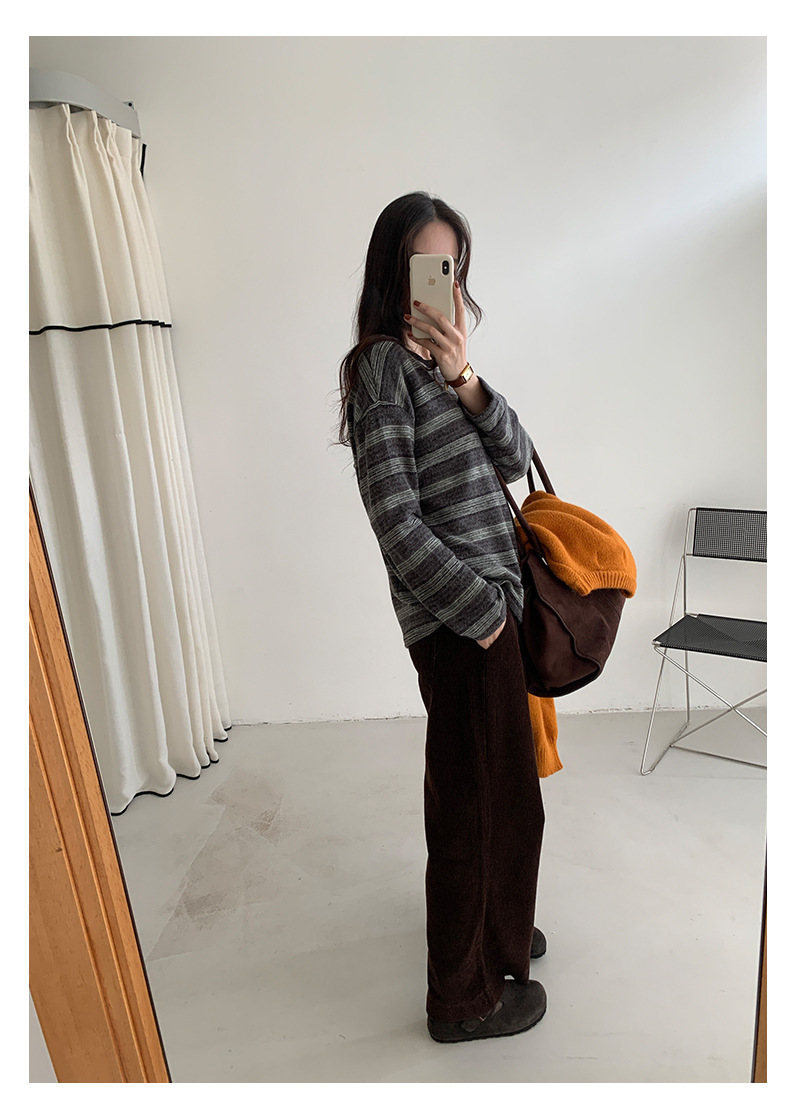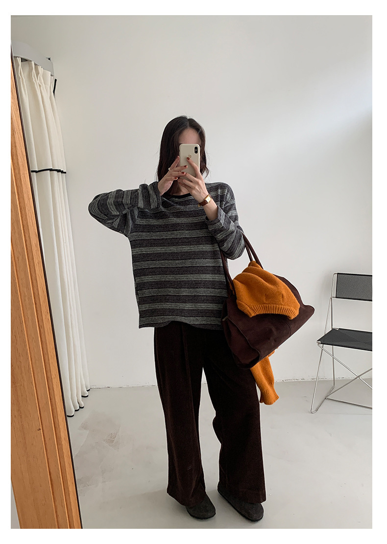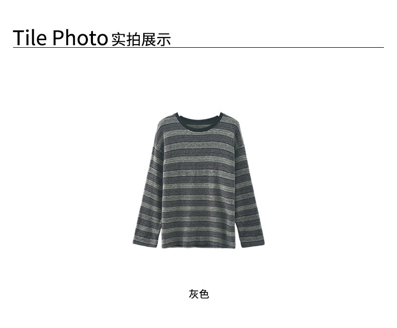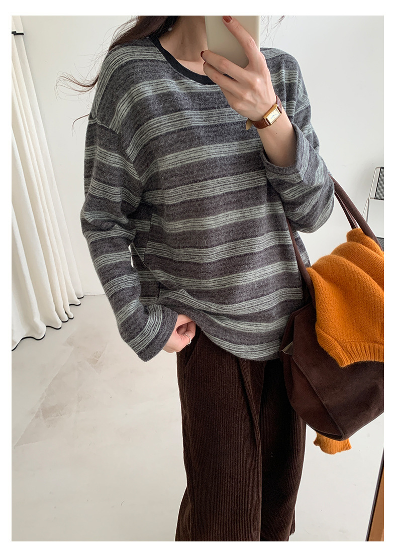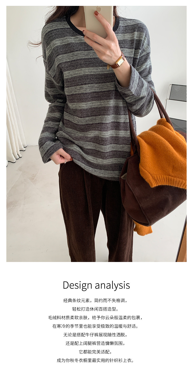 *o-ha-you*【FHZH1DC5041049】條紋毛絨料圓領套頭長袖T恤秋冬休閒百搭針織衫上衣