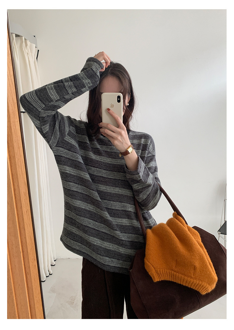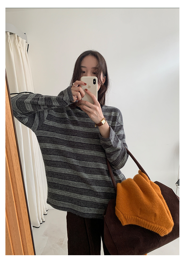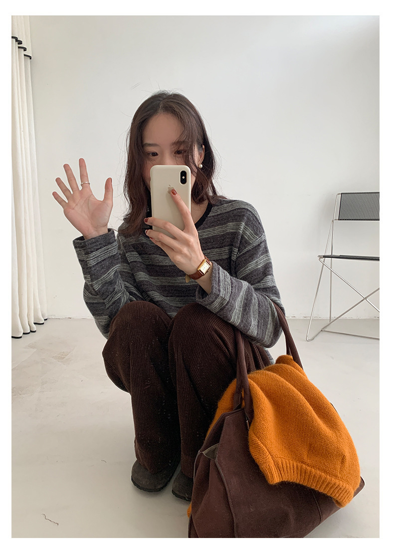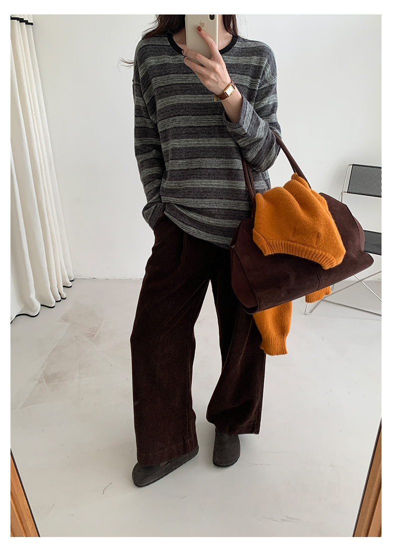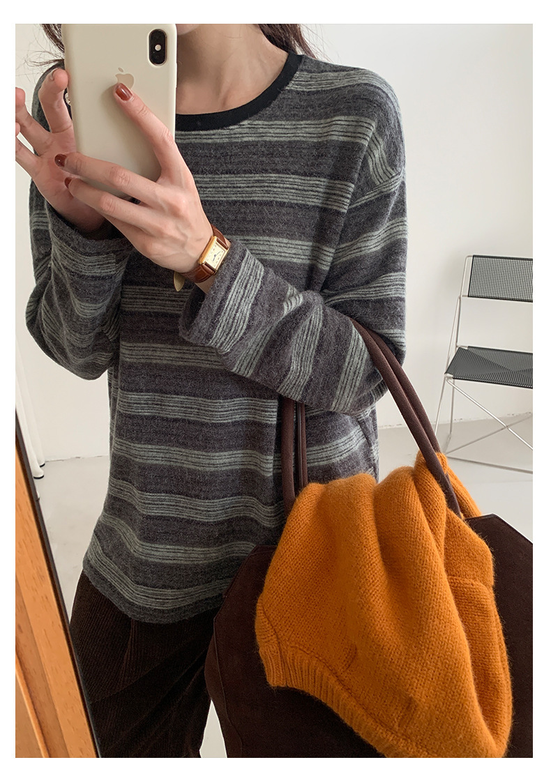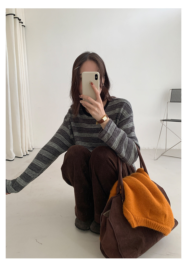 *o-ha-you*【FHZH1DC5041049】條紋毛絨料圓領套頭長袖T恤秋冬休閒百搭針織衫上衣
