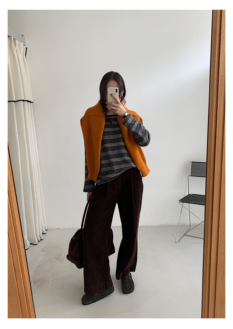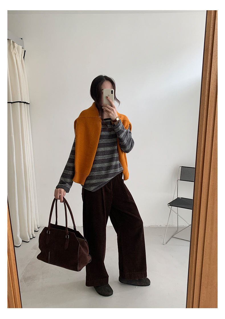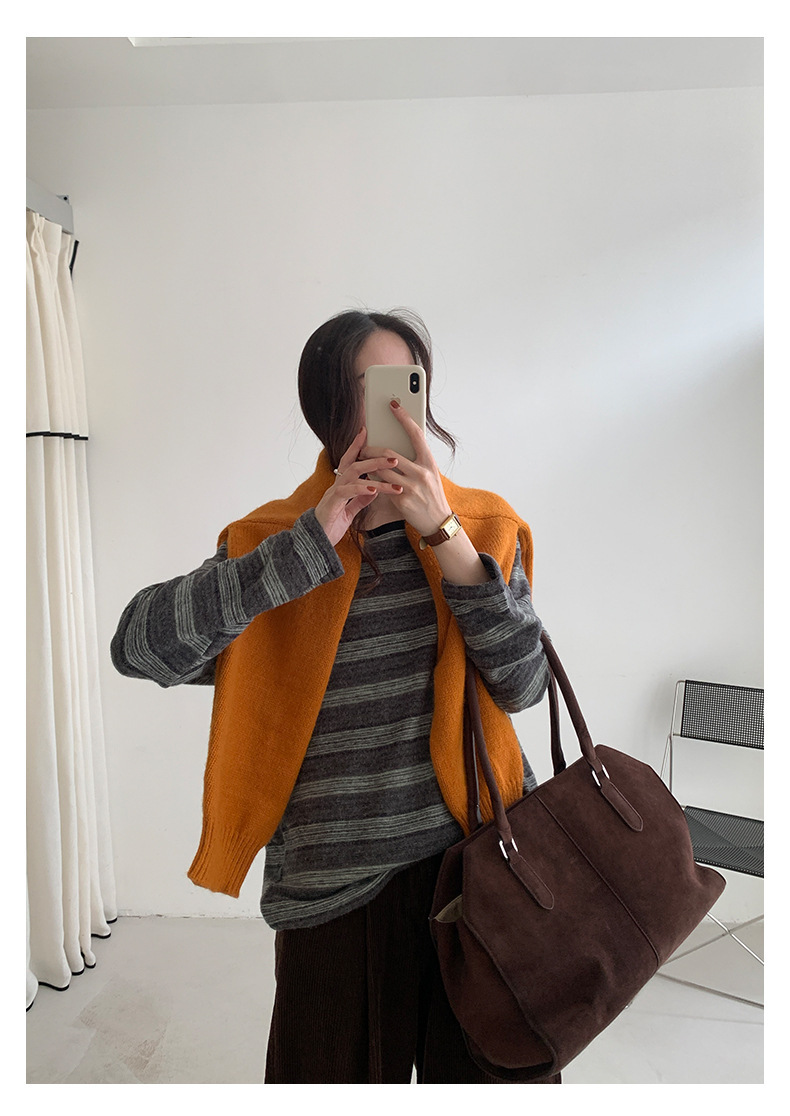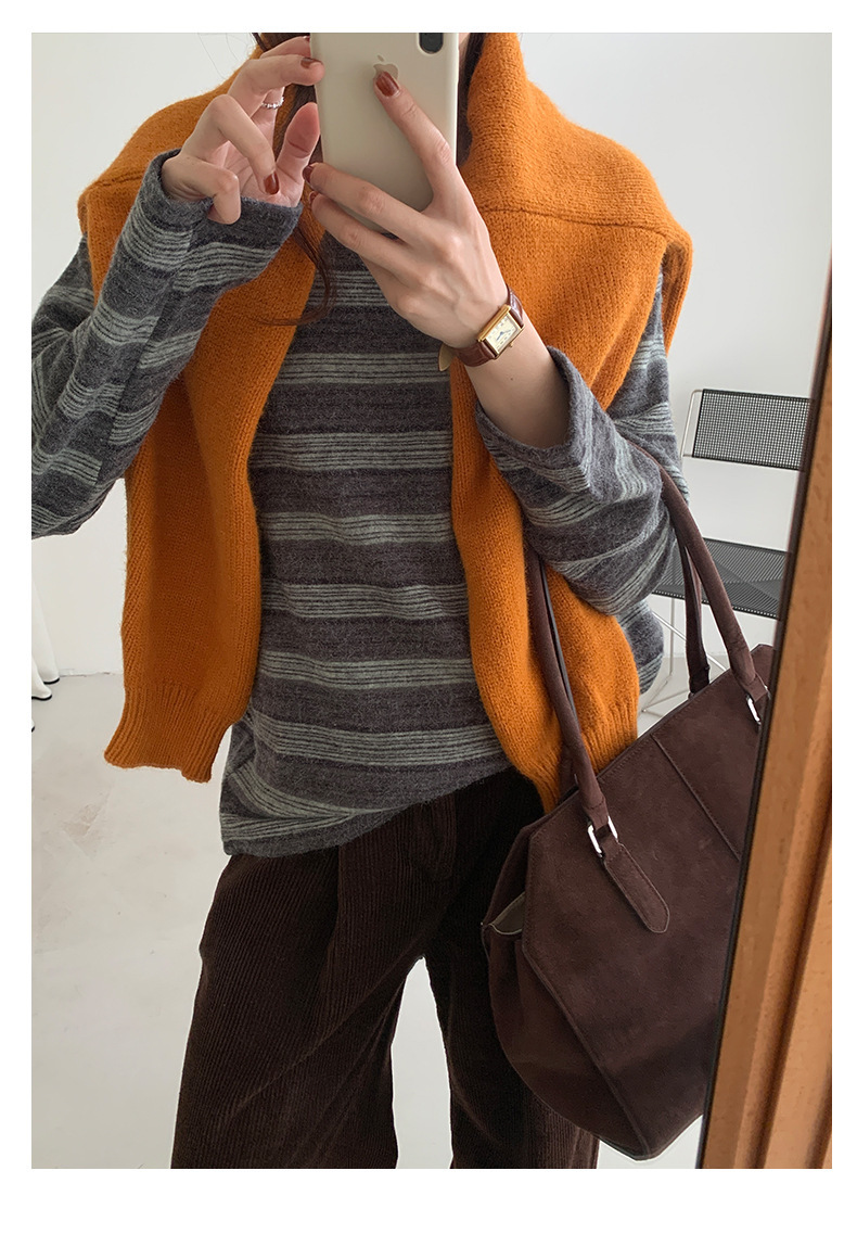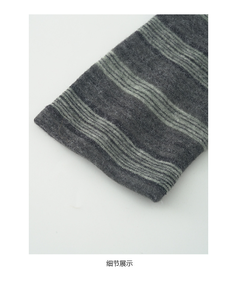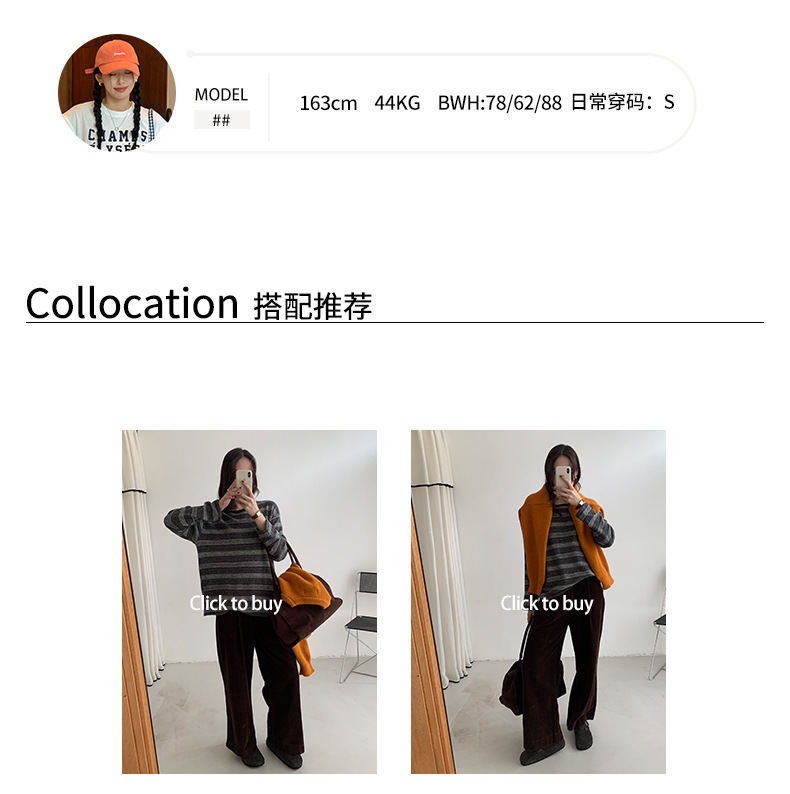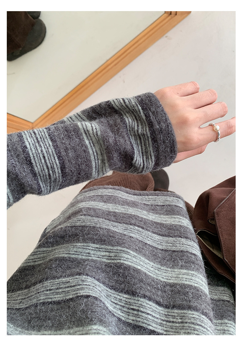 *o-ha-you*【FHZH1DC5041049】條紋毛絨料圓領套頭長袖T恤秋冬休閒百搭針織衫上衣