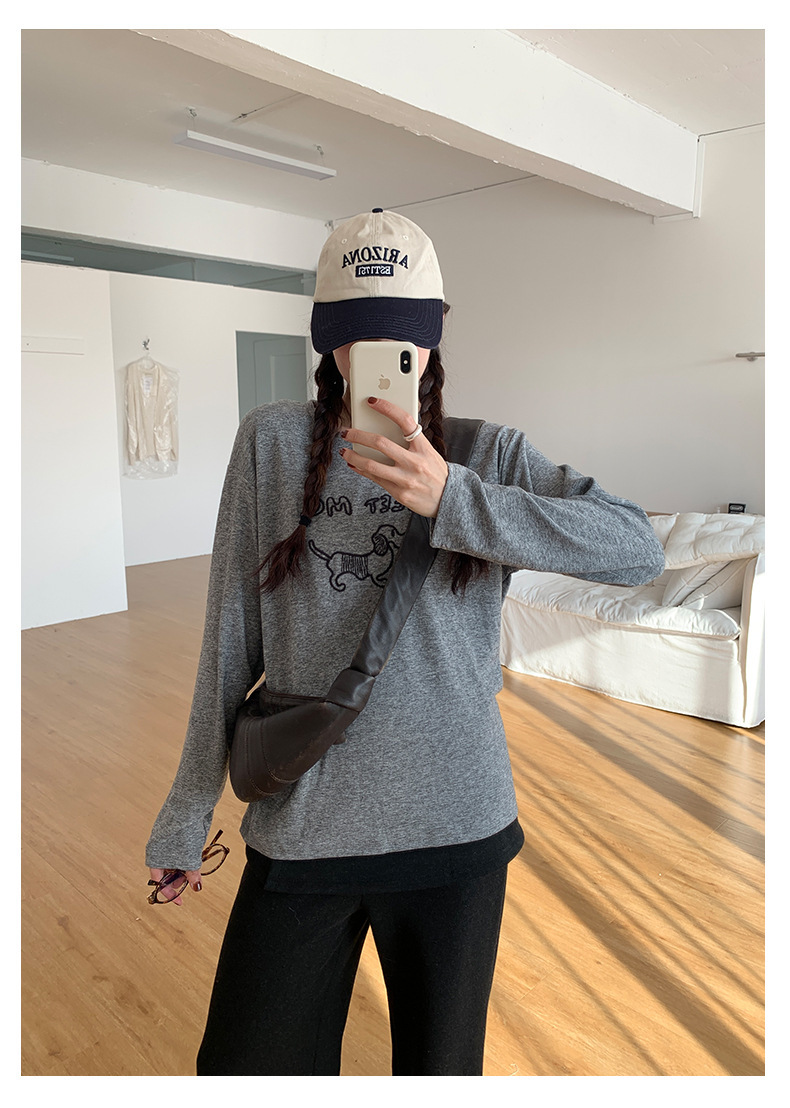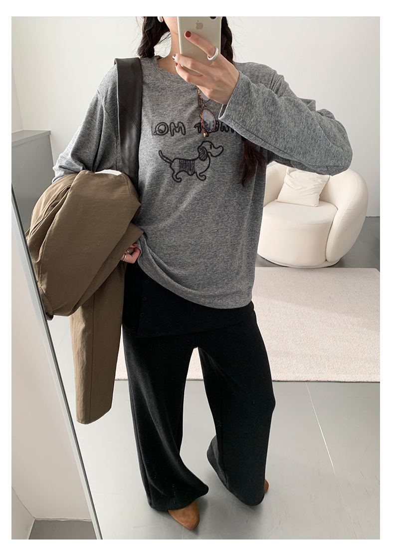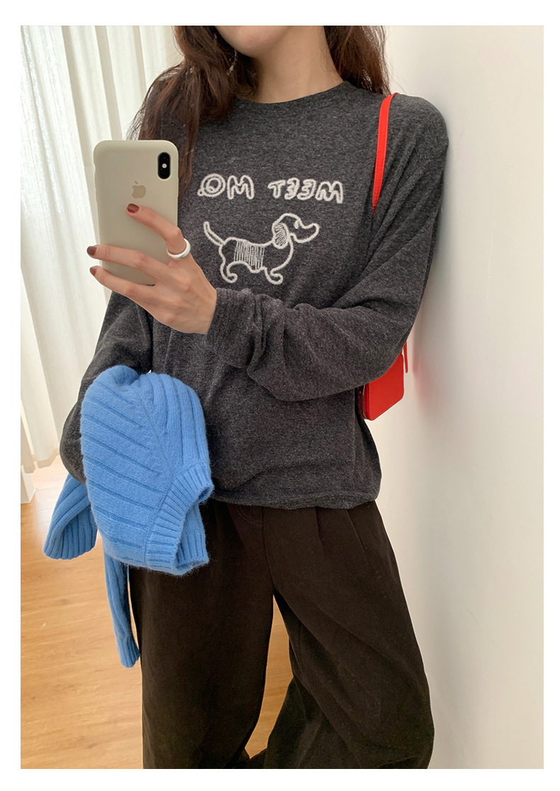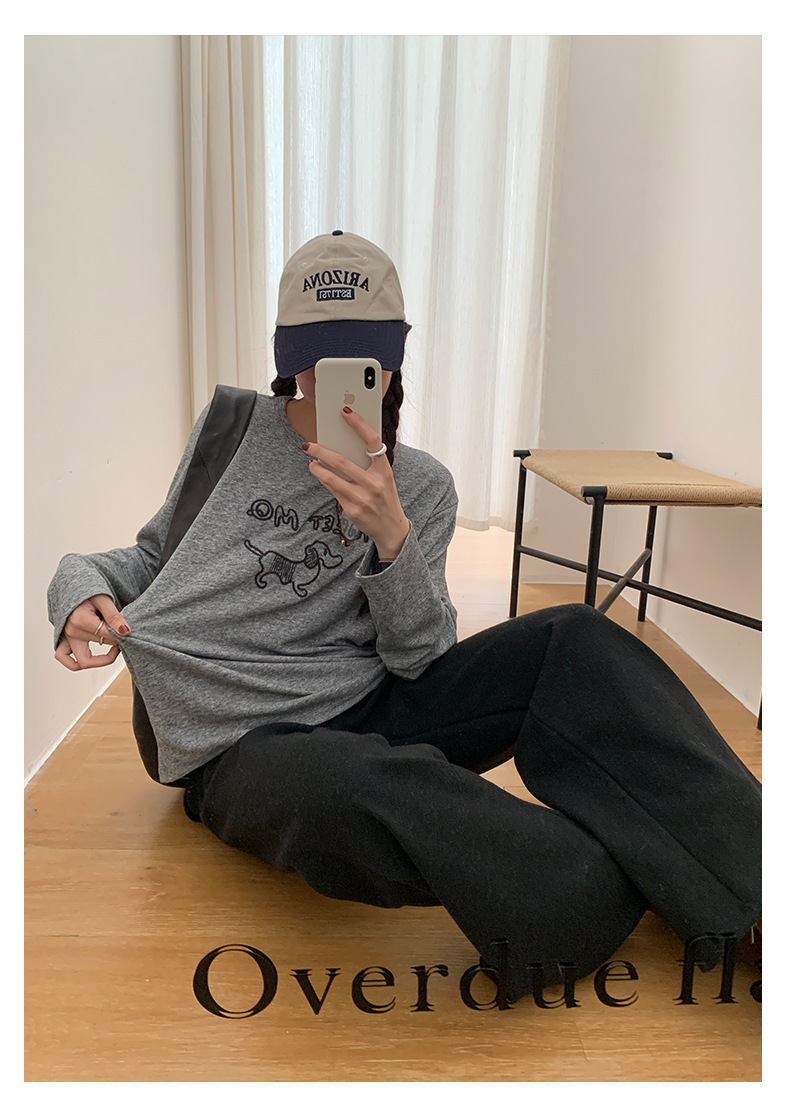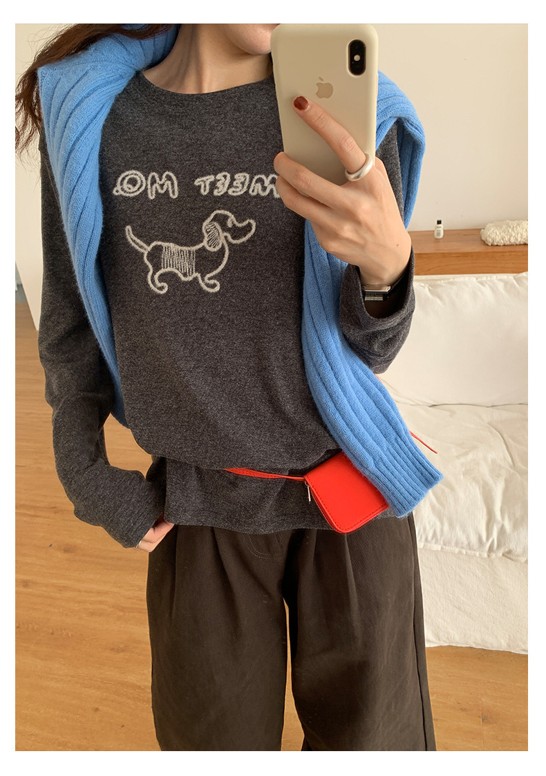 *o-ha-you*【FHZH1DC5041081】可愛小狗刺繡加厚磨毛長袖T恤女秋冬寬鬆套頭內搭上衣-2色