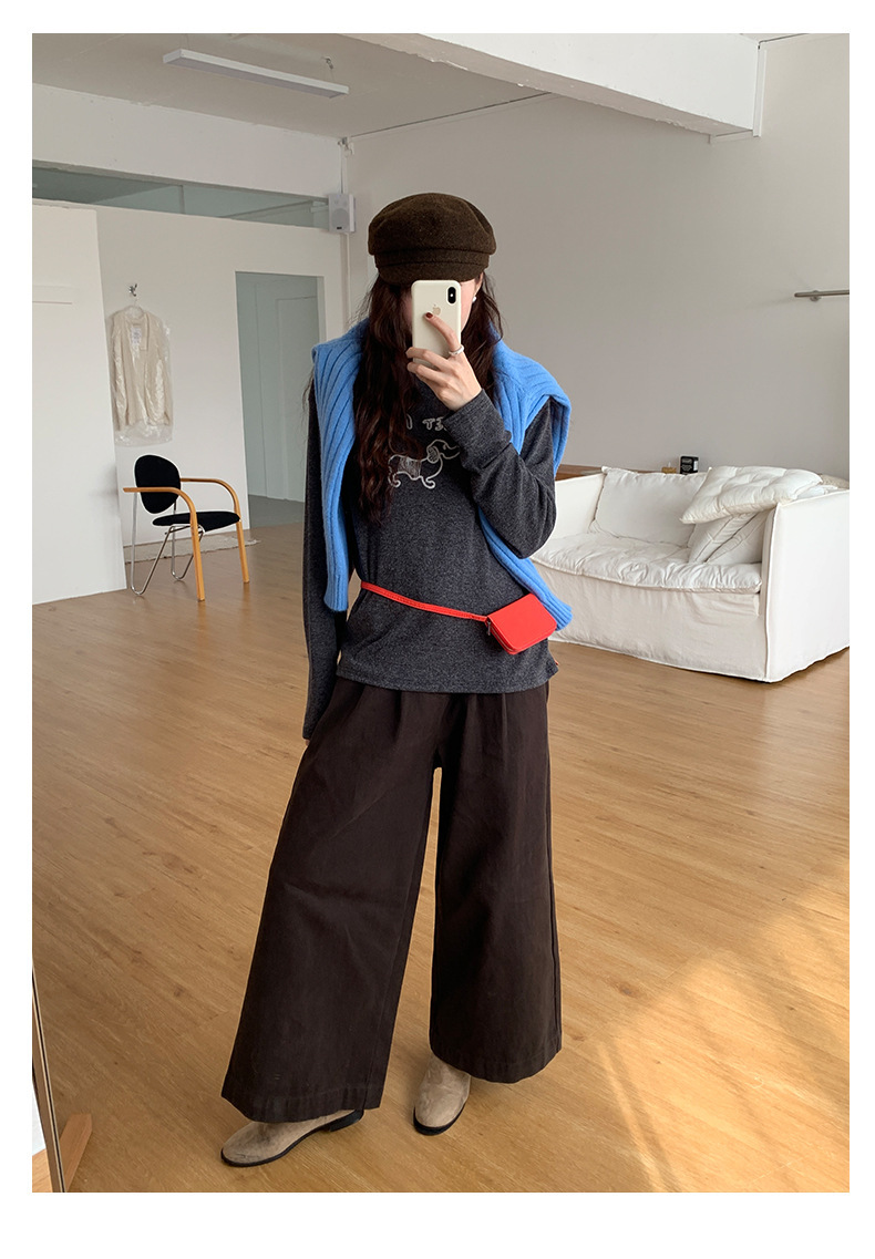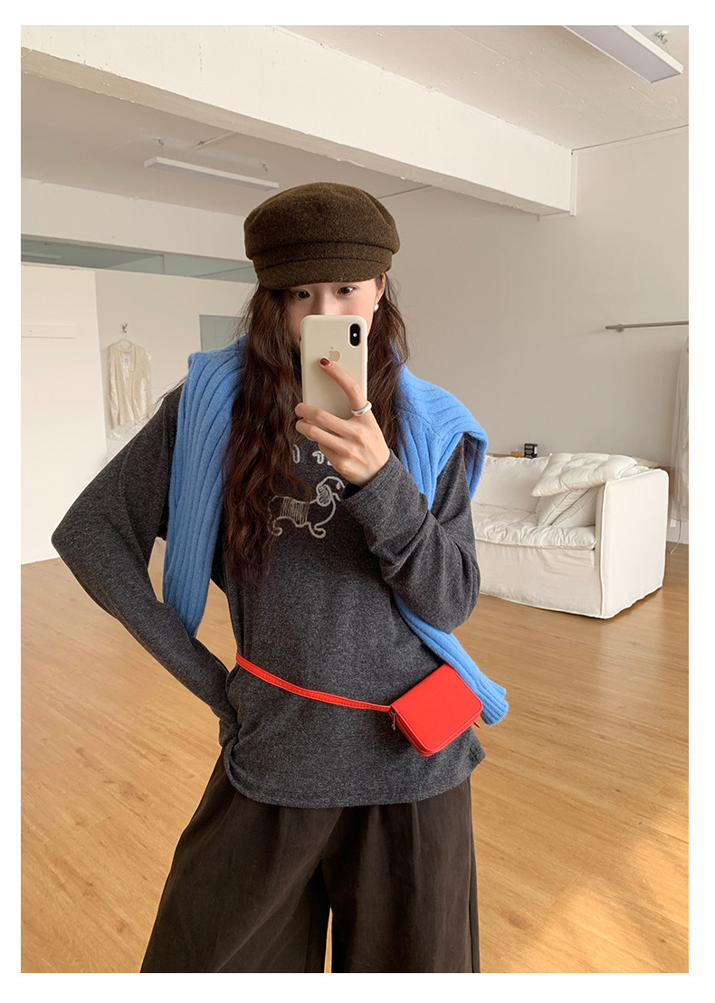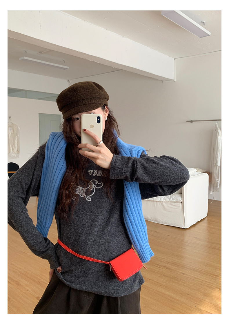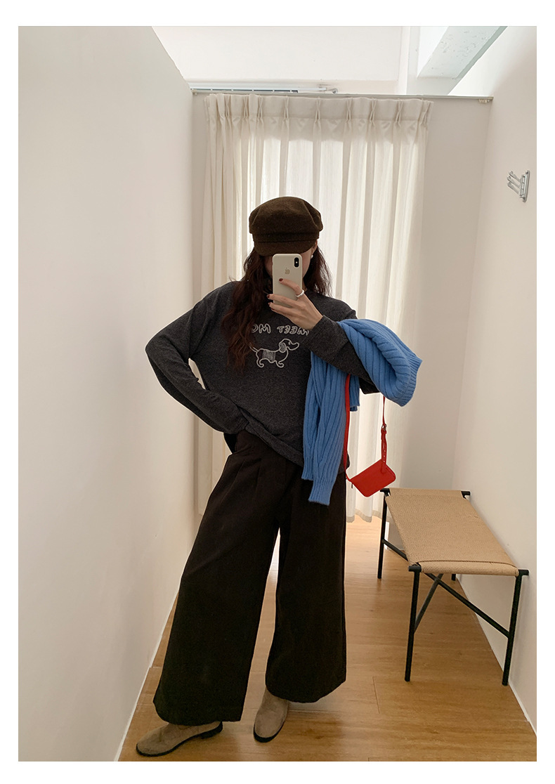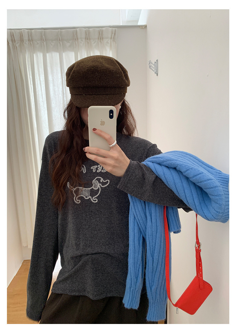 *o-ha-you*【FHZH1DC5041081】可愛小狗刺繡加厚磨毛長袖T恤女秋冬寬鬆套頭內搭上衣-2色