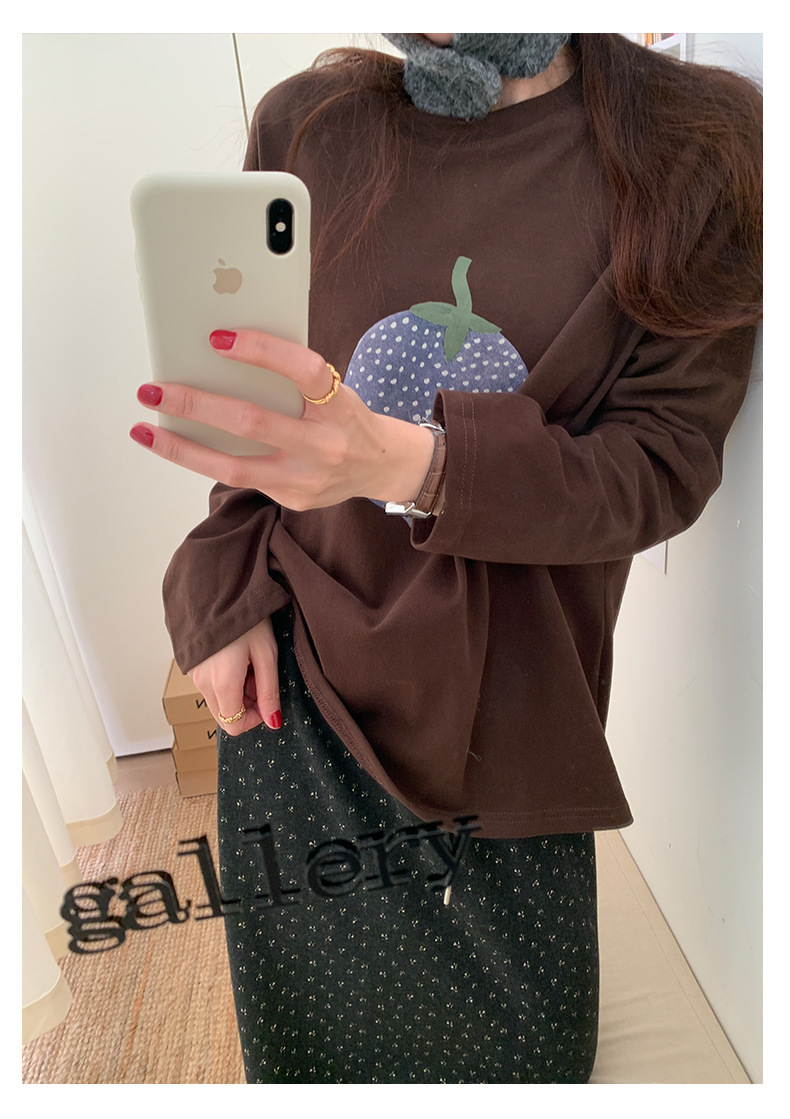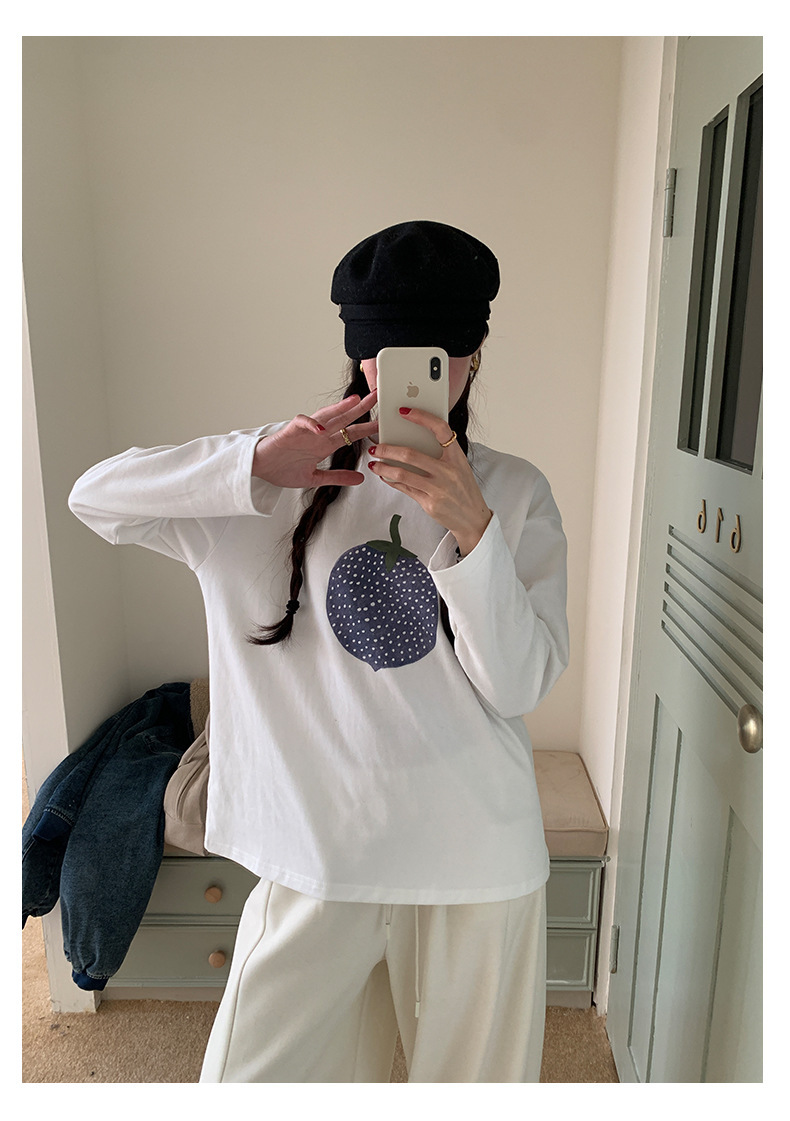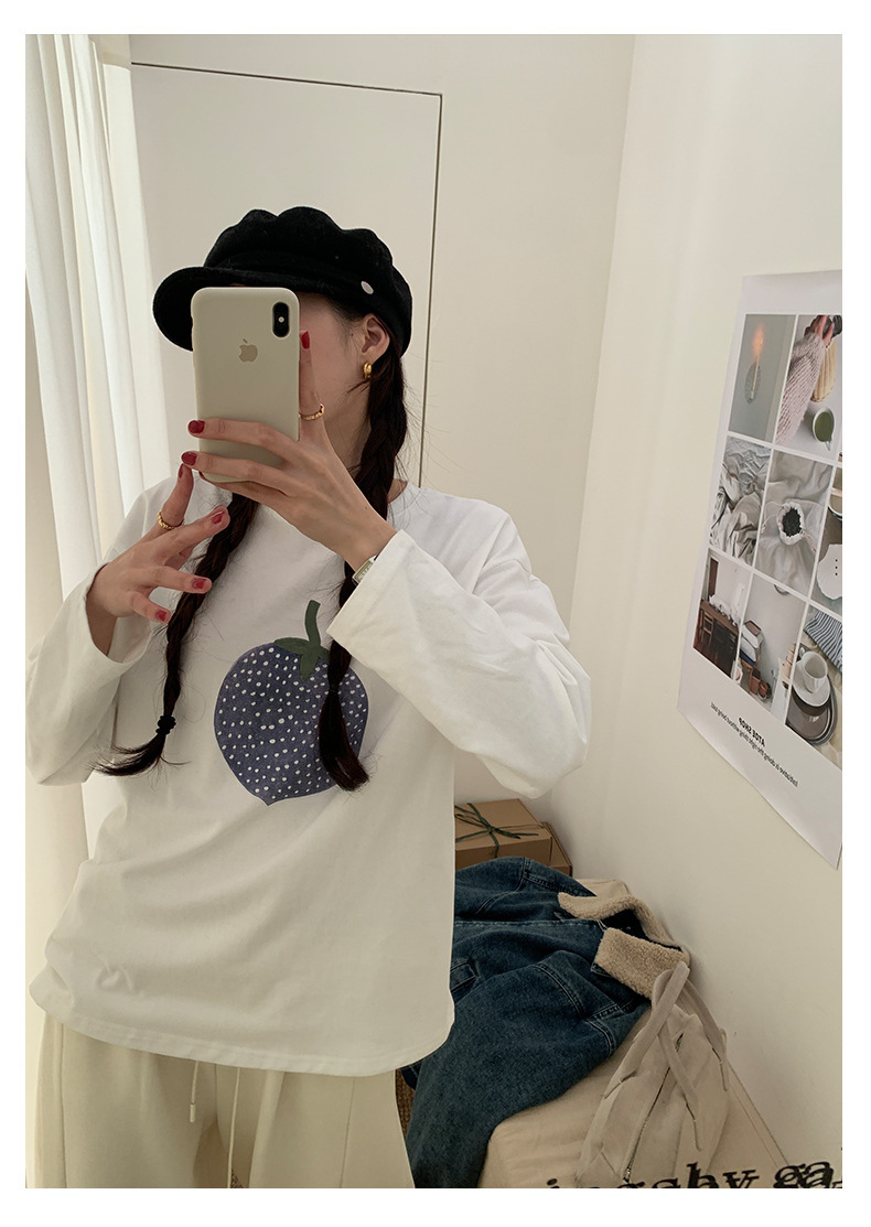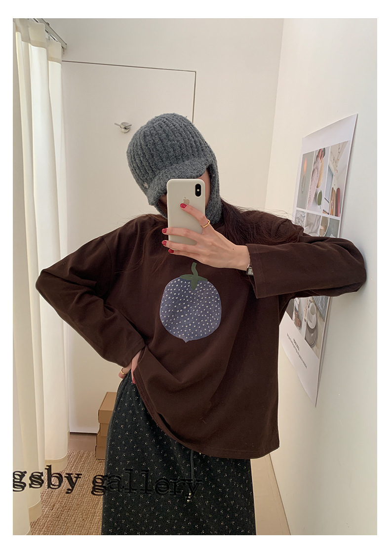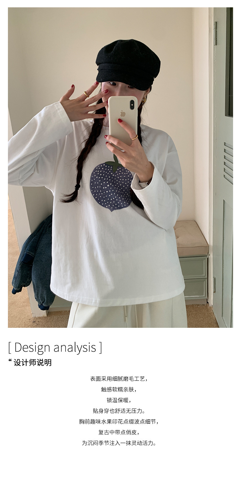 *o-ha-you*【FHZH1DC5041140】韓系磨毛印花長袖T恤冬季圓領寬鬆百搭內搭打底上衣-2色