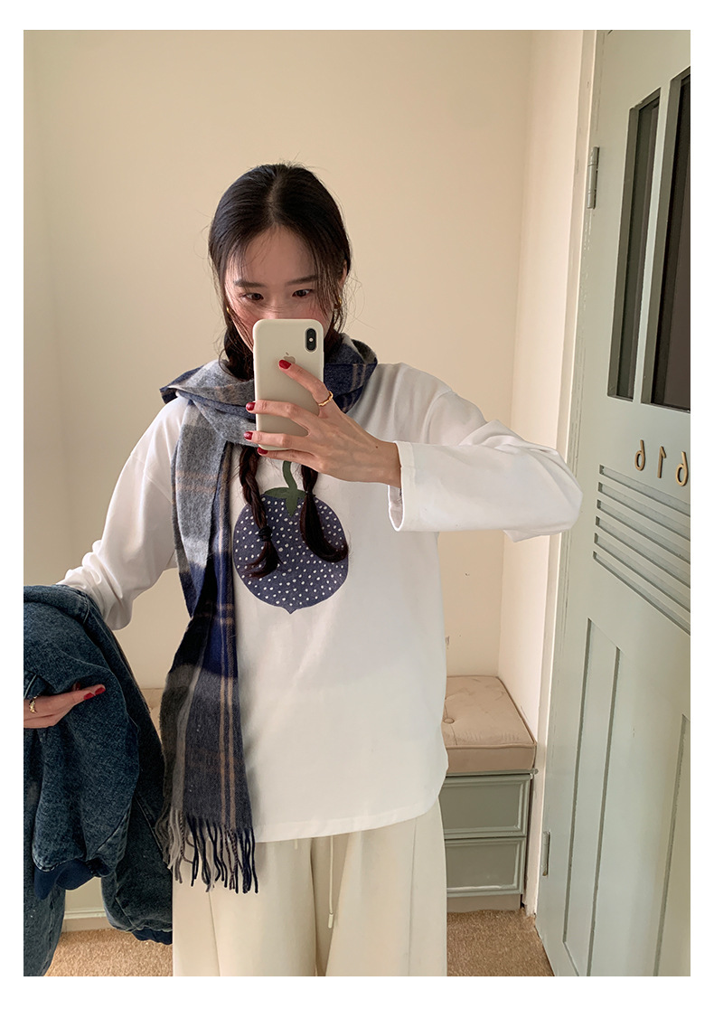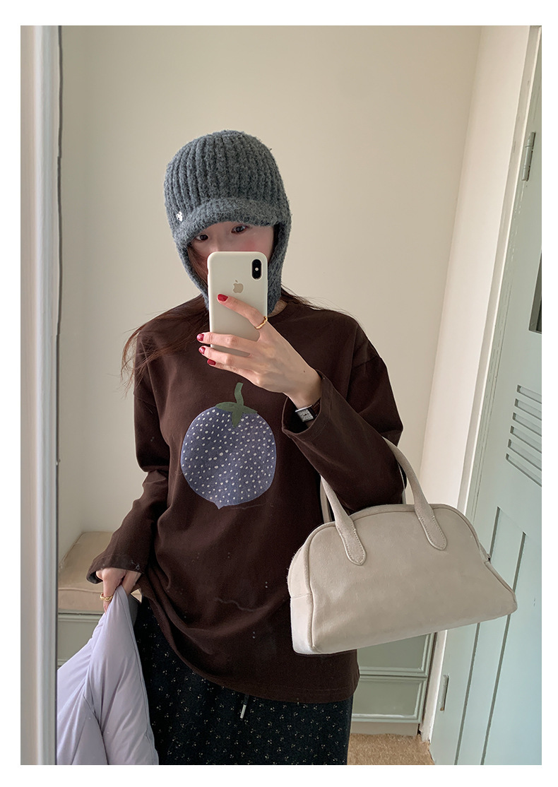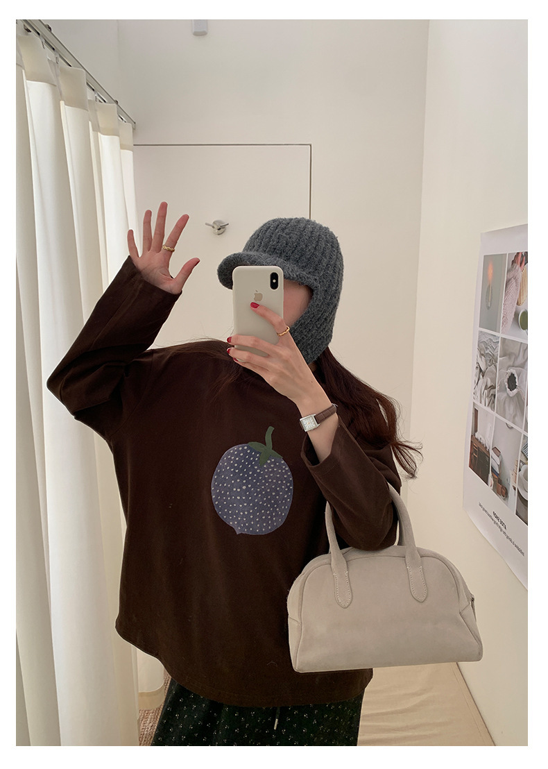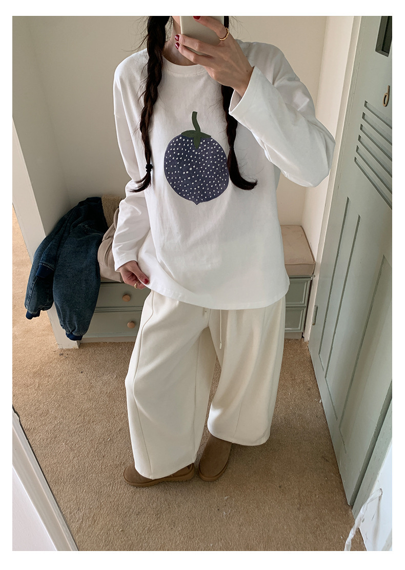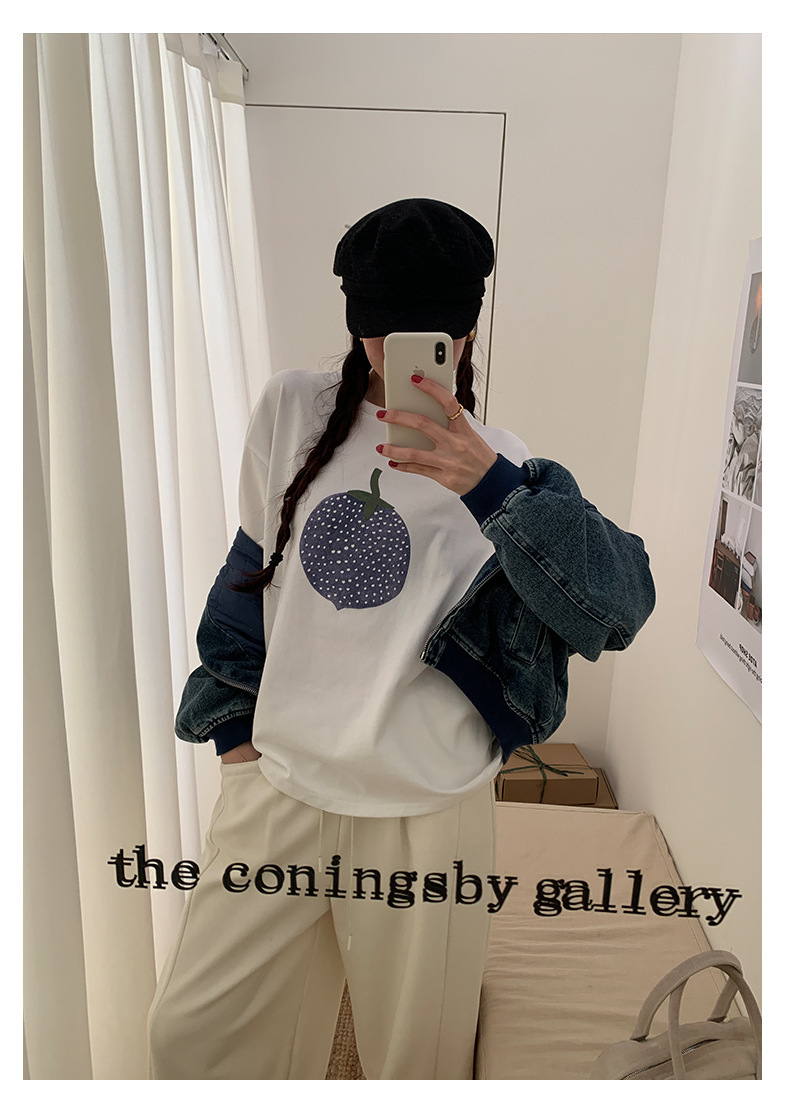 *o-ha-you*【FHZH1DC5041140】韓系磨毛印花長袖T恤冬季圓領寬鬆百搭內搭打底上衣-2色